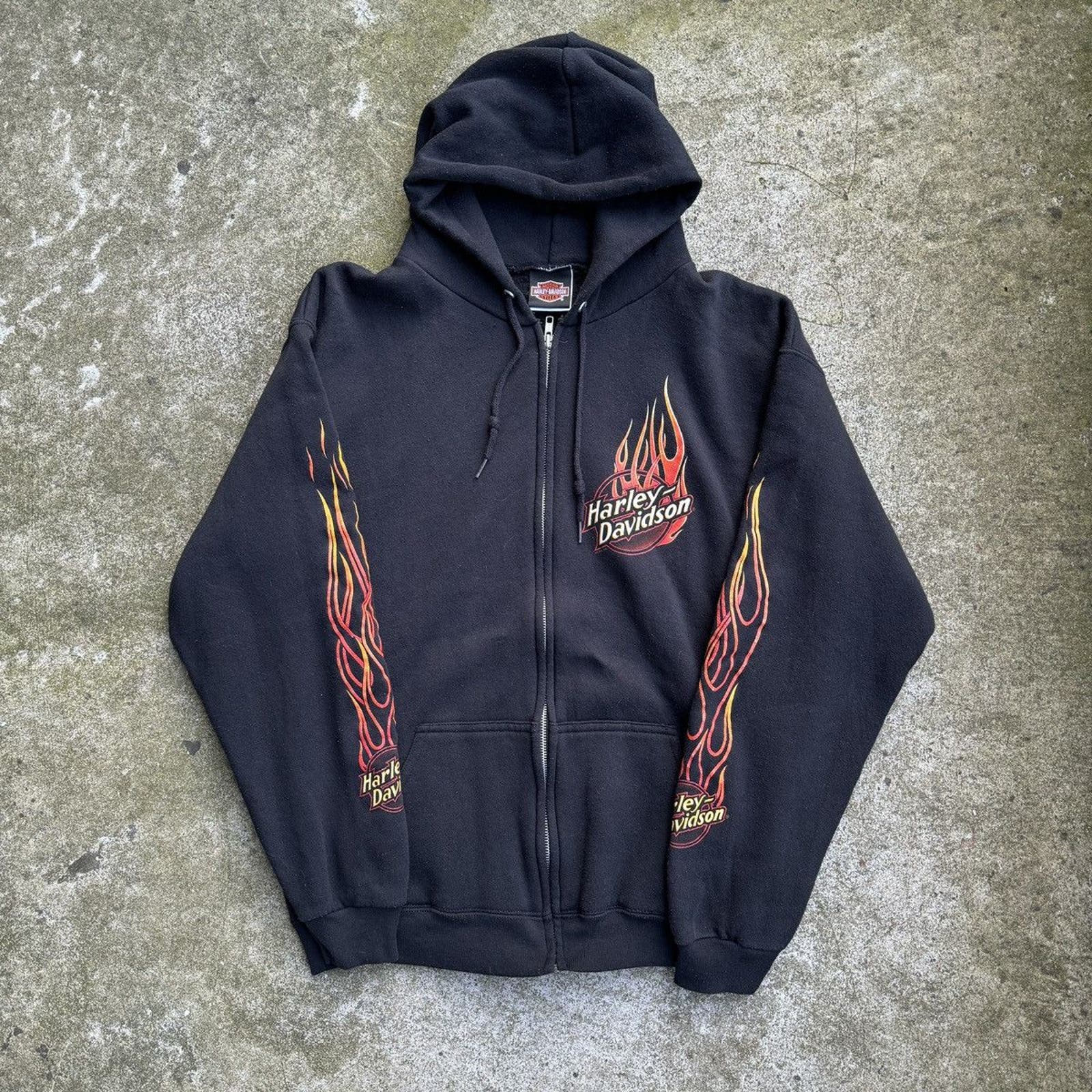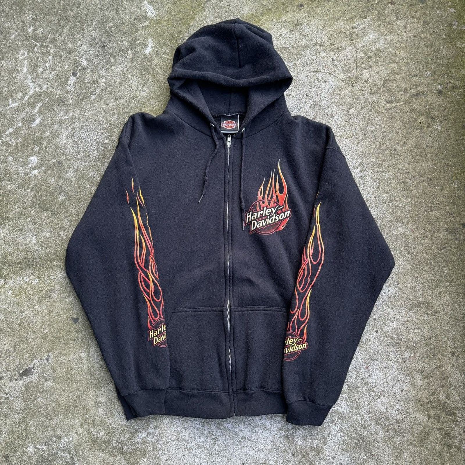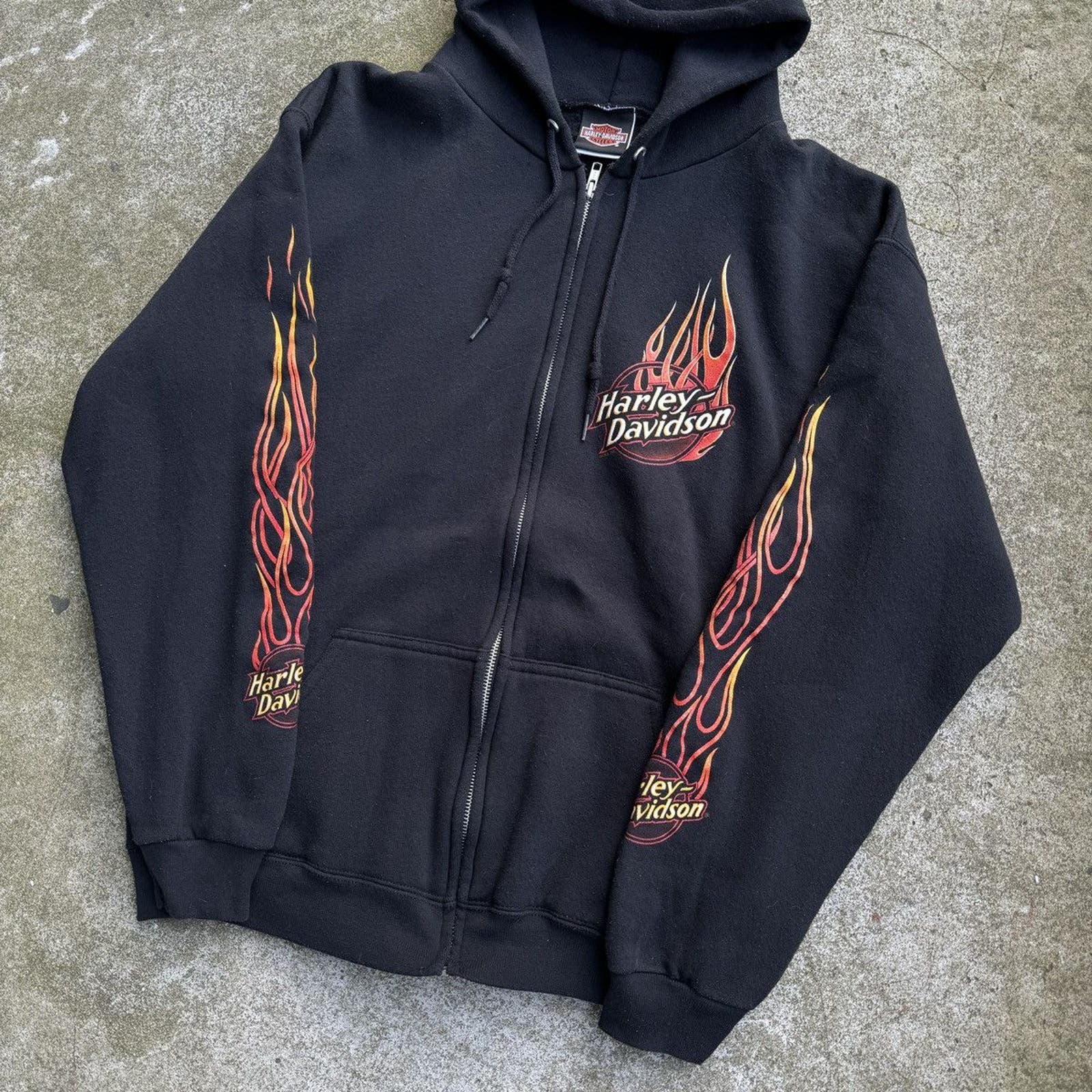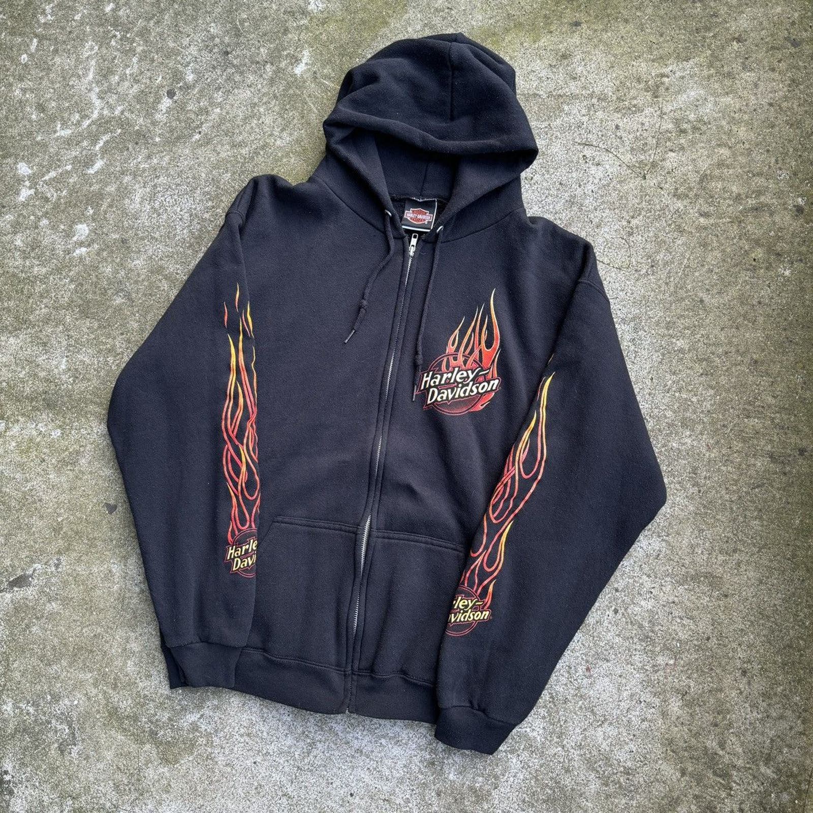 1990s HARLEY DAVIDSON MOTOR CITY FLAME ZIP UP HOODIE