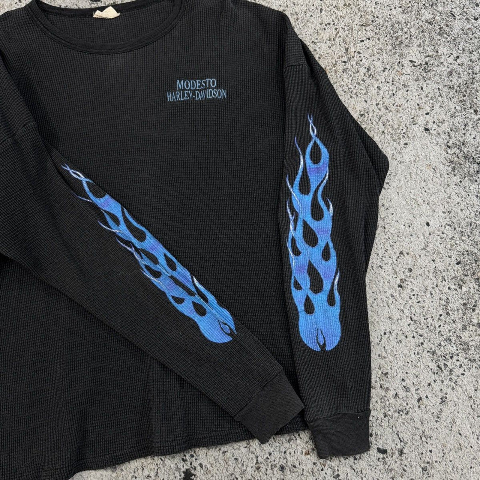 1990s Harley Davidson Thermal Blue Flame Longsleeve