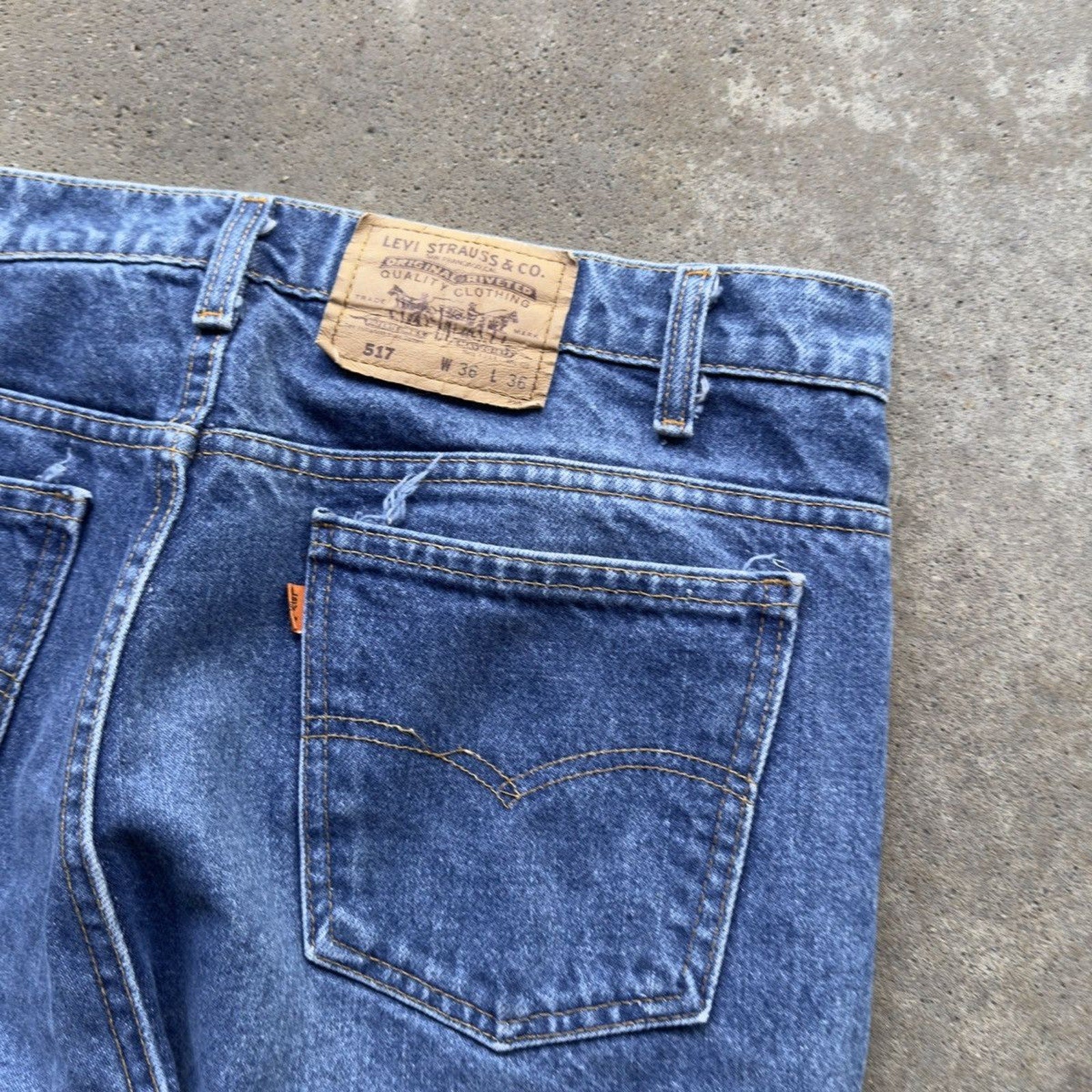 1990s Levi's 517 Orange Tab Faded Bootcut Flare Jeans - Made in USA