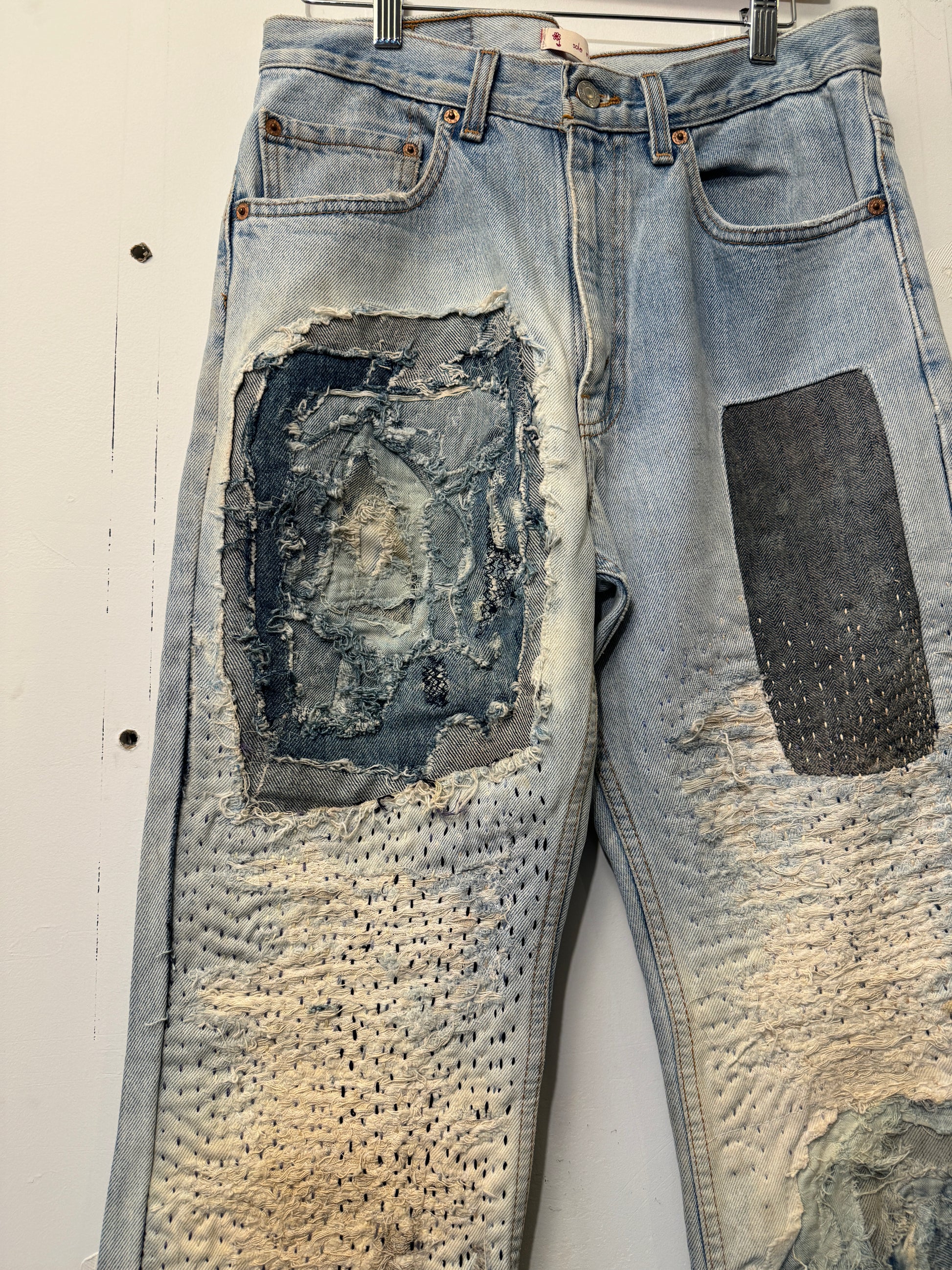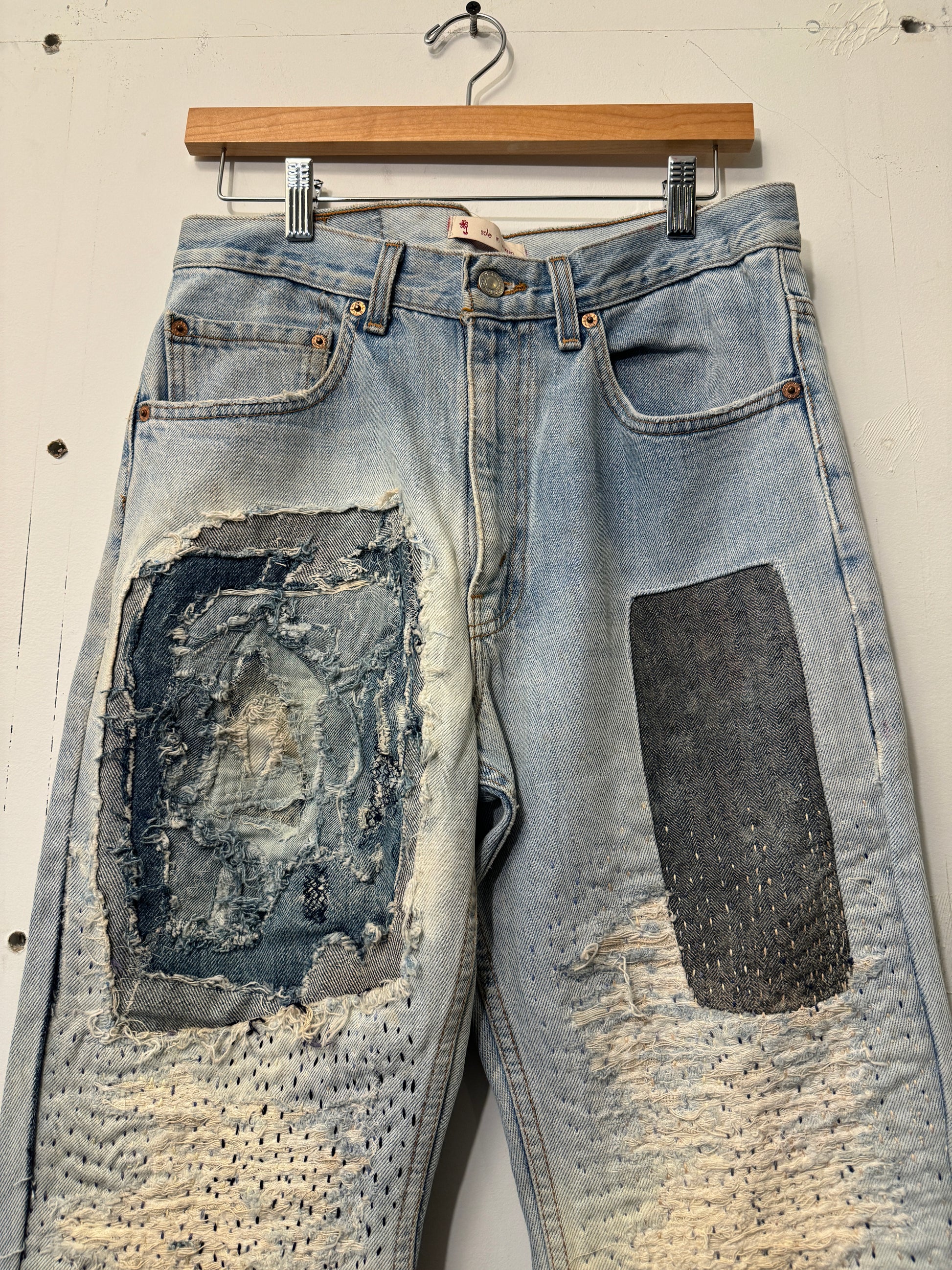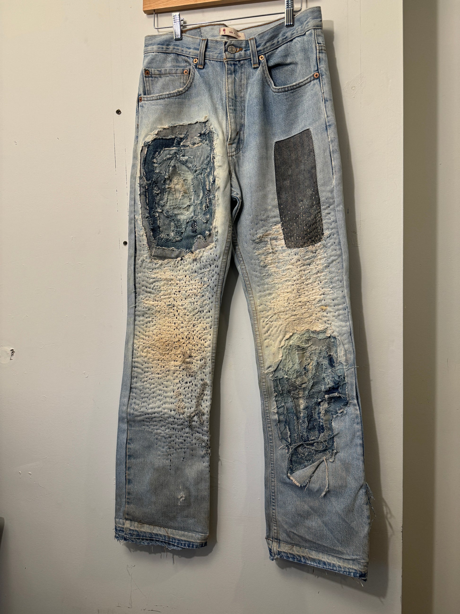 1990s LEVI'S 517 MADE IN USA REPAIRED BOOT CUT DENIM JEANS