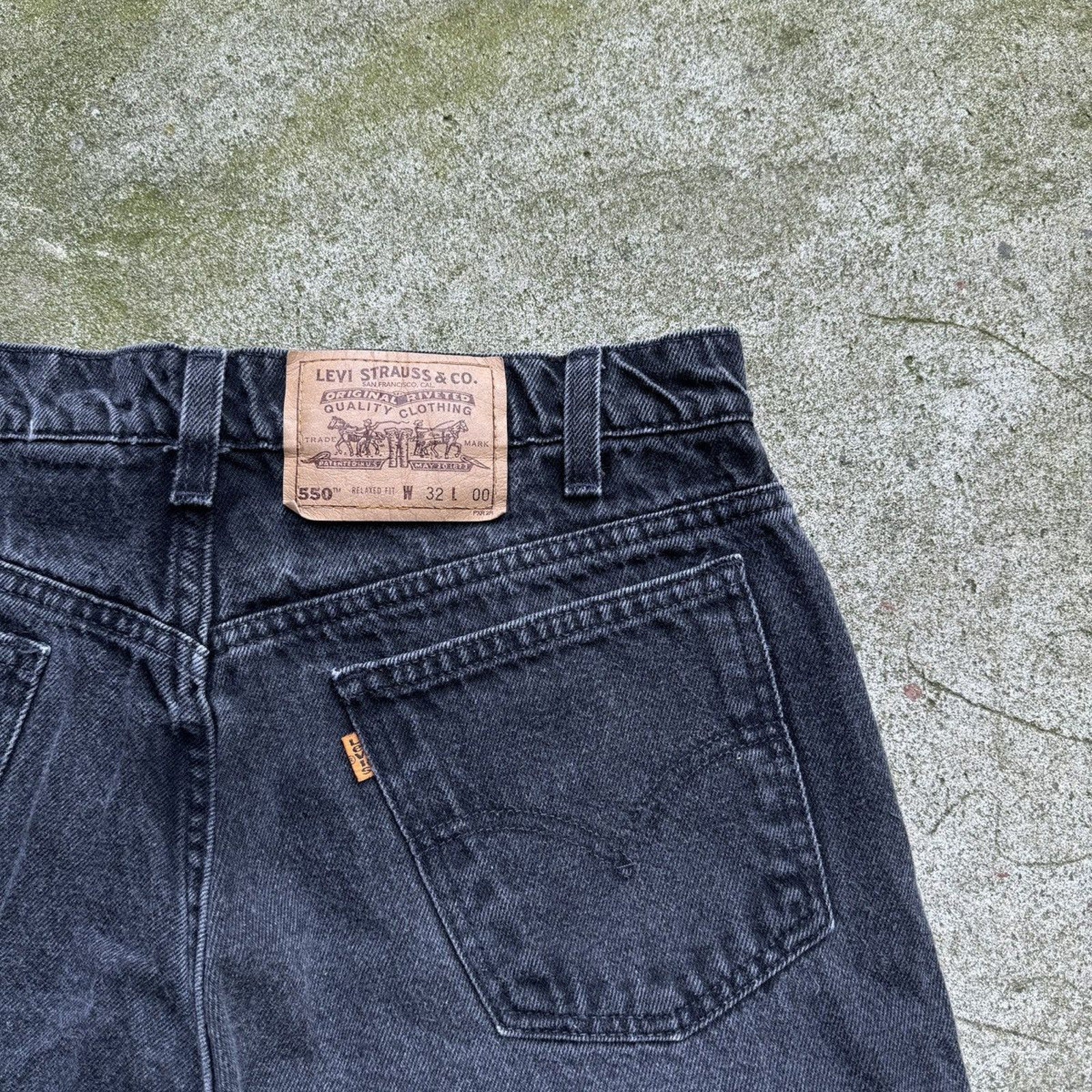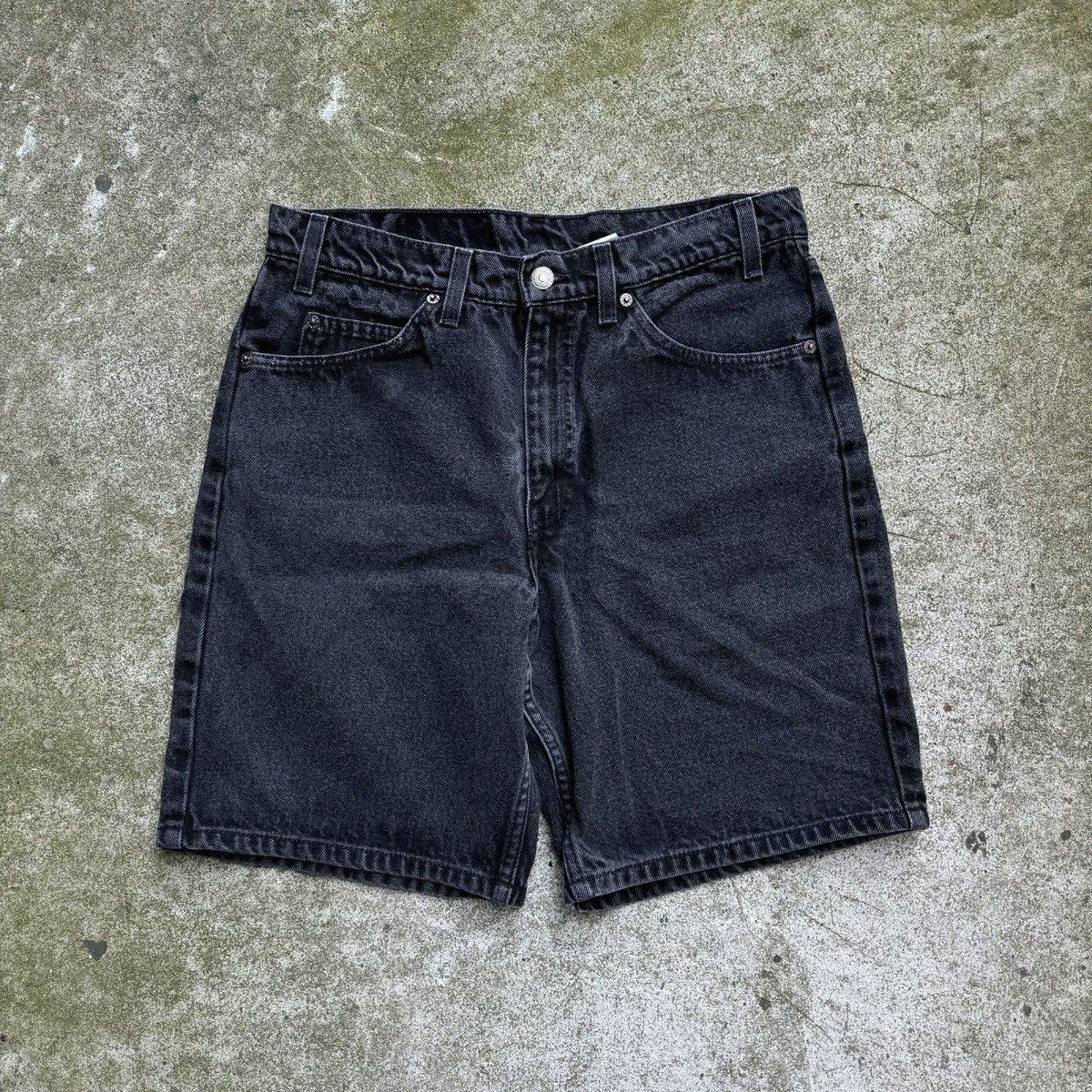 1990s LEVI'S 550 ORANGE TAB BLACK DENIM JEAN SHORTS