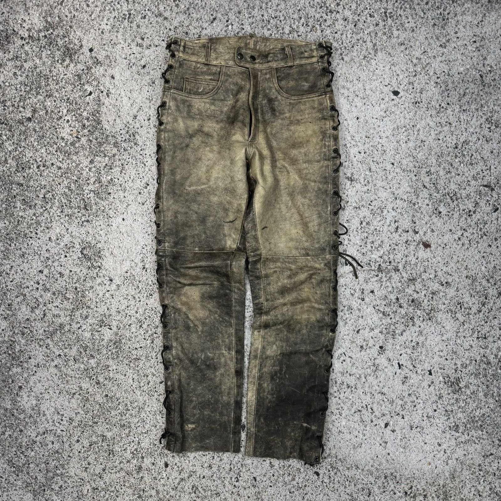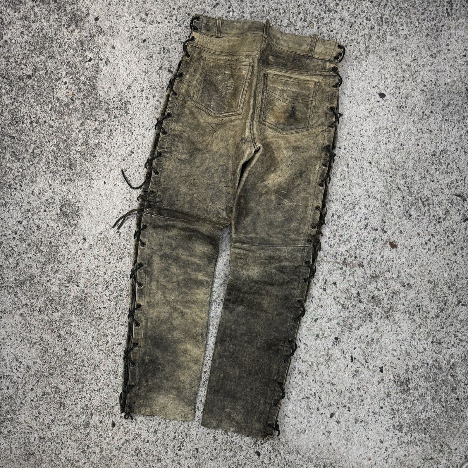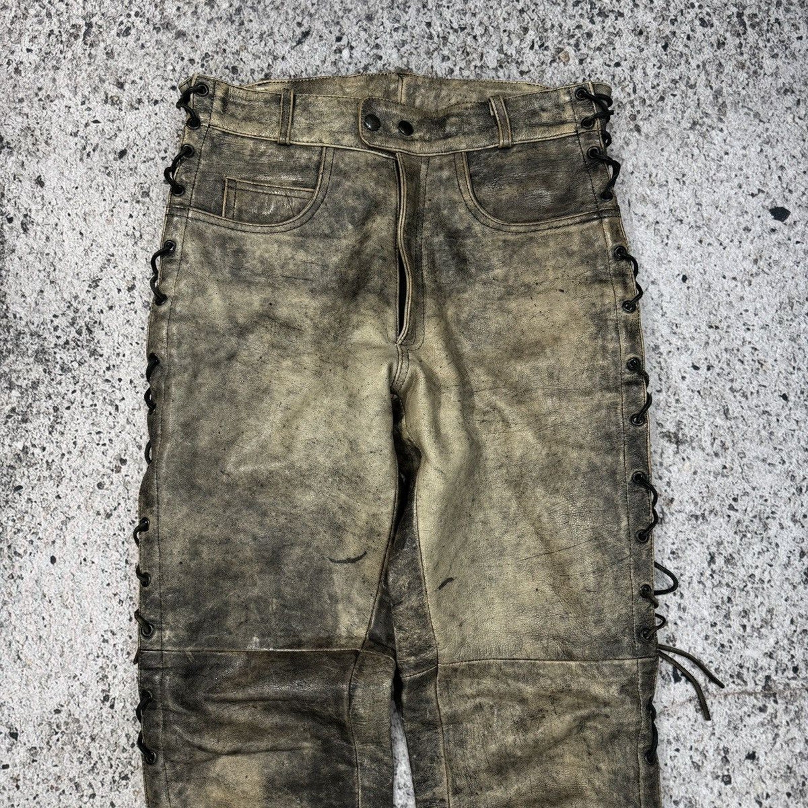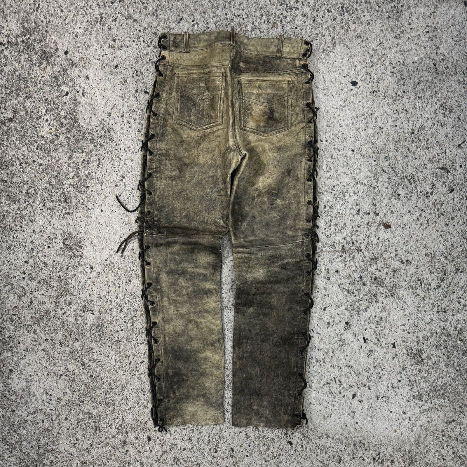 1990s Richa Aged Faded Leather Biker Lace Pants