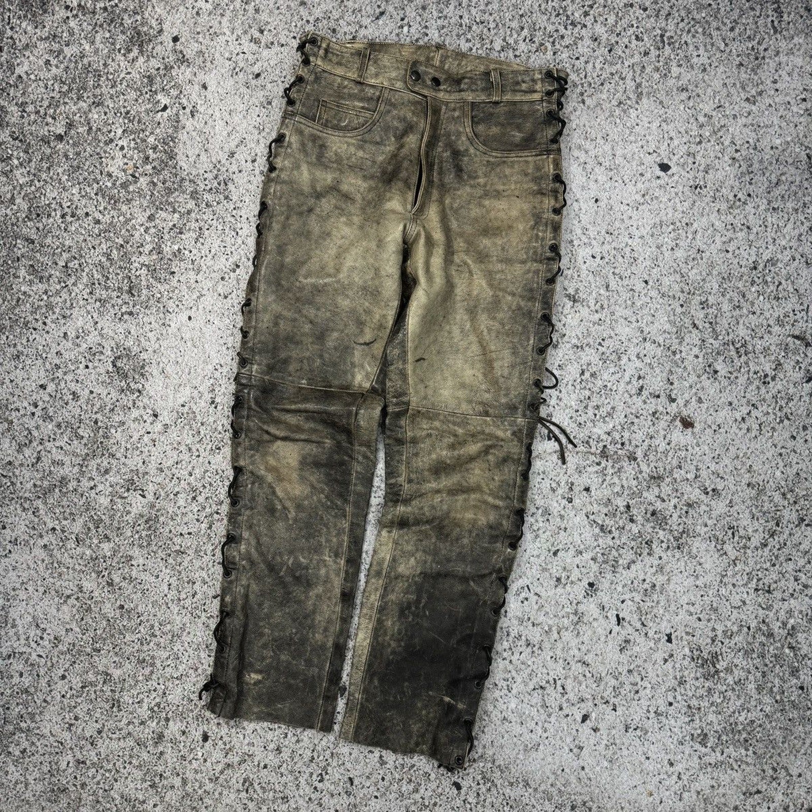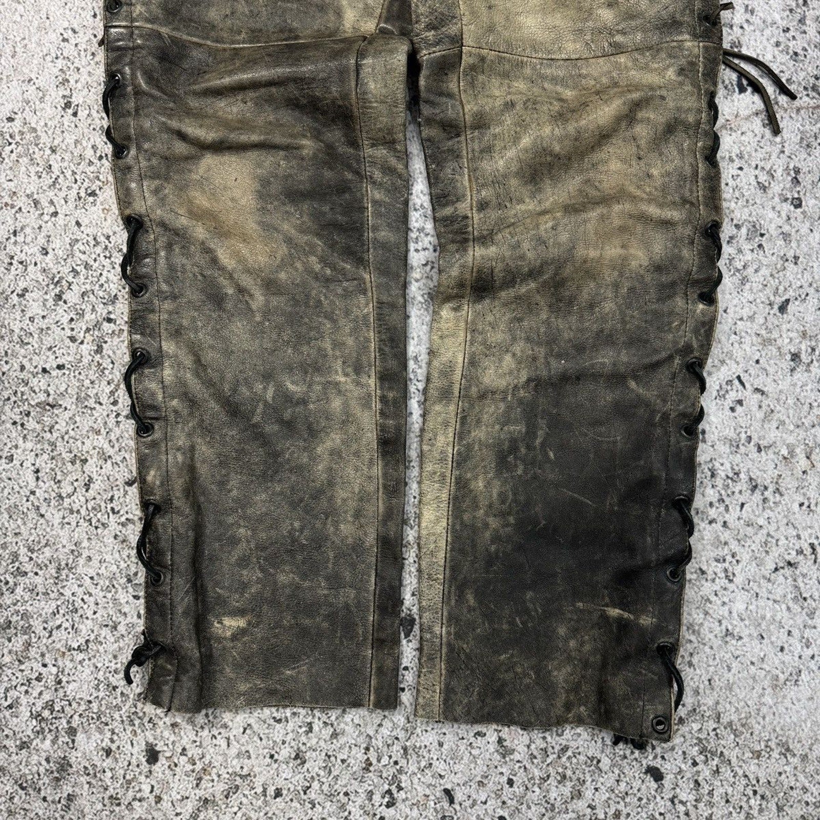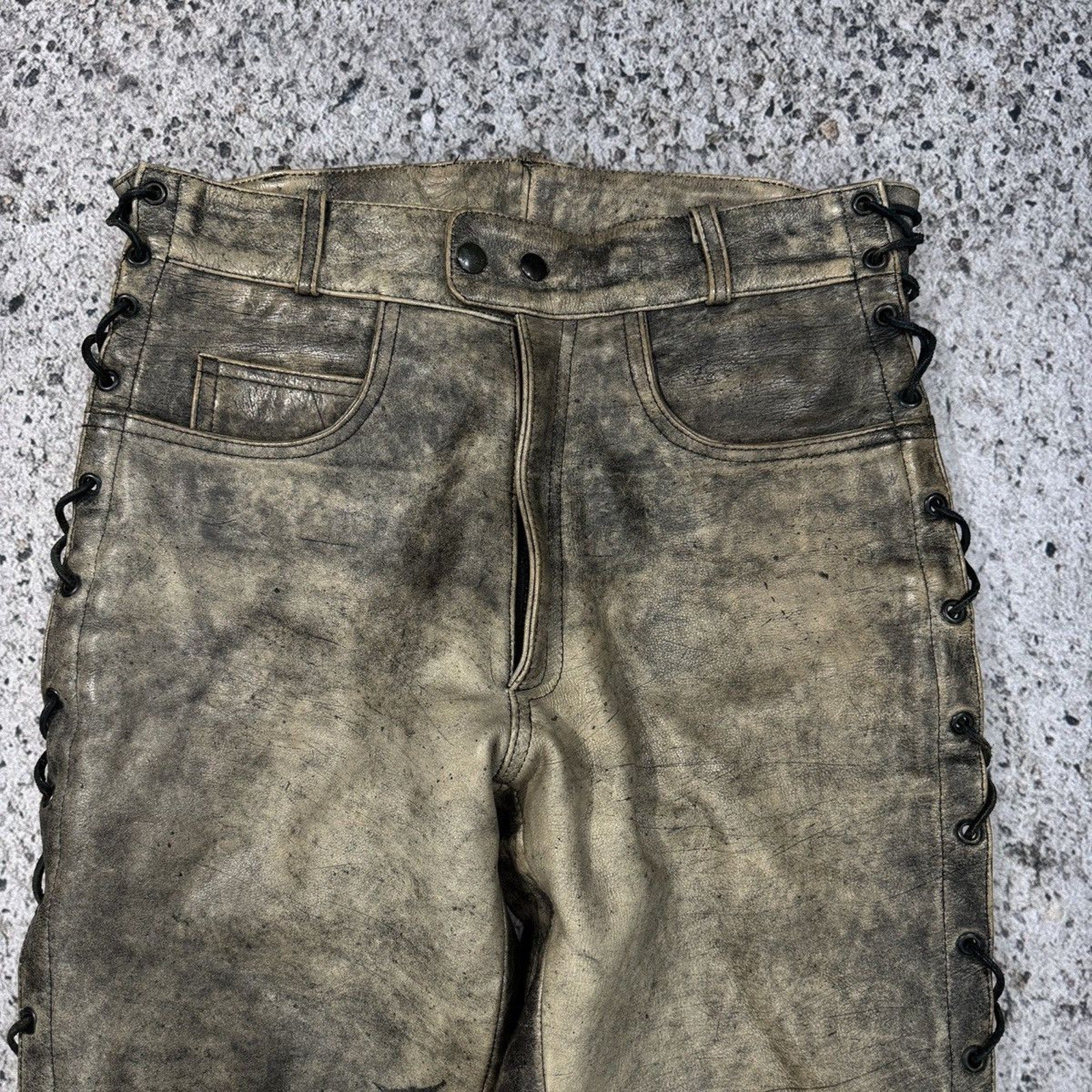 1990s Richa Aged Faded Leather Biker Lace Pants