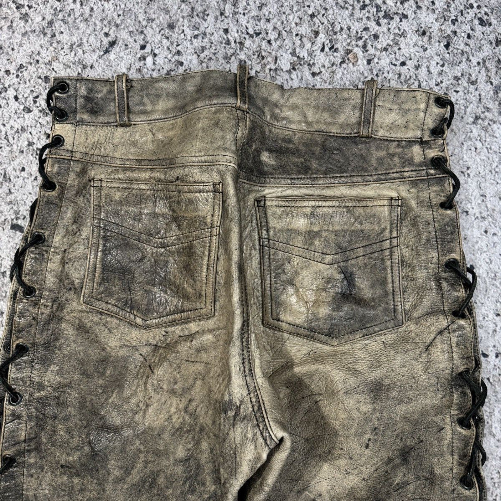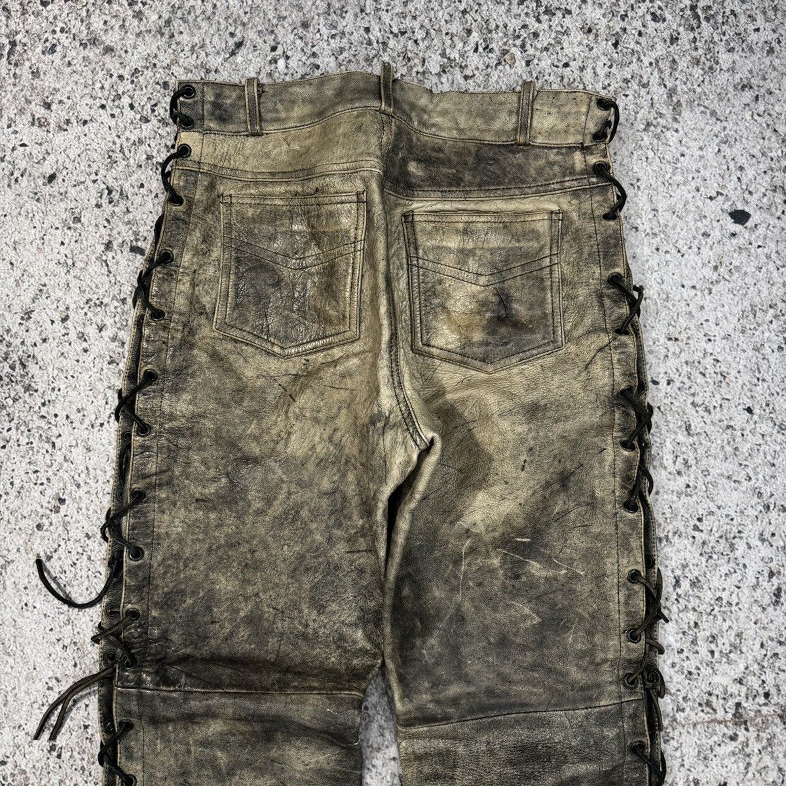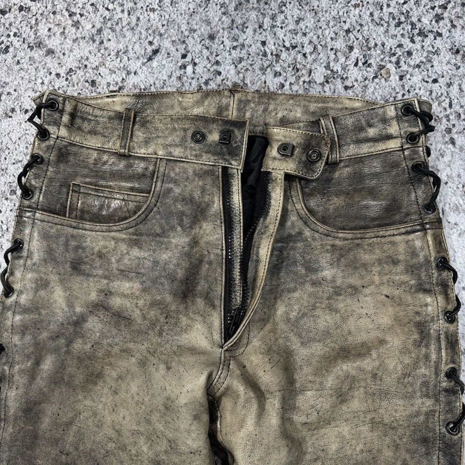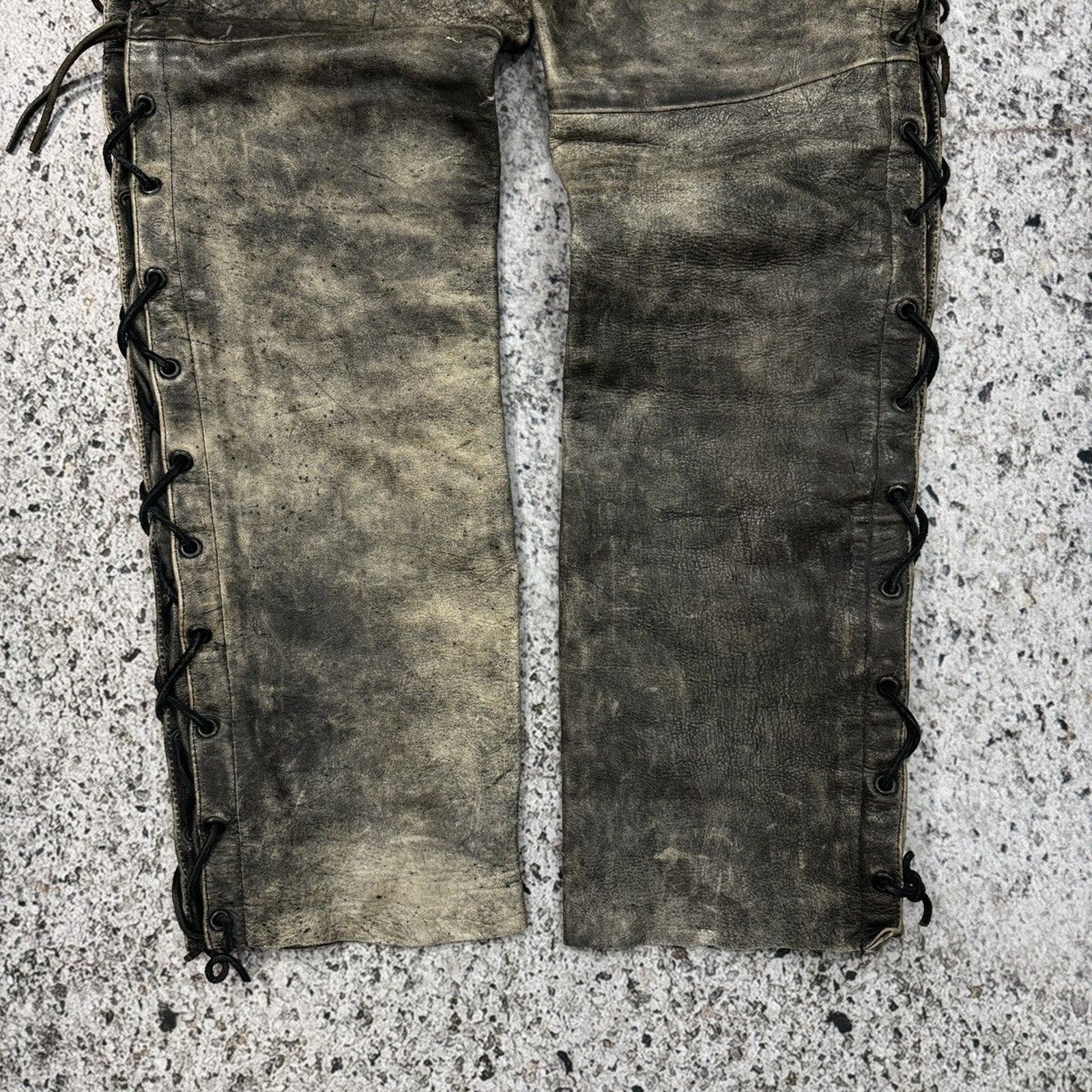 1990s Richa Aged Faded Leather Biker Lace Pants