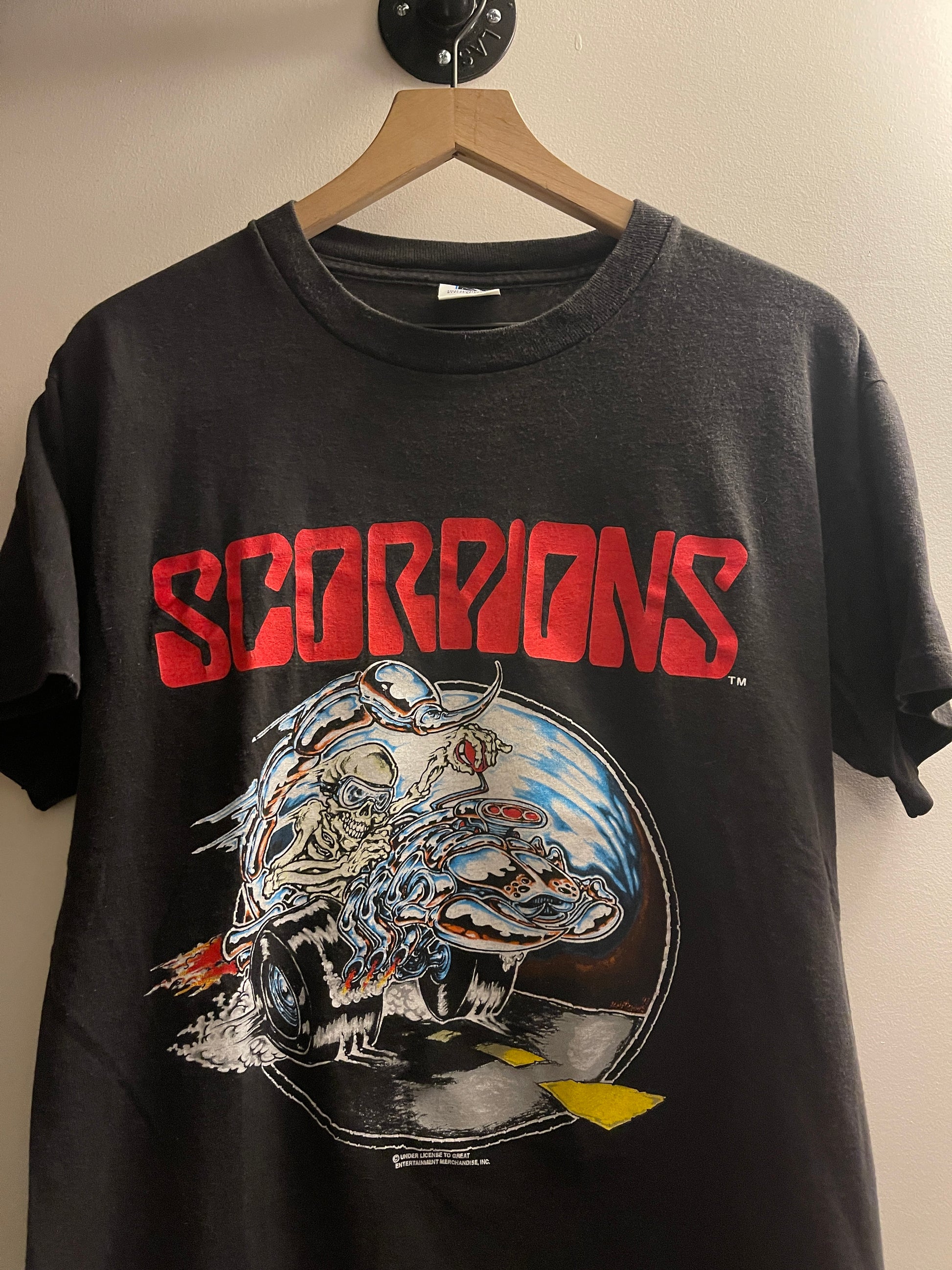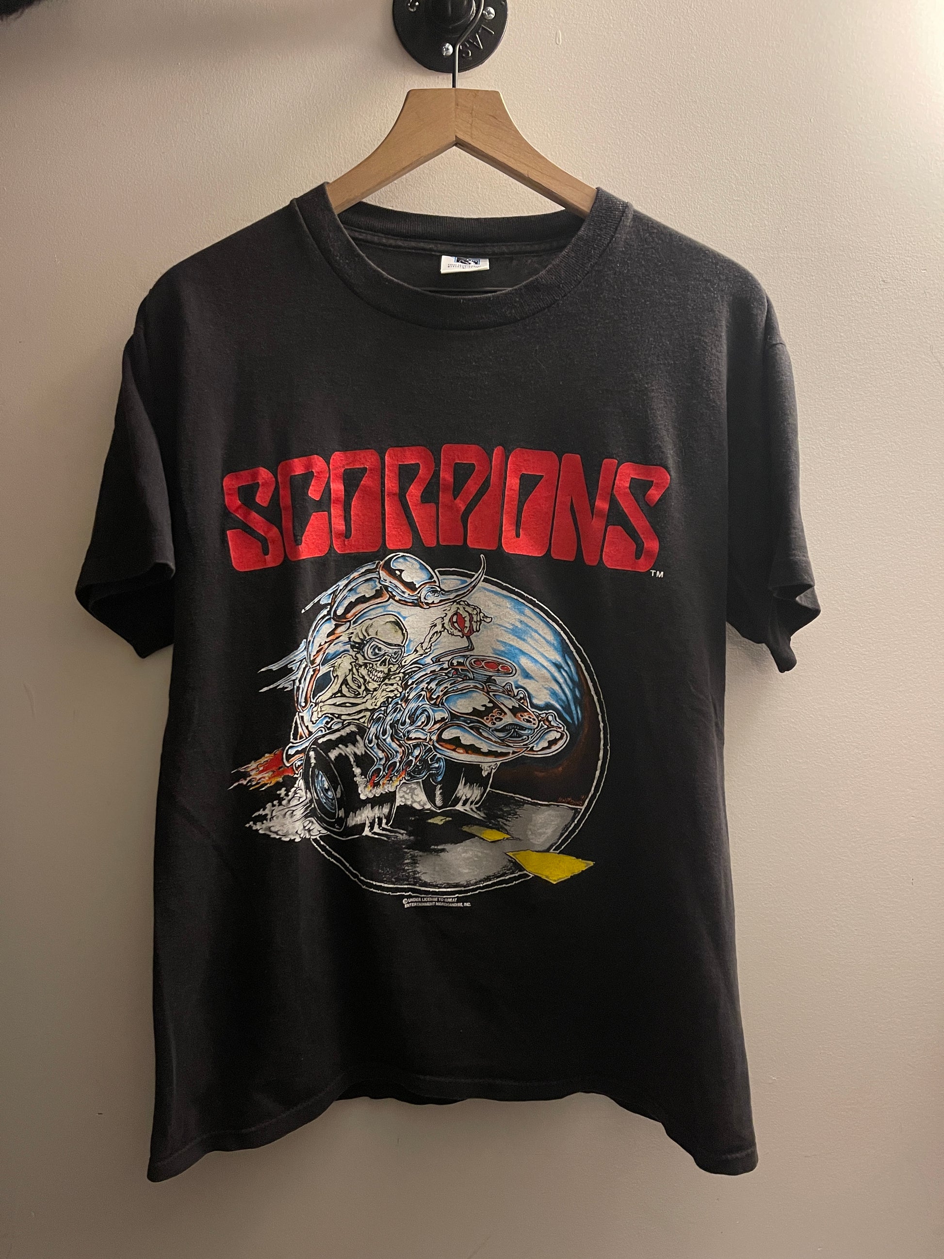 Our sizing is determined by the measurements taken by hand, rather than the tagged size on the garment. Many items, especially with vintage clothing, generally measures different than the tagged size on the article itself. A standard size large tee shirt from decades ago generally fits different than a standard size large in modern sizing, due to changes in manufacturing standards, different practices by brand, shrinkage, aging, varying fabrics & materials, etc.