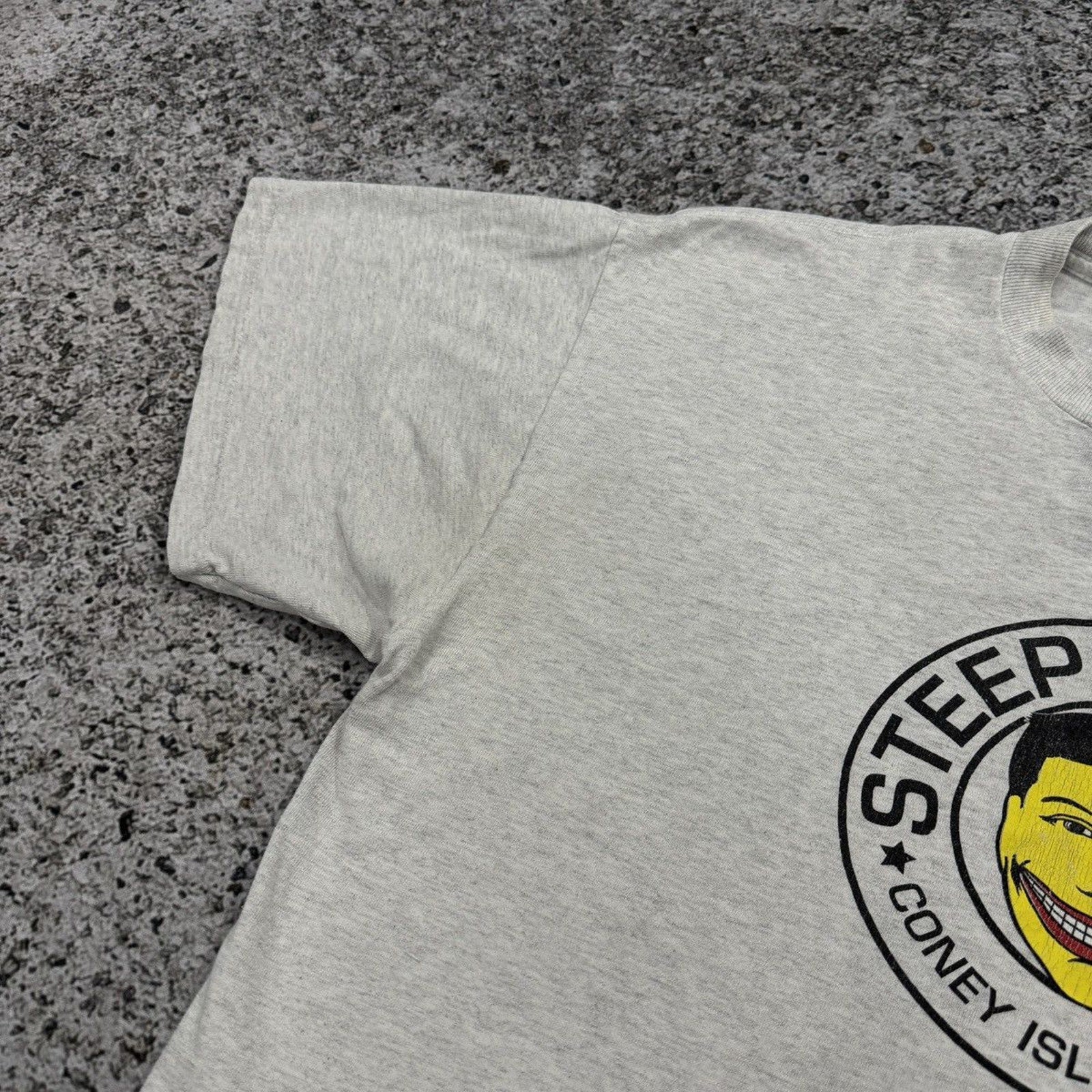 Our sizing is determined by the measurements taken by hand, rather than the tagged size on the garment. Many items, especially with vintage clothing, generally measures different than the tagged size on the article itself. A standard size large tee shirt from decades ago generally fits different than a standard size large in modern sizing, due to changes in manufacturing standards, different practices by brand, shrinkage, aging, varying fabrics & materials, etc.