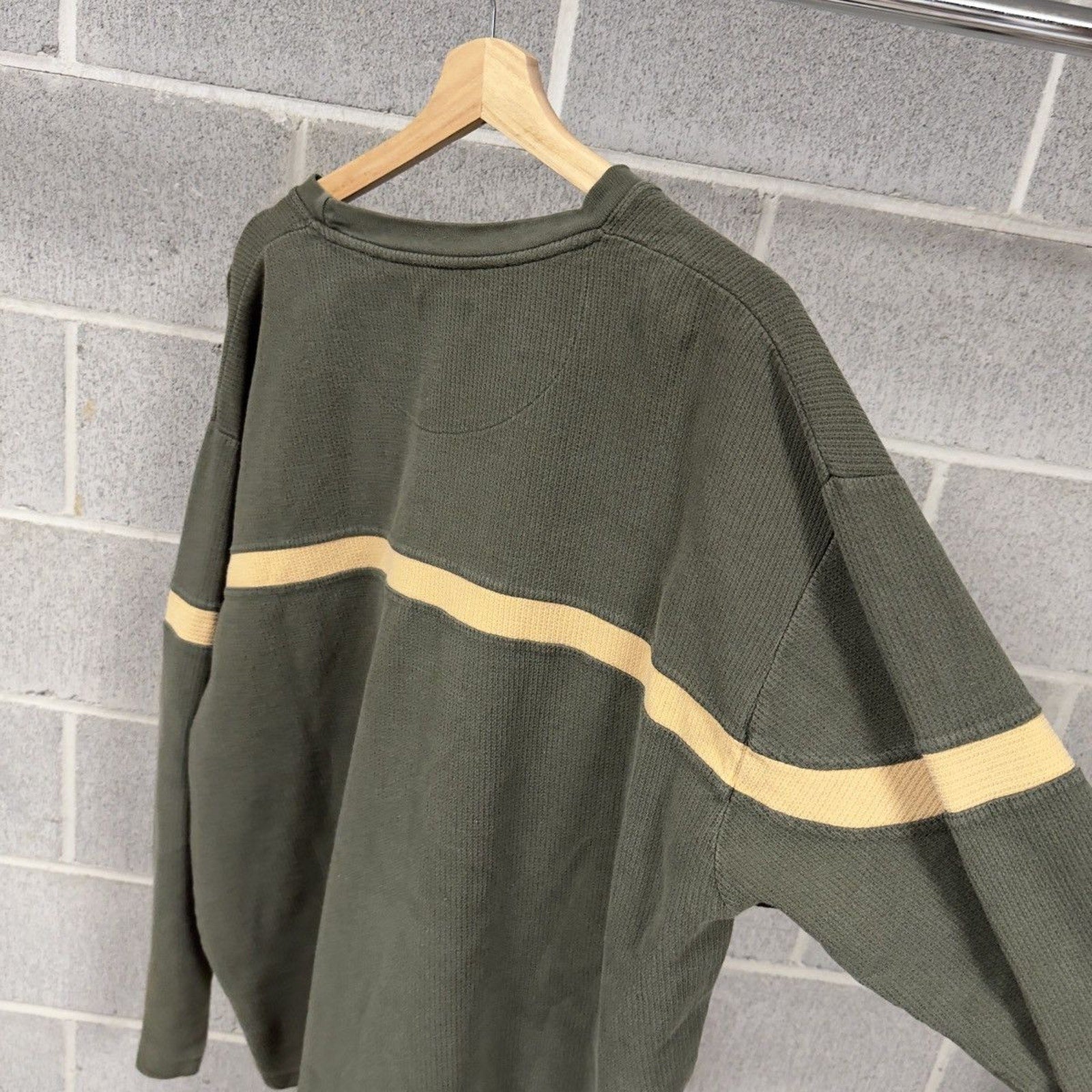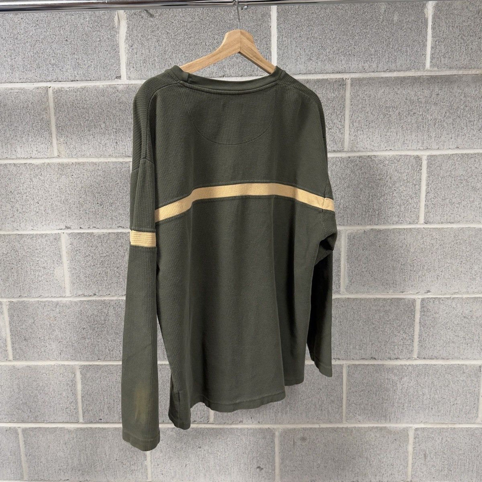 1990s Striped Green Ribbed Longsleeve Thermal Shirt