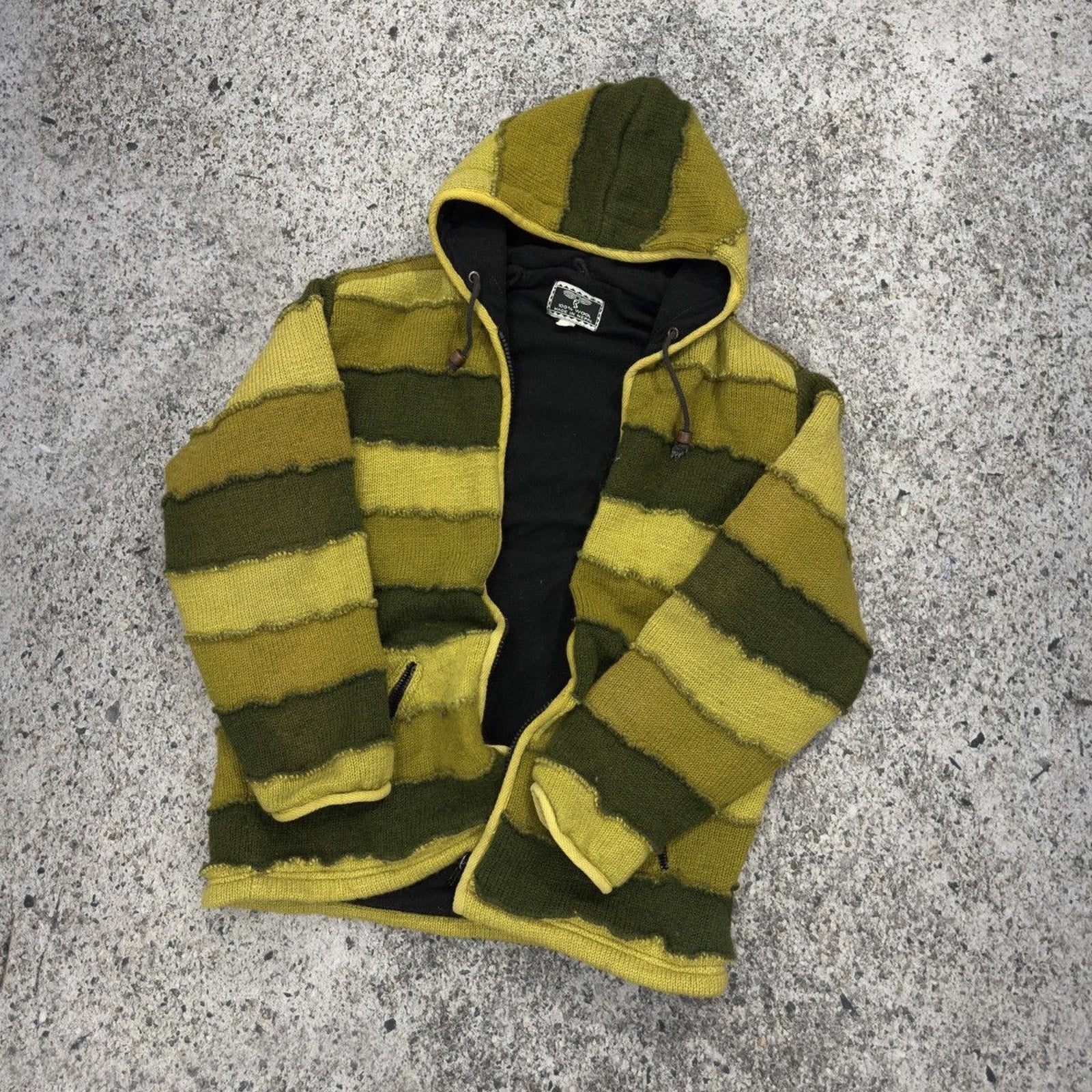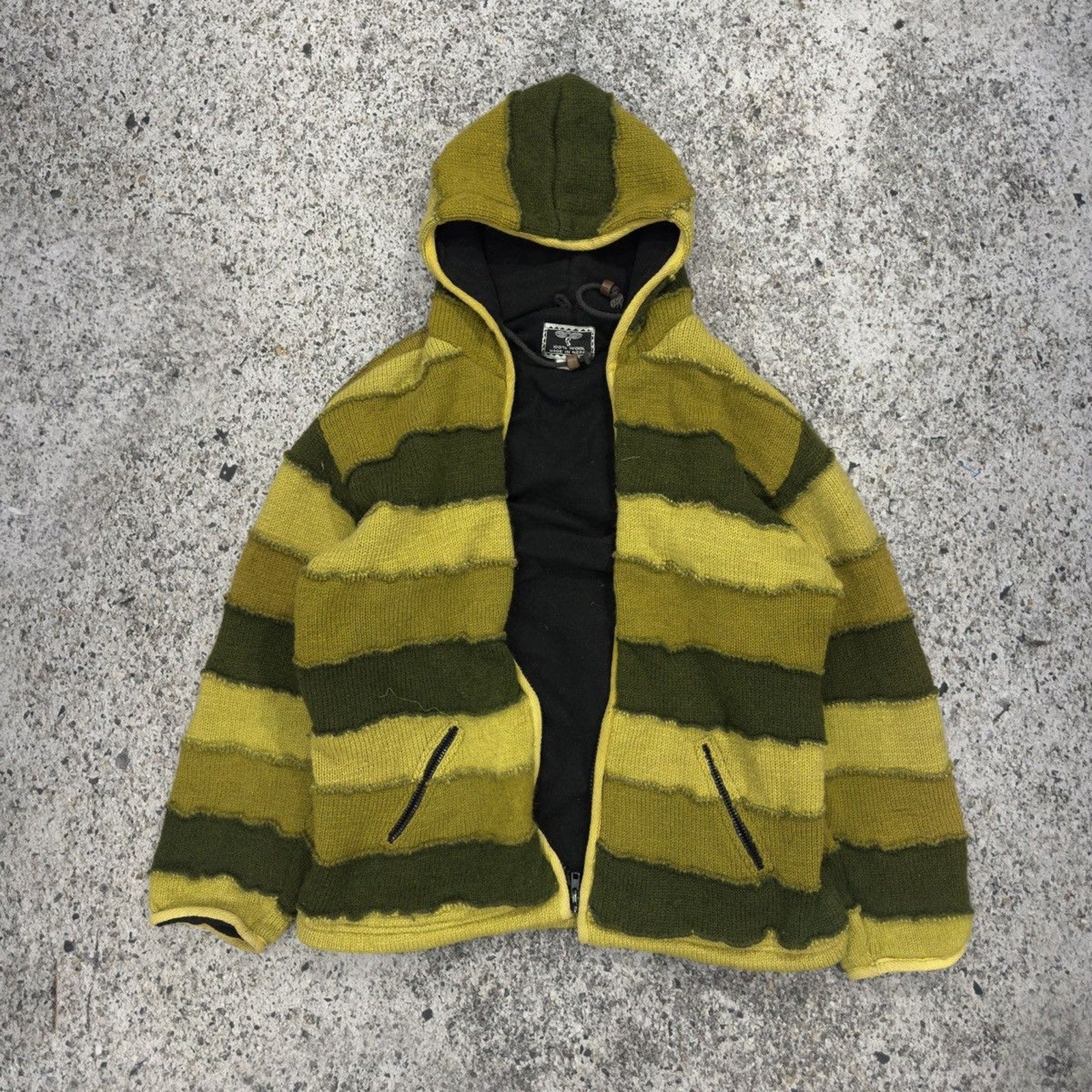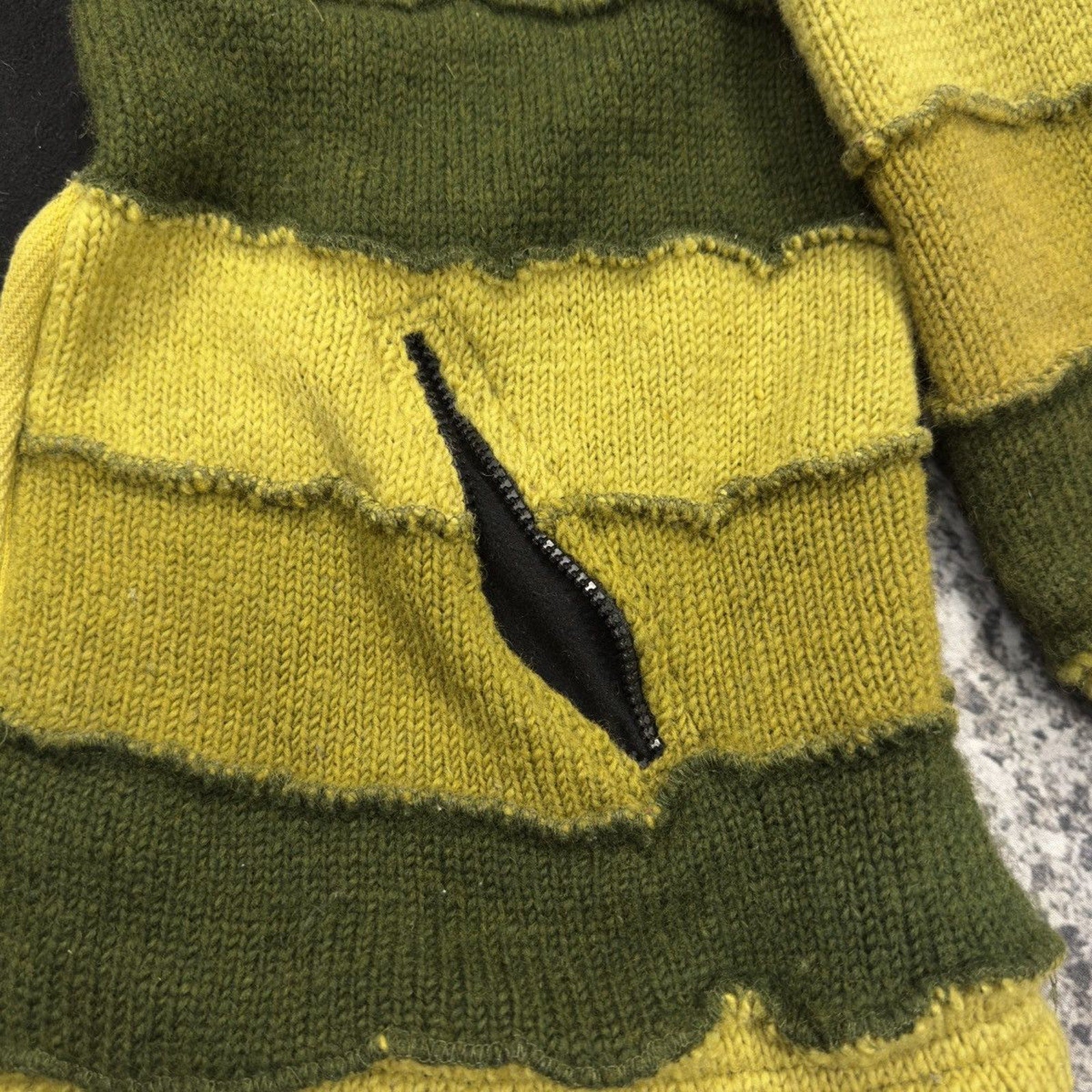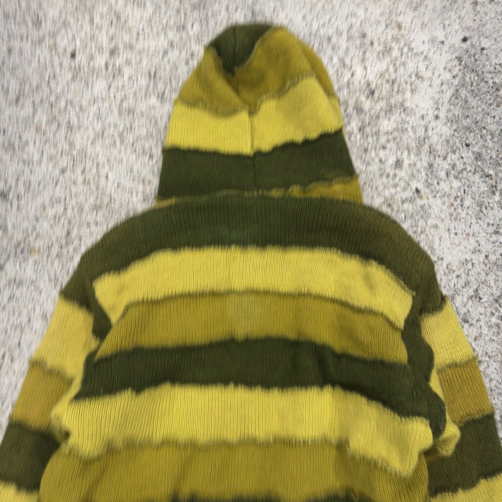1990s Wool Striped Green Heavy Chunky Knit Zip Up Hoodie