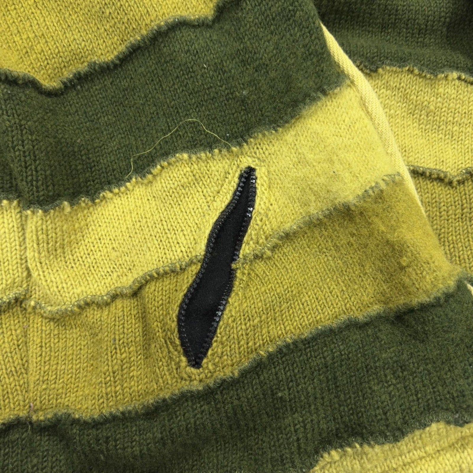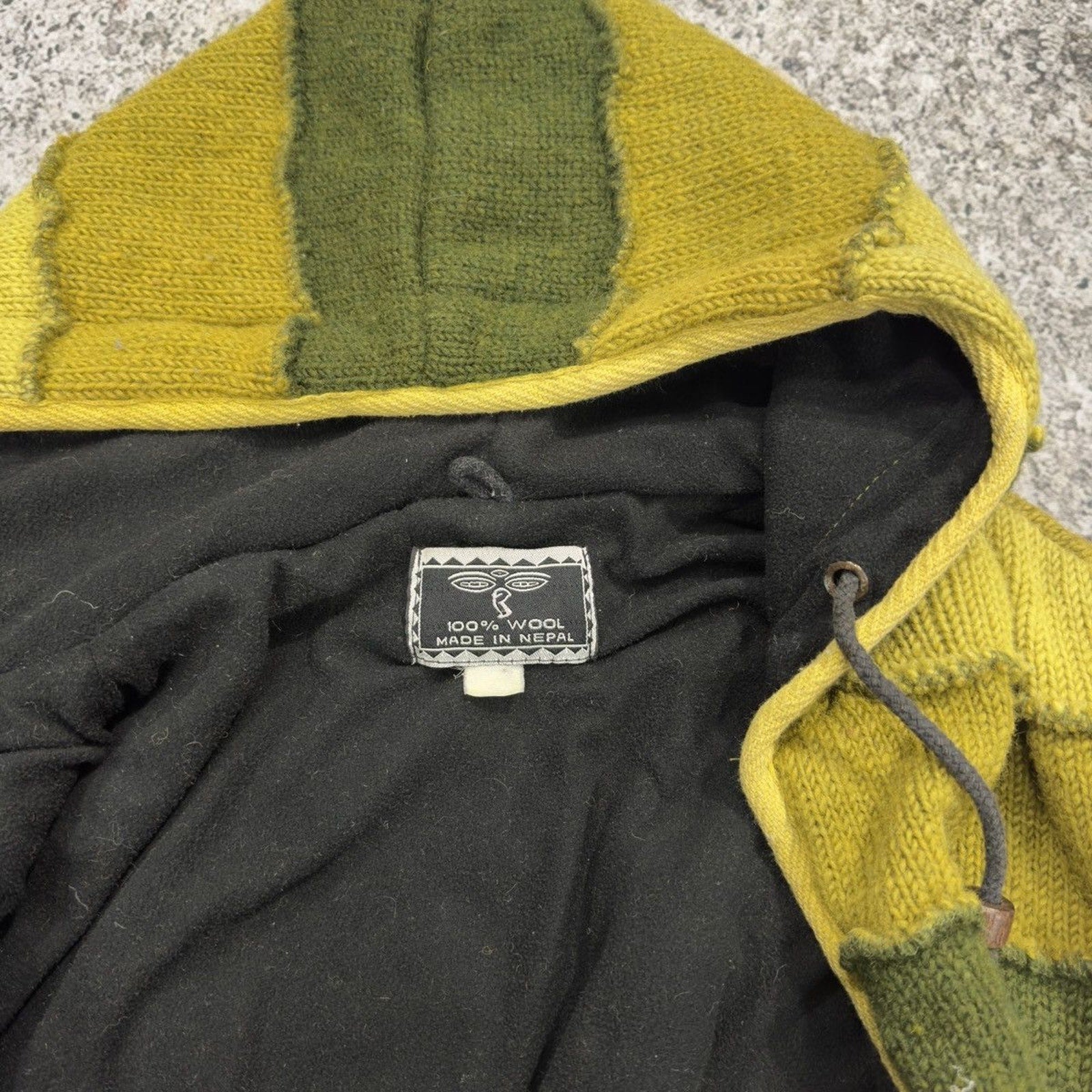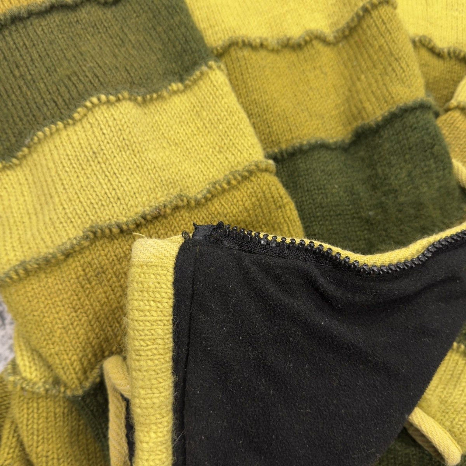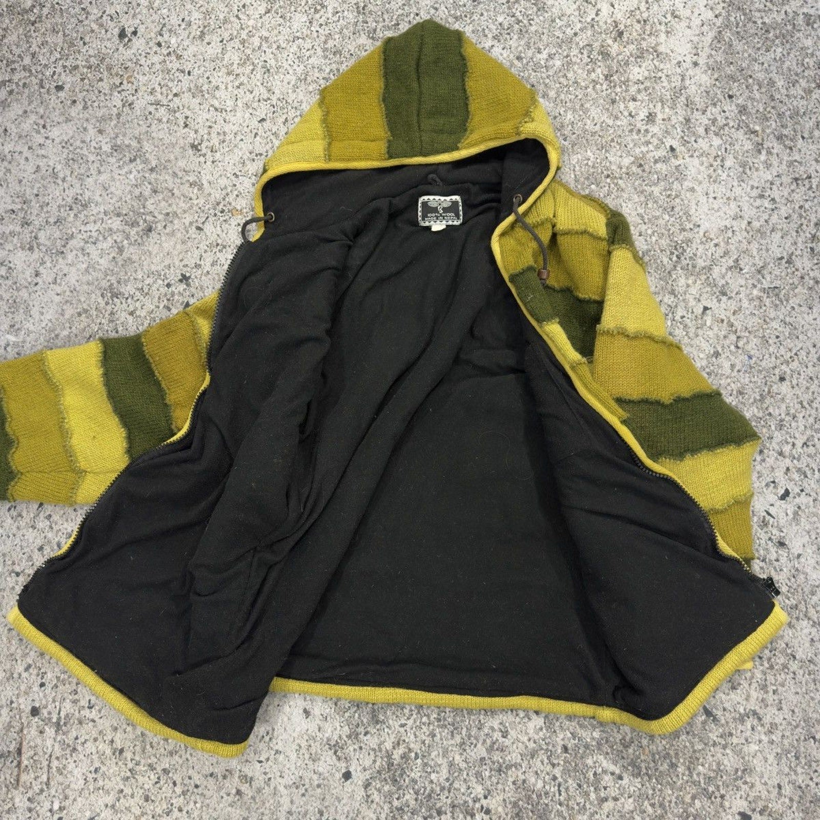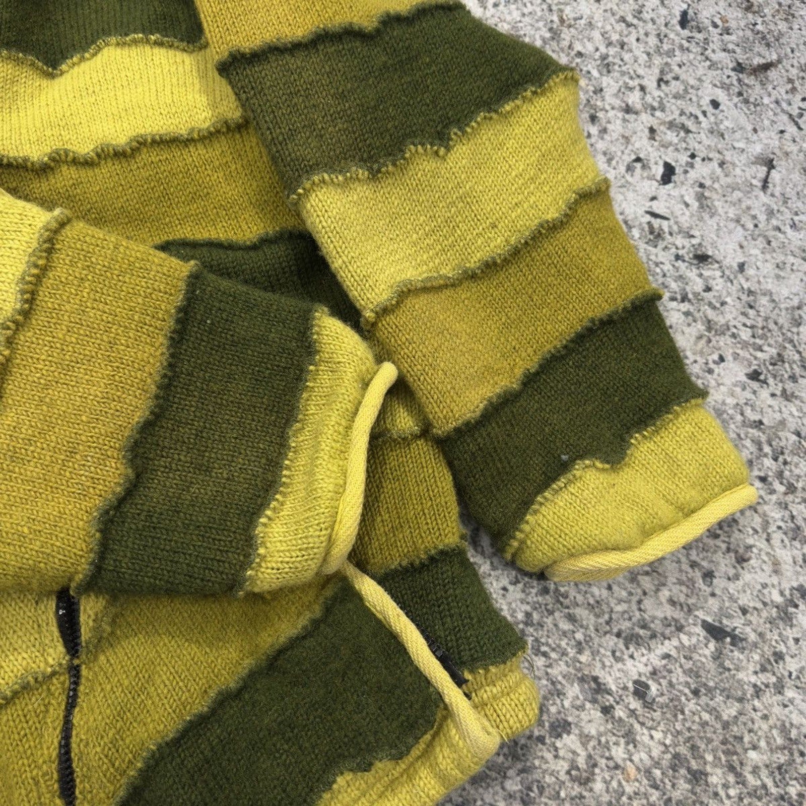 1990s Wool Striped Green Heavy Chunky Knit Zip Up Hoodie