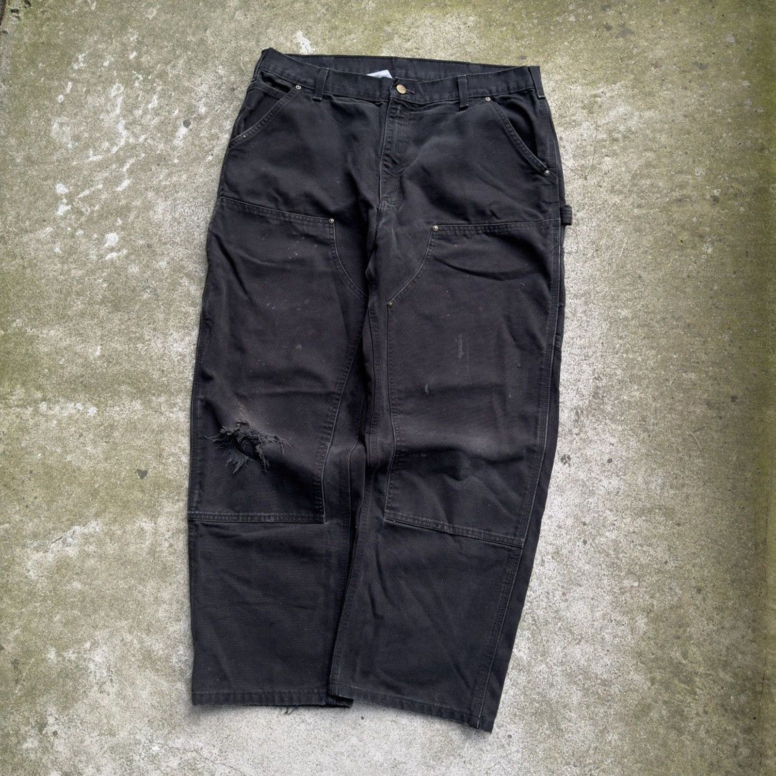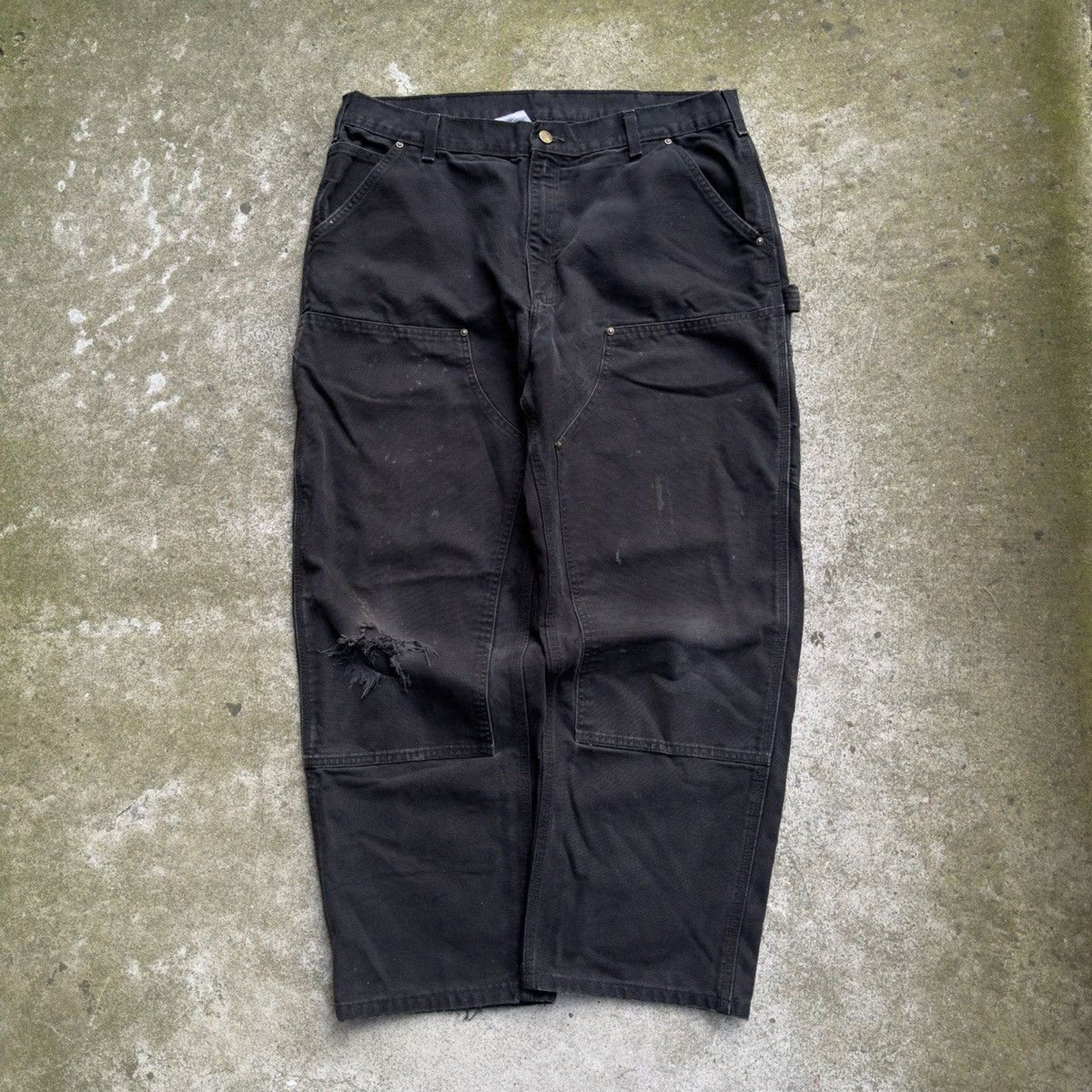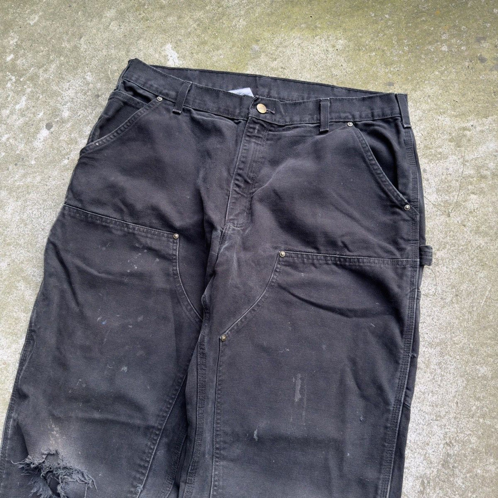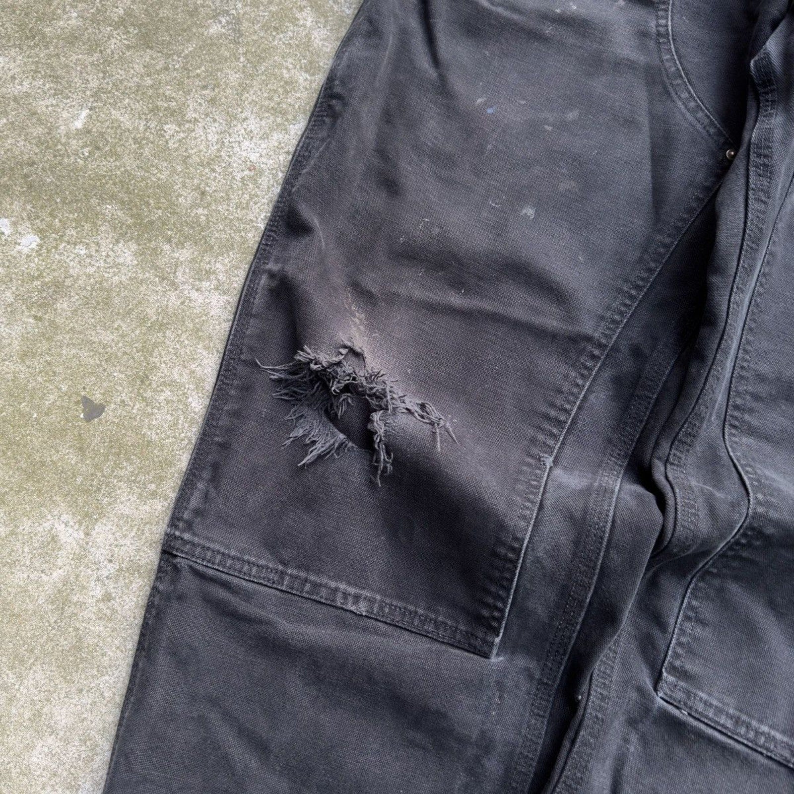 2000S CARHARTT THRASHED FADED BLACK DOUBLE KNEE PANTS