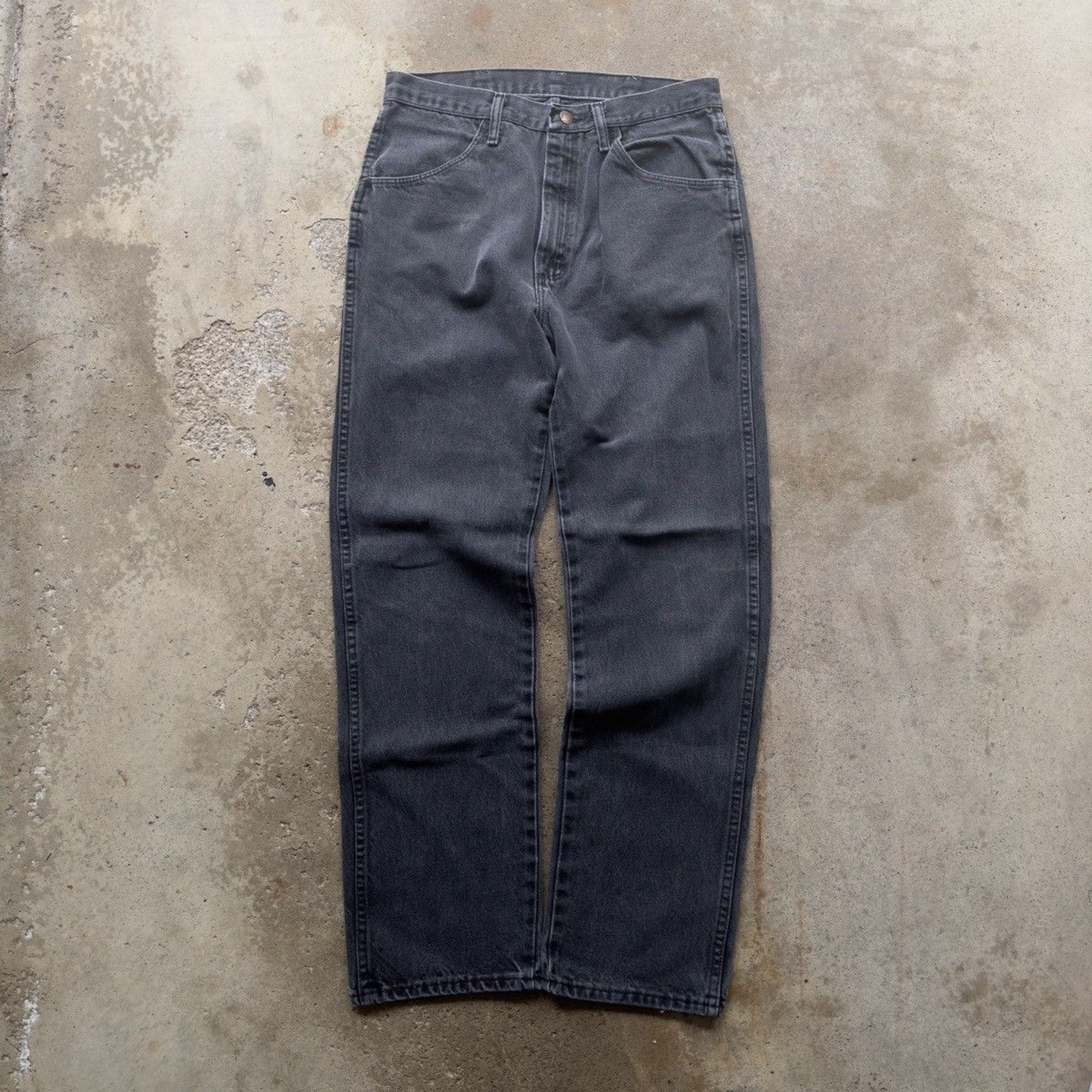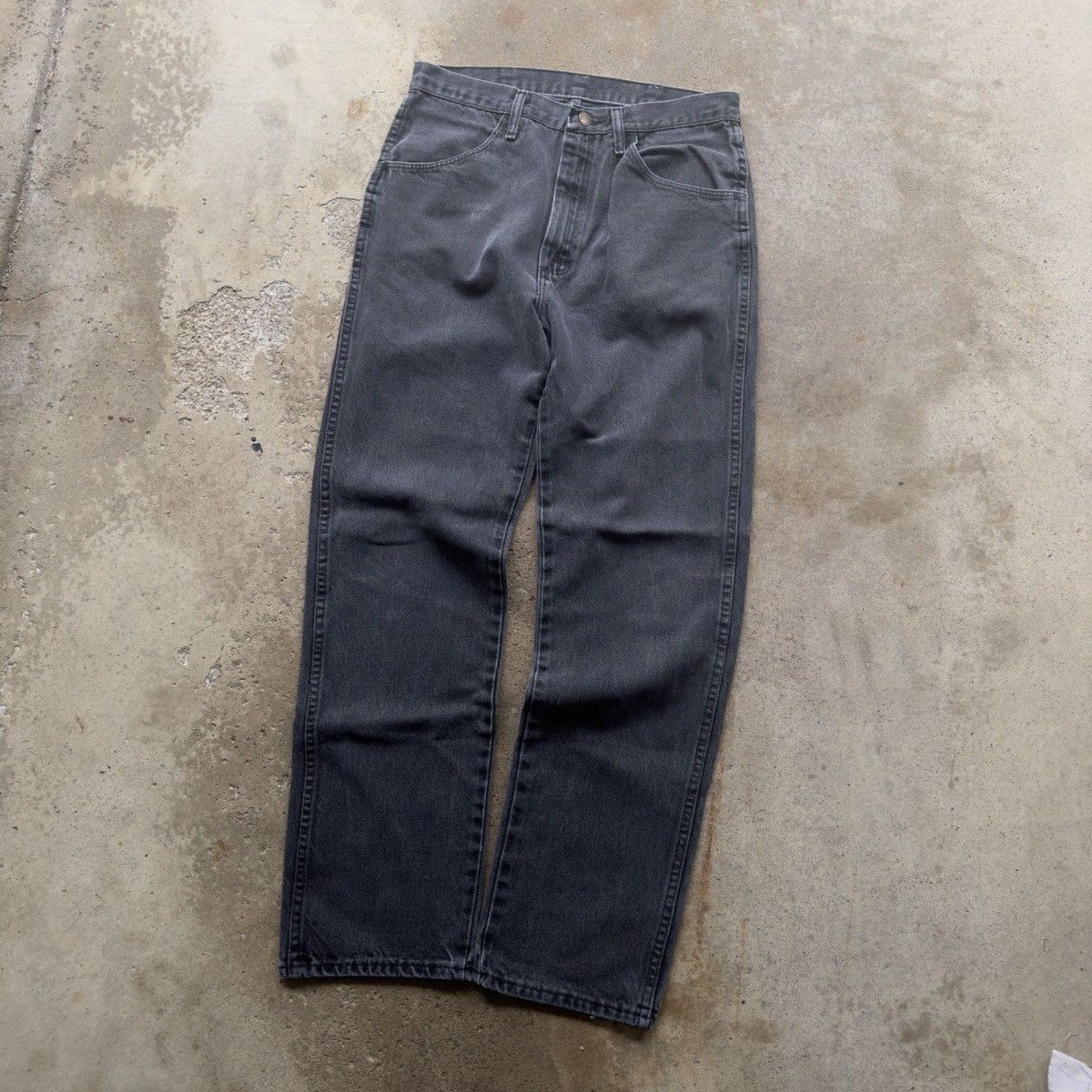 2000s FADED BLACK RUSTLER STRAIGHT DENIM SKATER JEANS