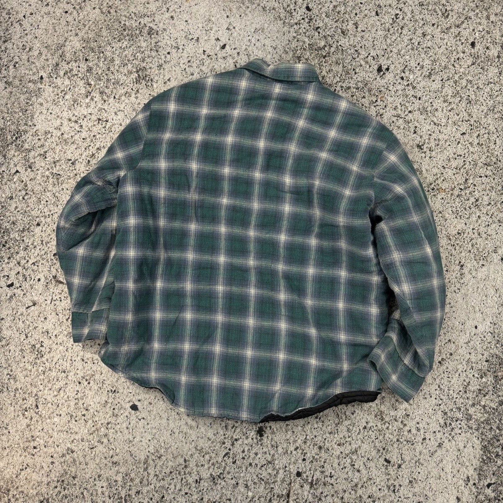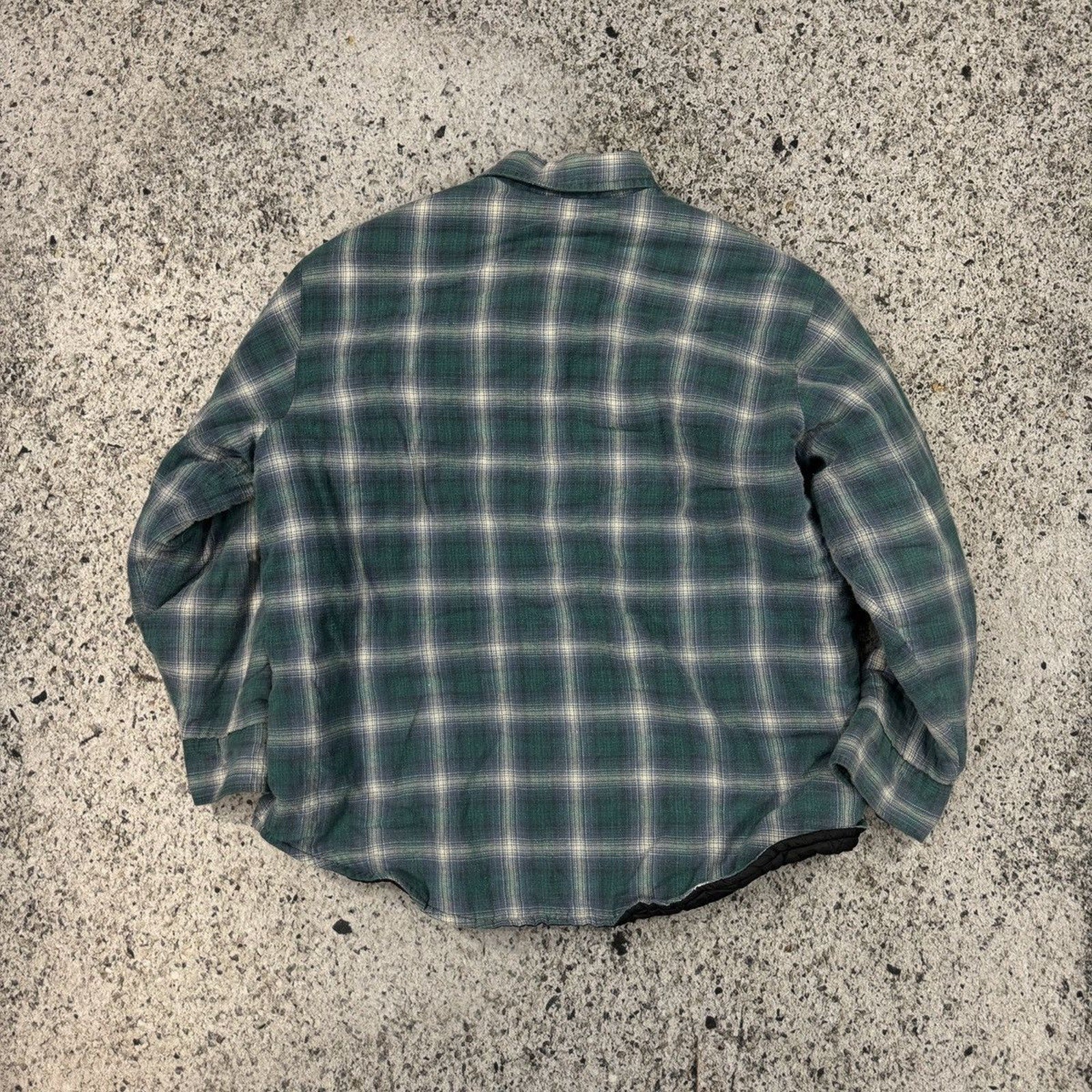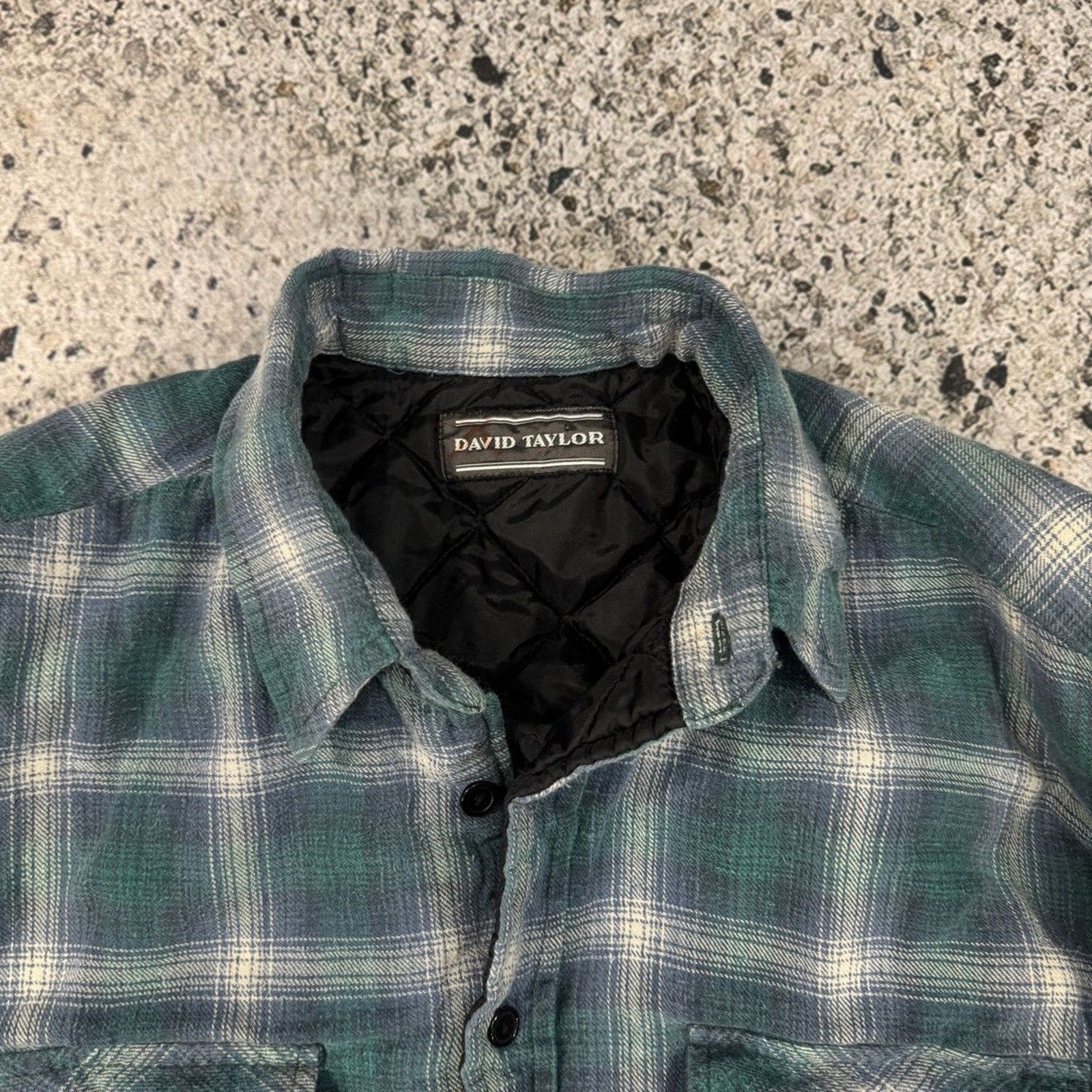 2000s Faded Quilted Blue Green Plaid Flannel Skater Shirt Jacket