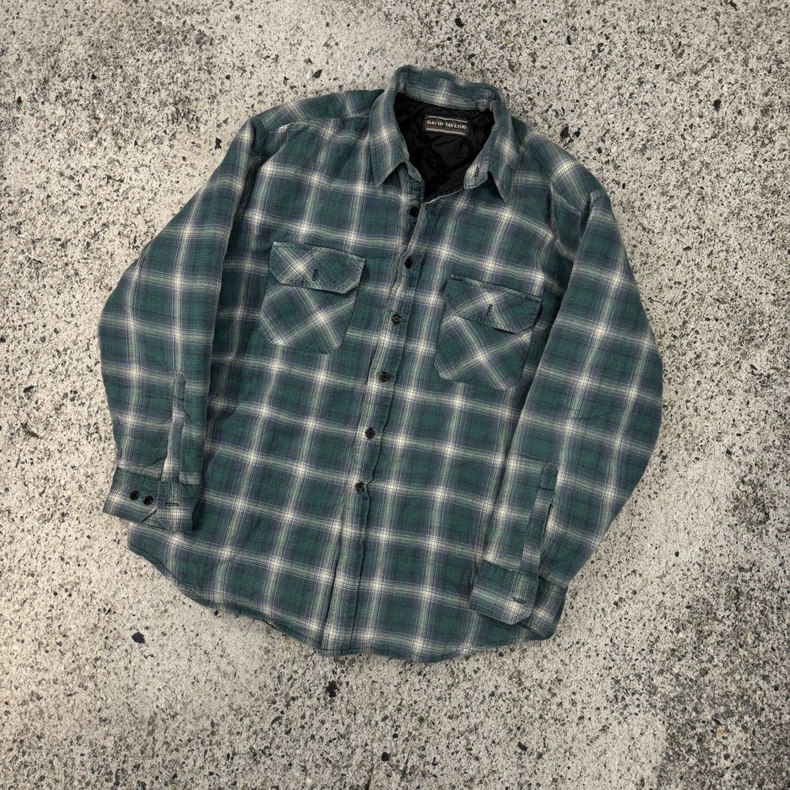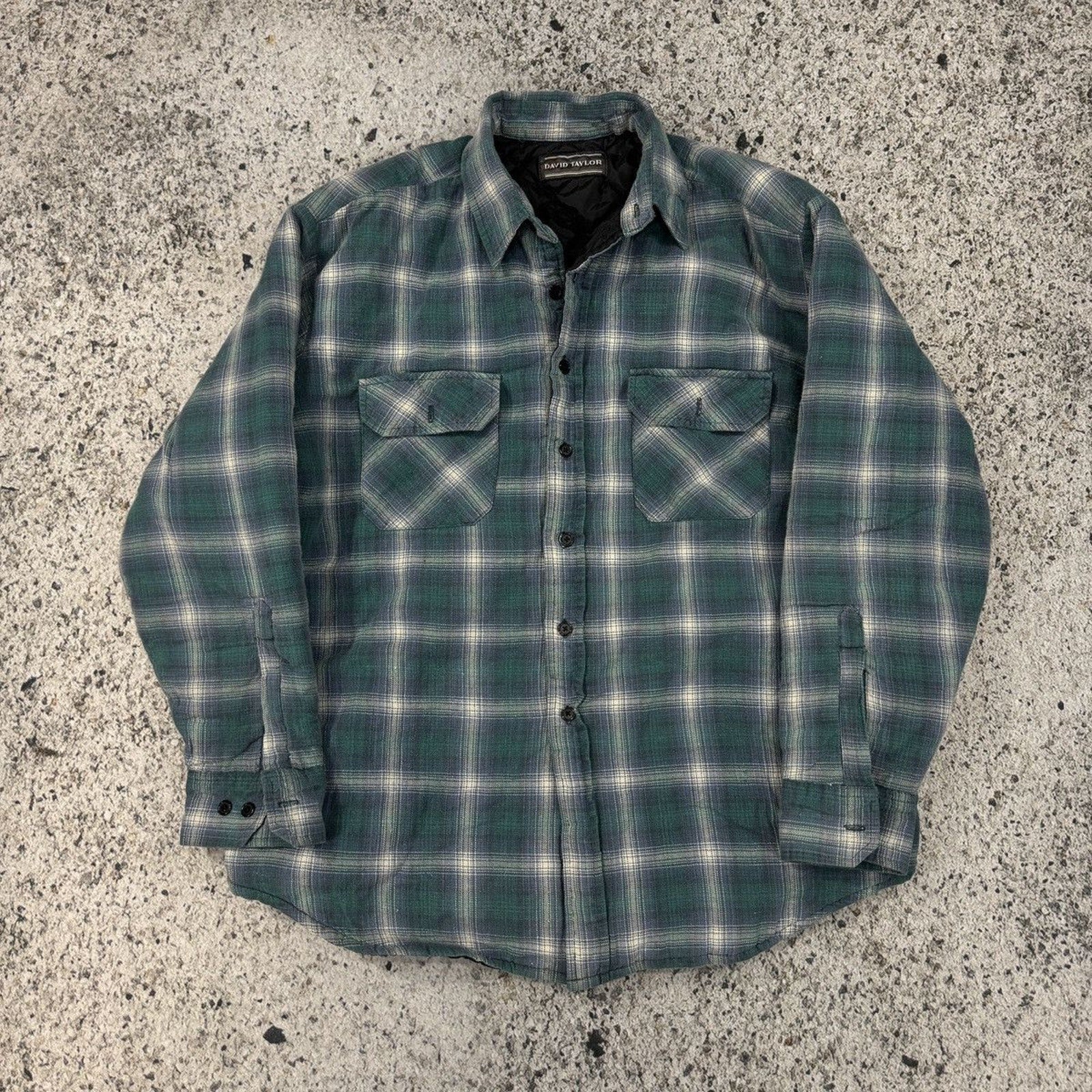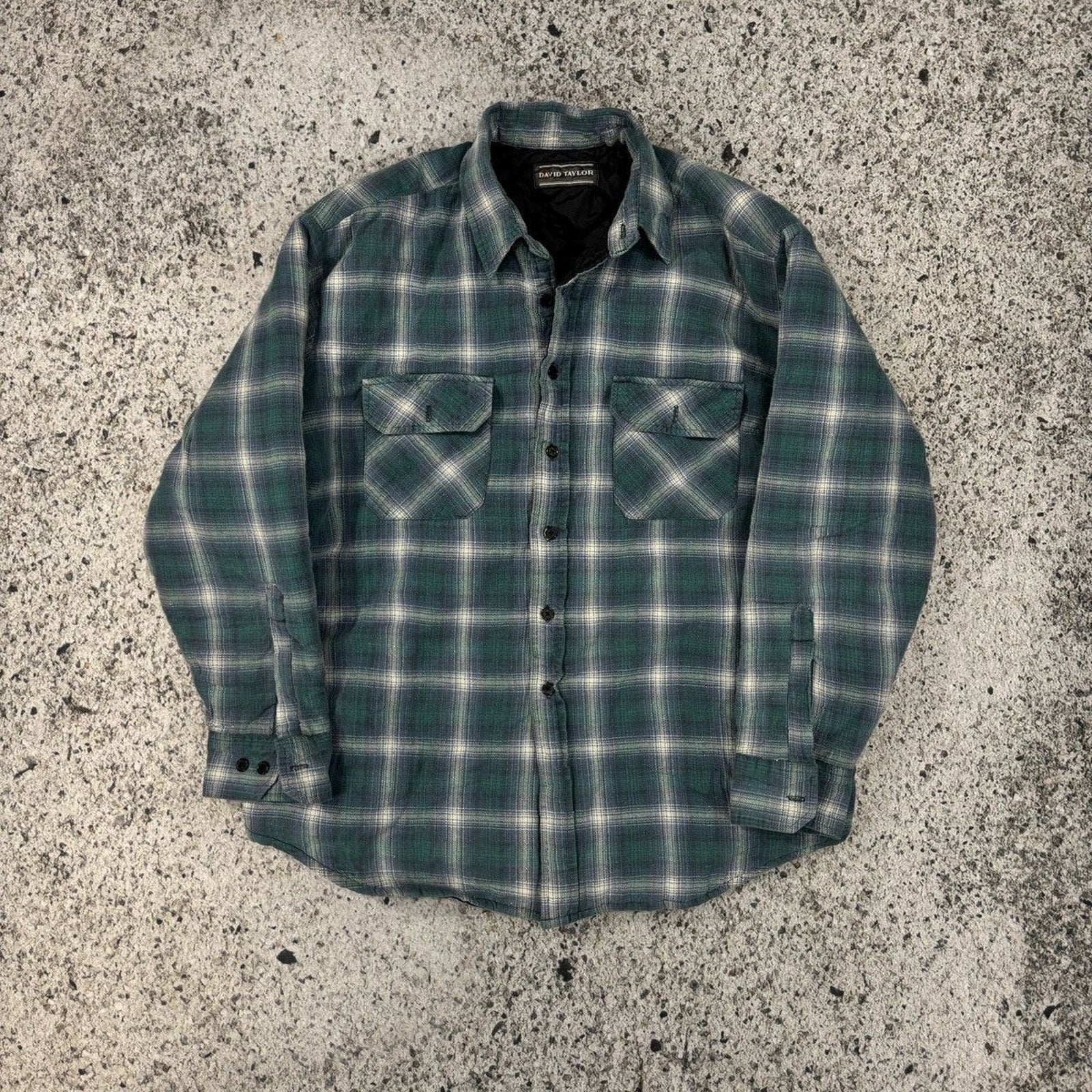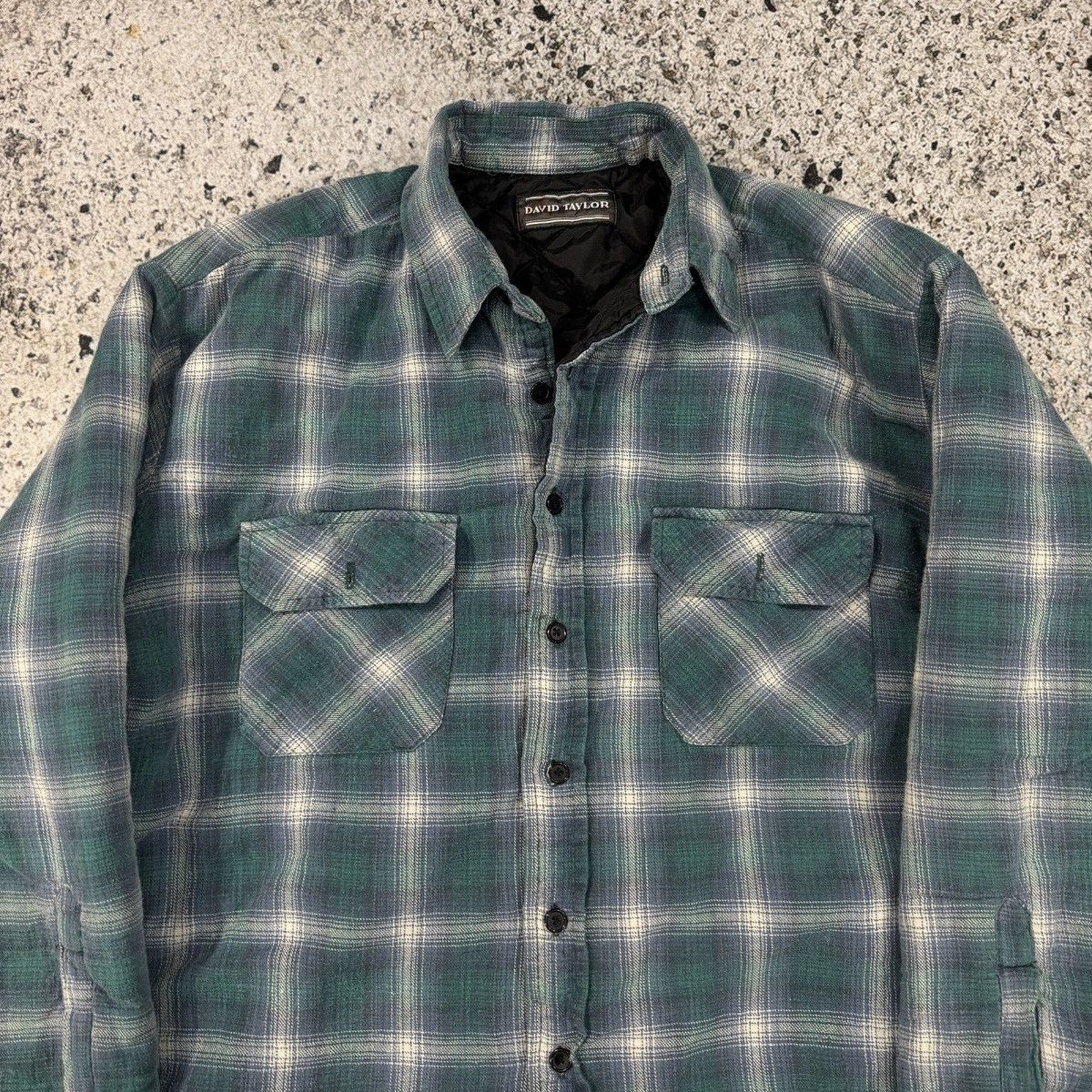 2000s Faded Quilted Blue Green Plaid Flannel Skater Shirt Jacket