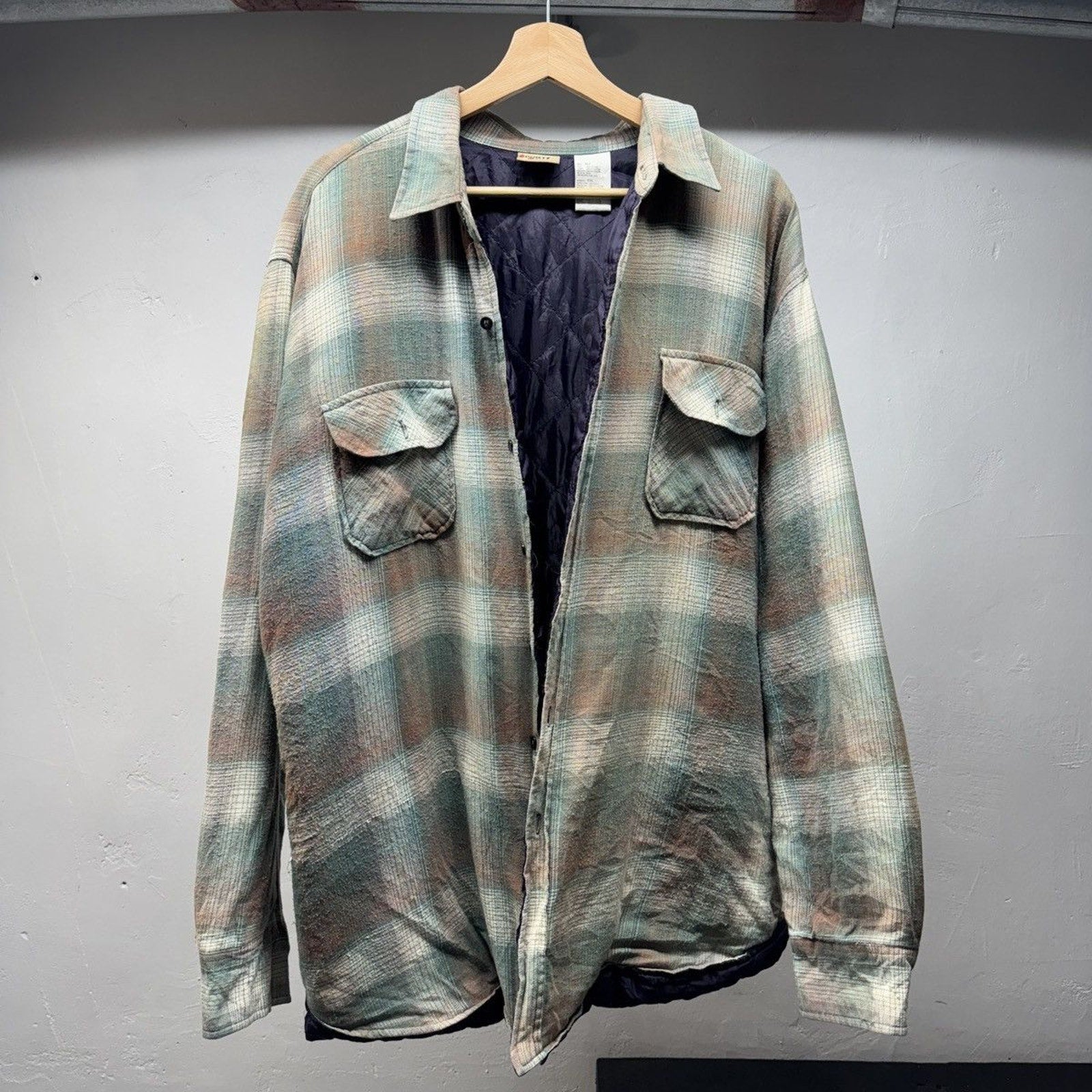 2000s Faded Quilted Plaid Grunge Flannel Jacket Shirt