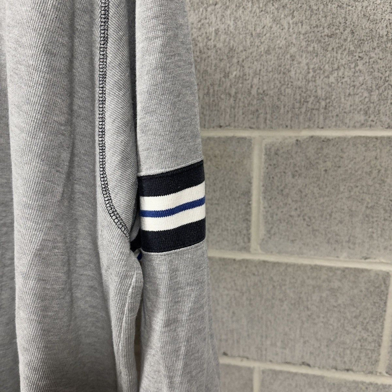 Perfect wear. slight distressing. Good stripes. Black/white/blue. So good. Loose fit. Raglan cut