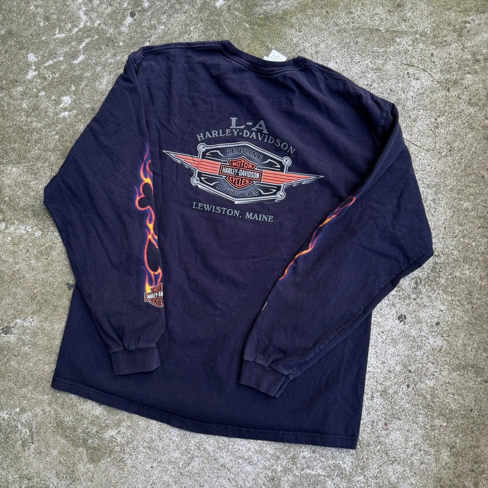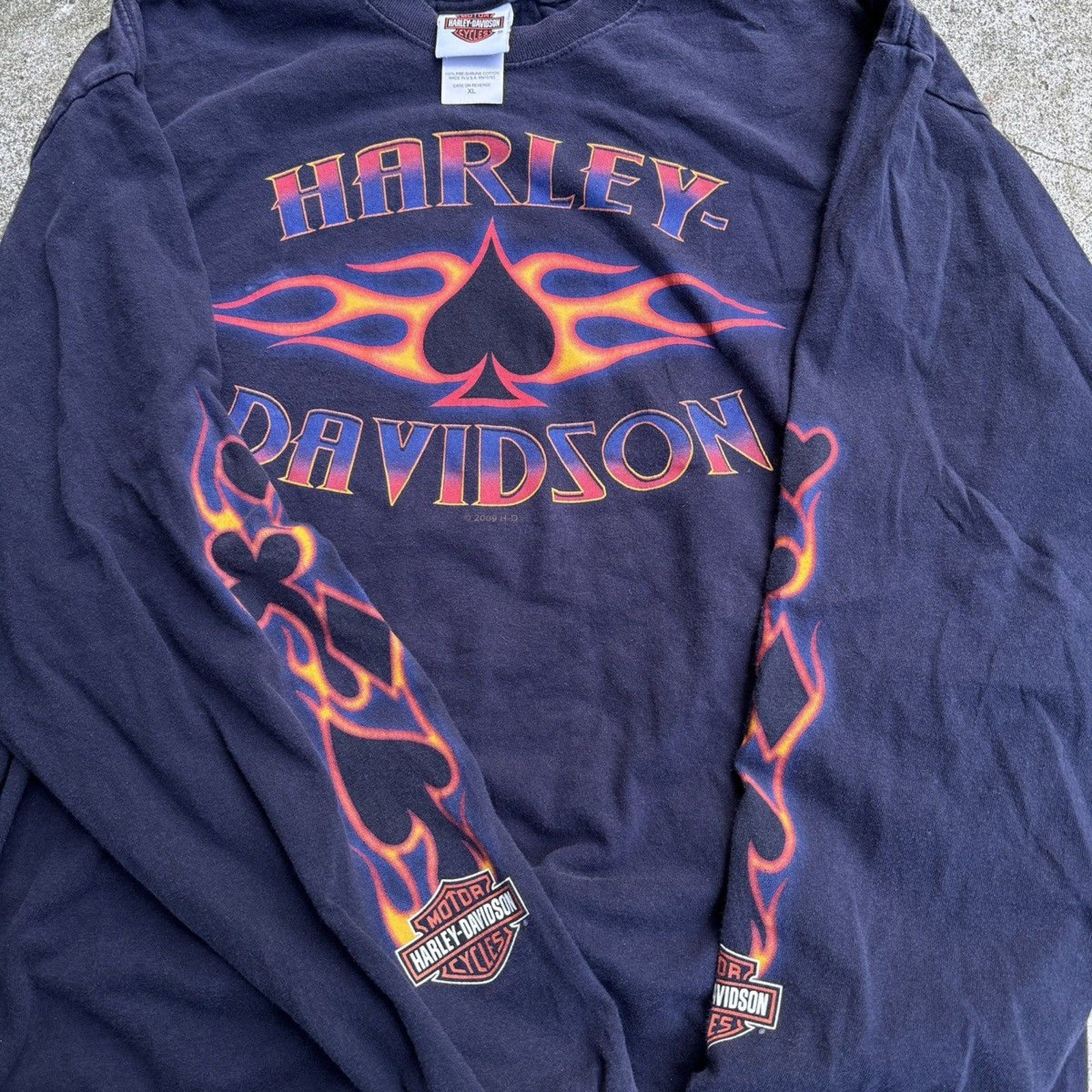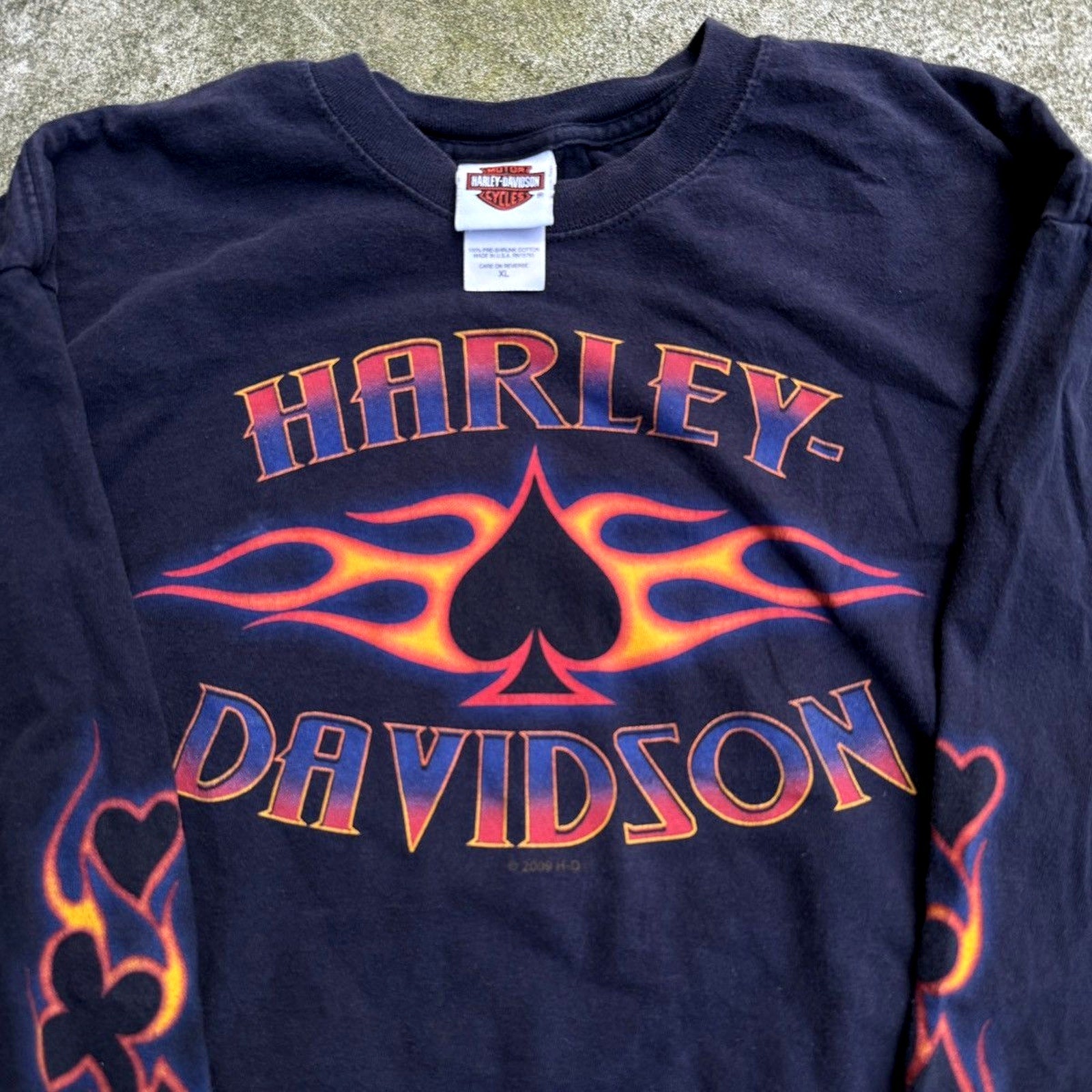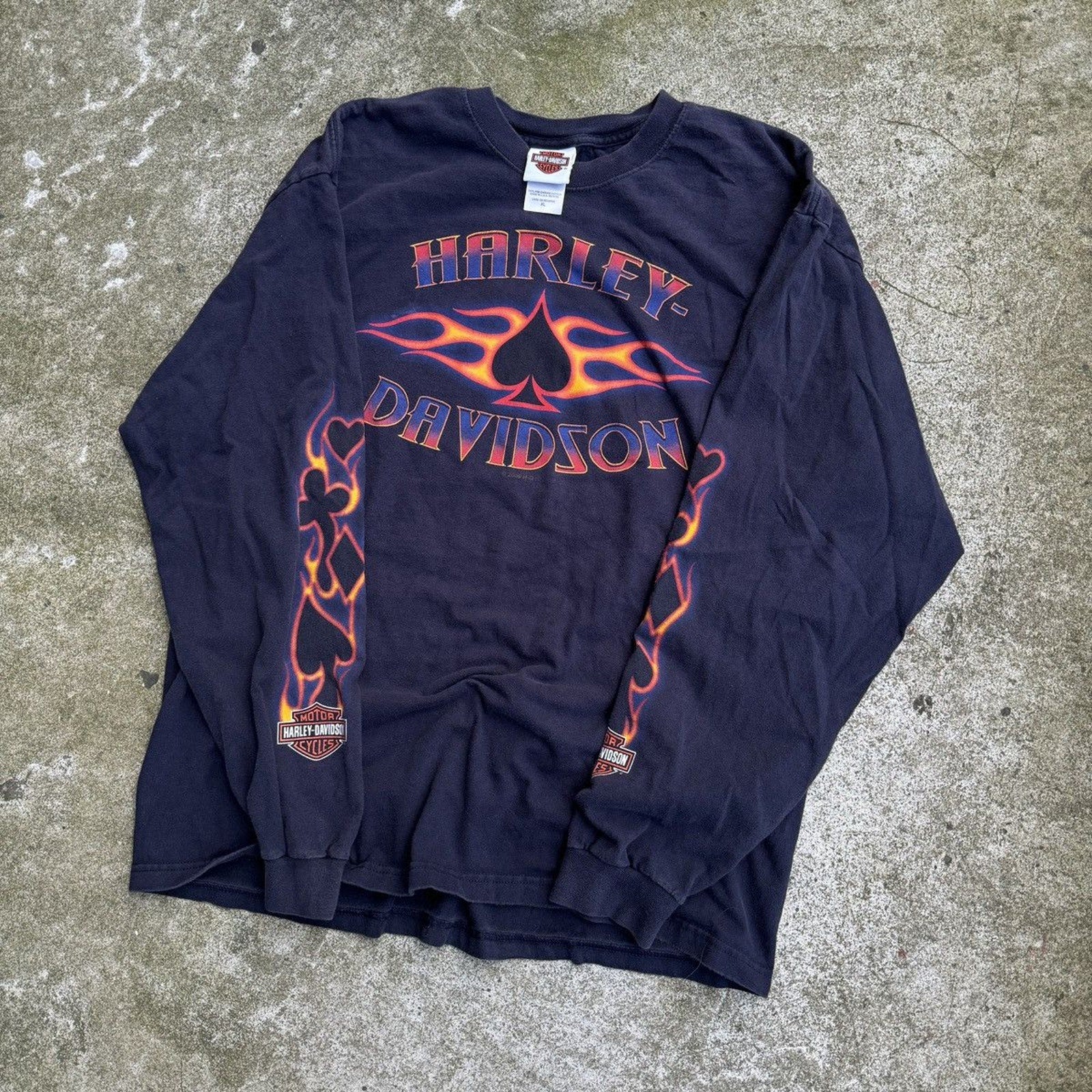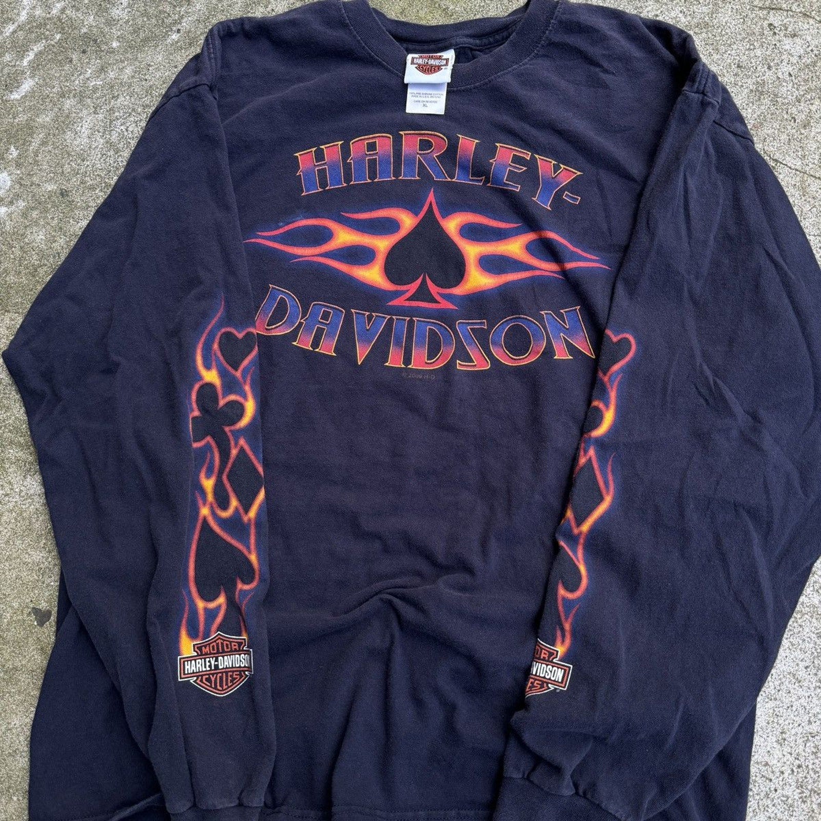 2000S HARLEY DAVIDSON ACE OF SPADES FLAME LONGSLEEVE TEE