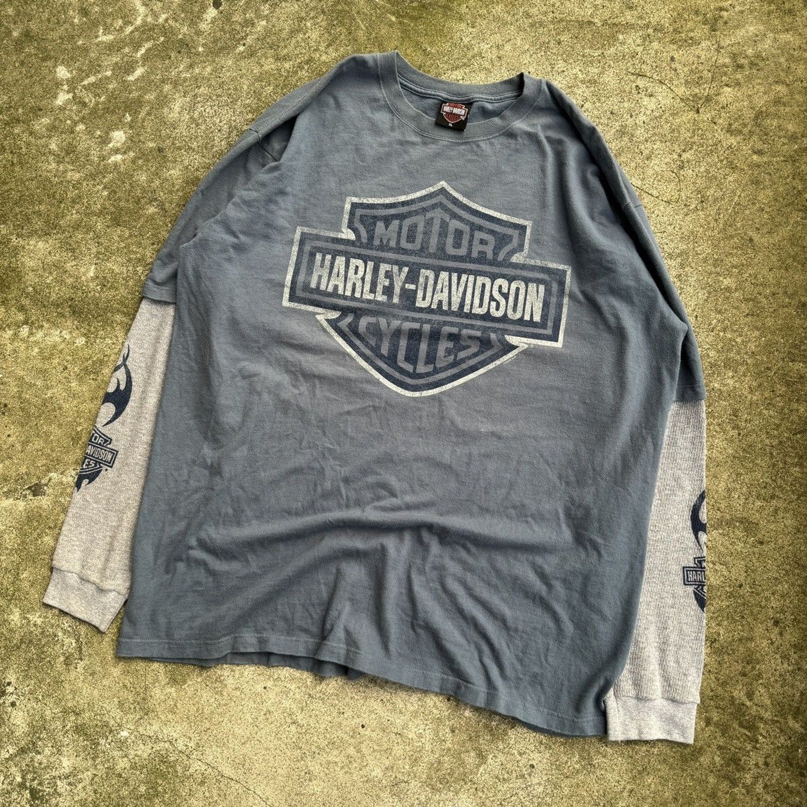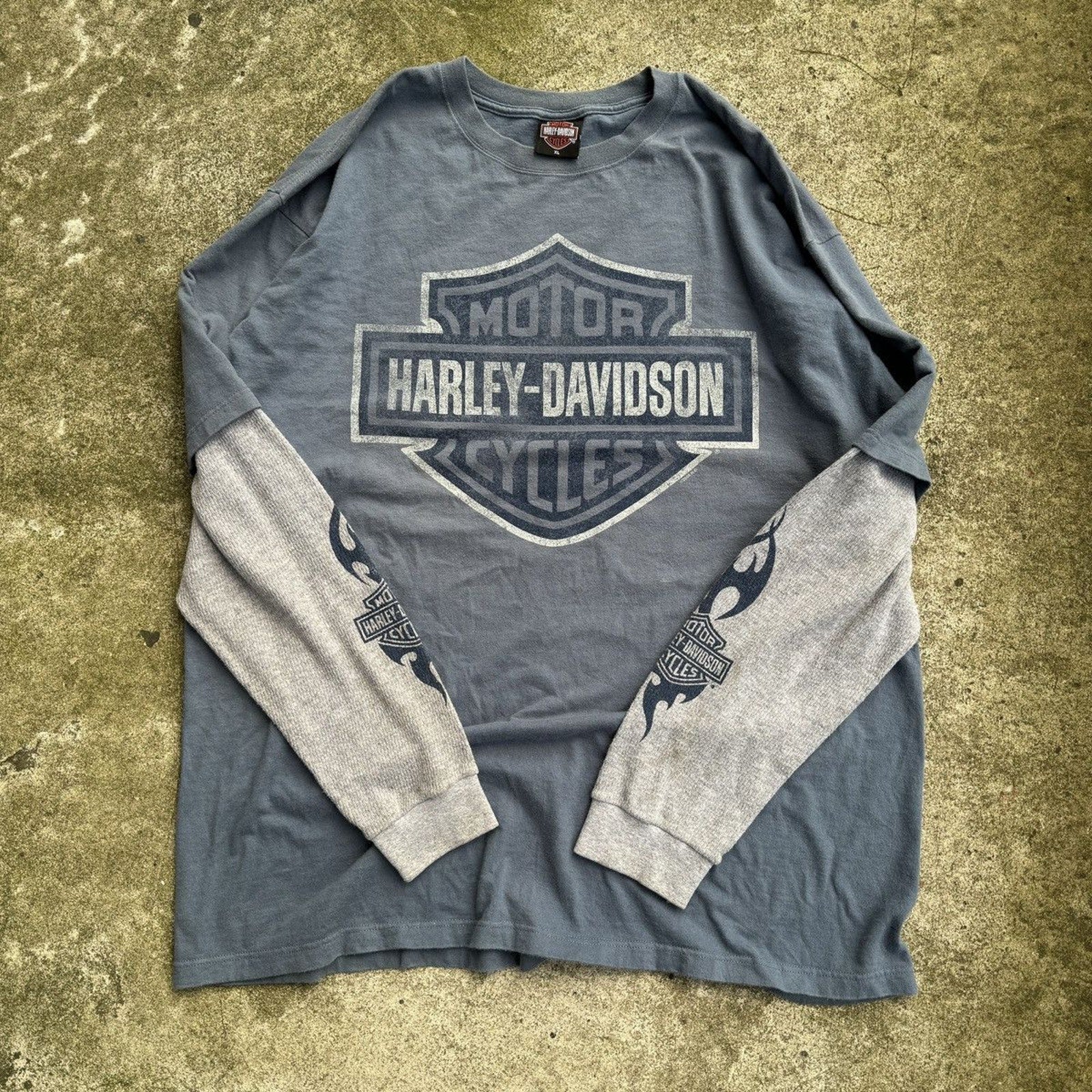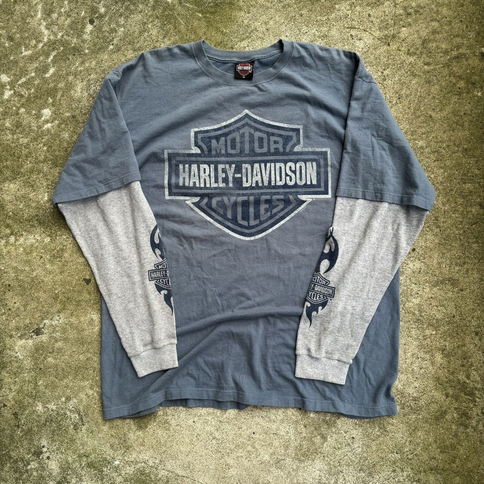 2000s Harley Davidson Blue Flame Thermal Longsleeve