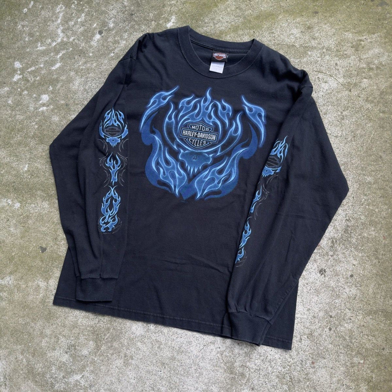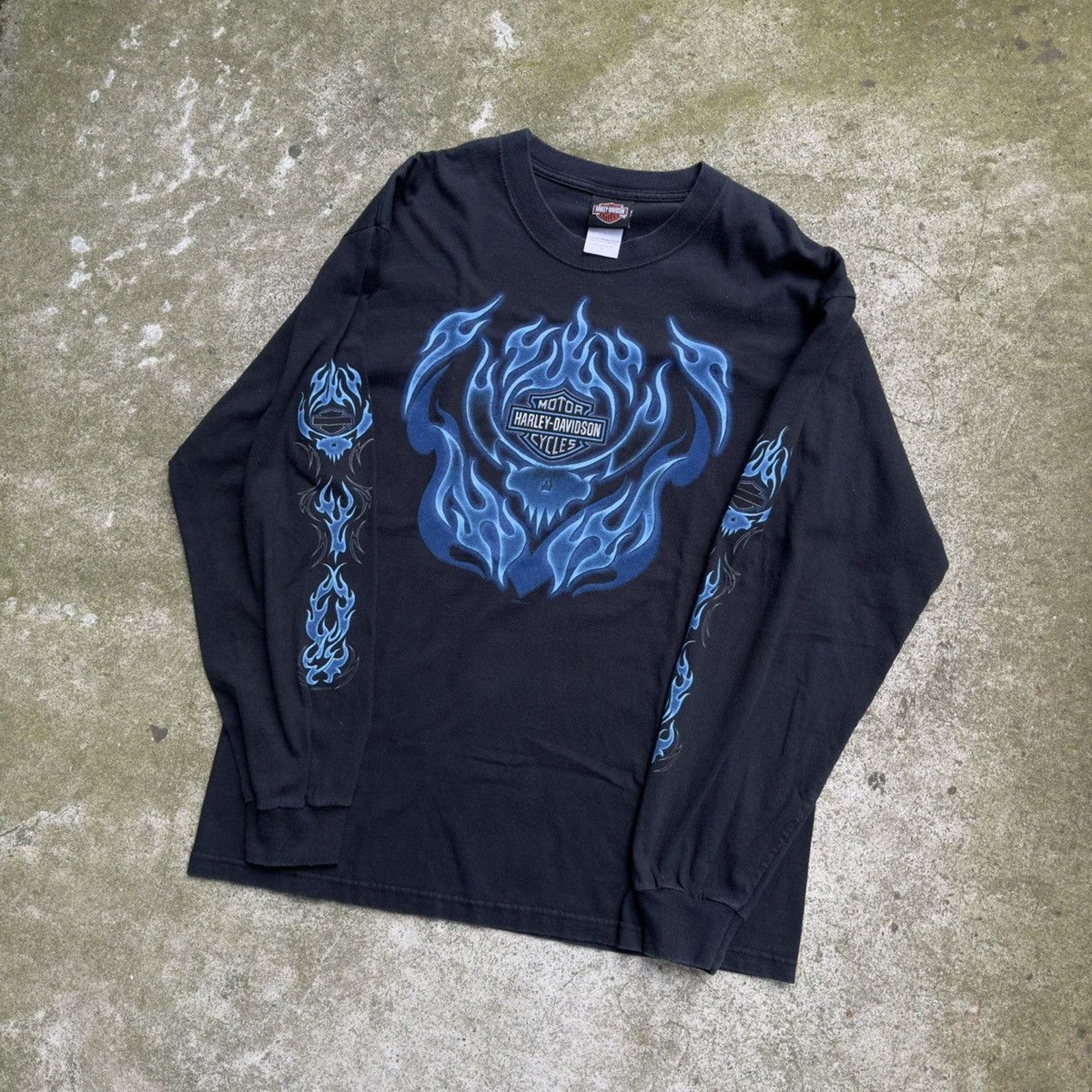 2000S HARLEY DAVIDSON BLUE SKULL FLAME LONGSLEEVE TEE