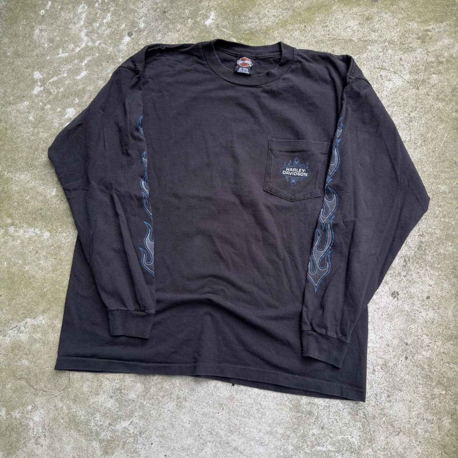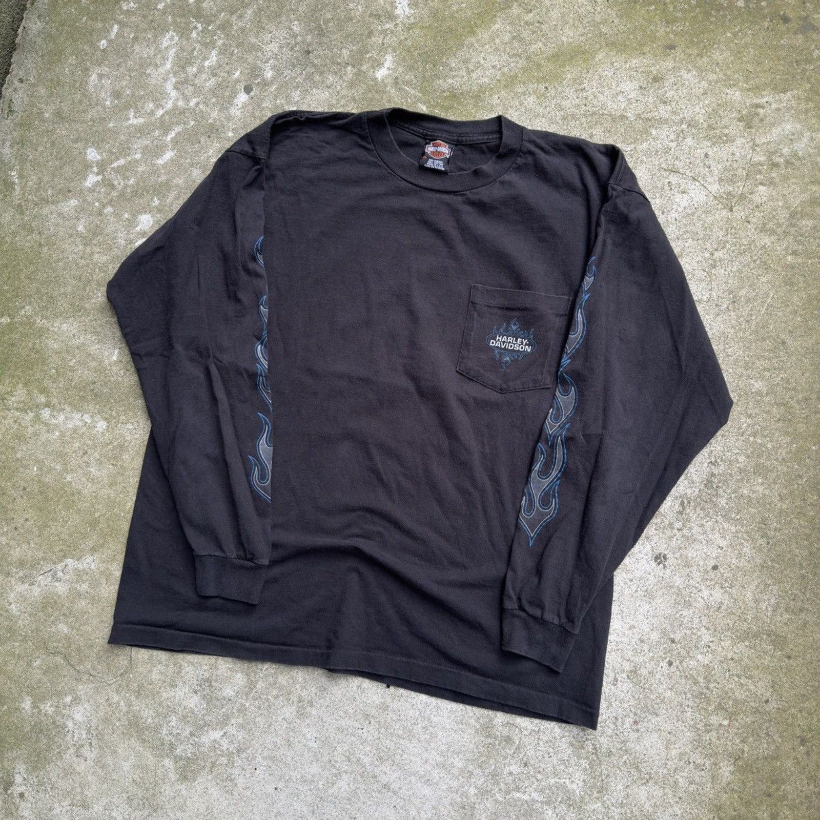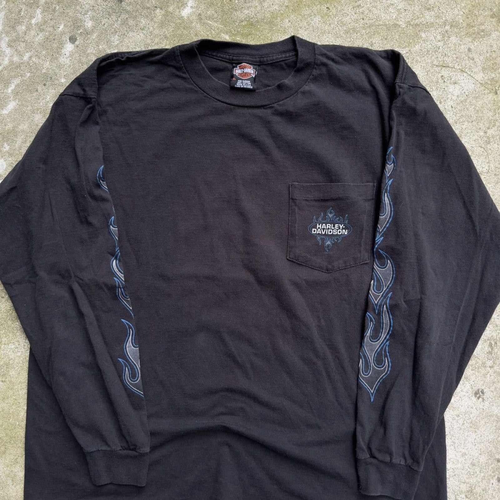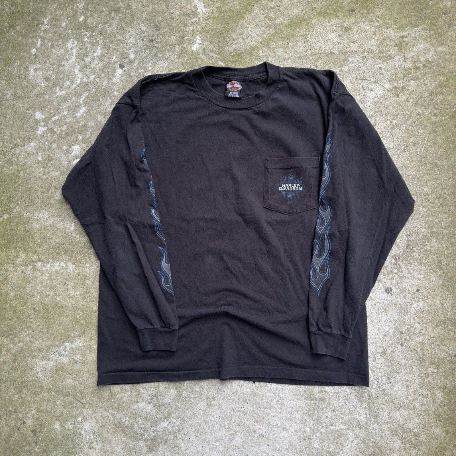 2000s Harley Davidson Faded Blue Flame Pocket Longsleeve