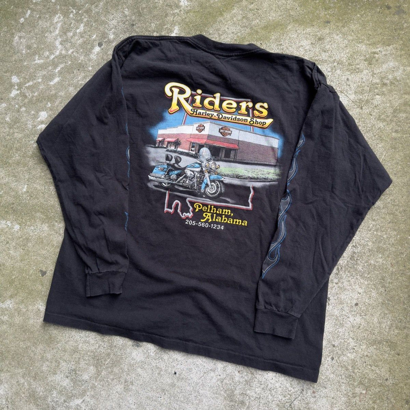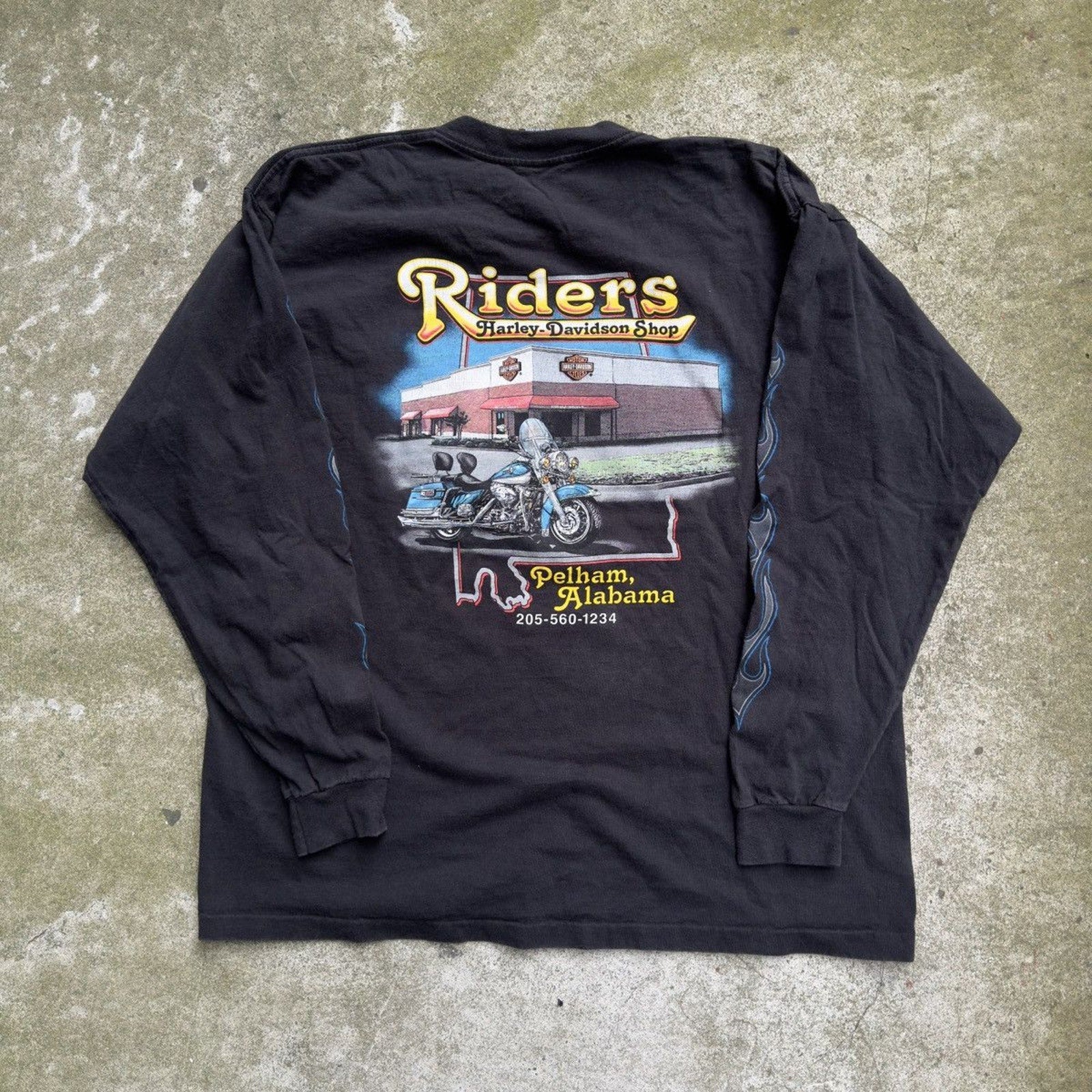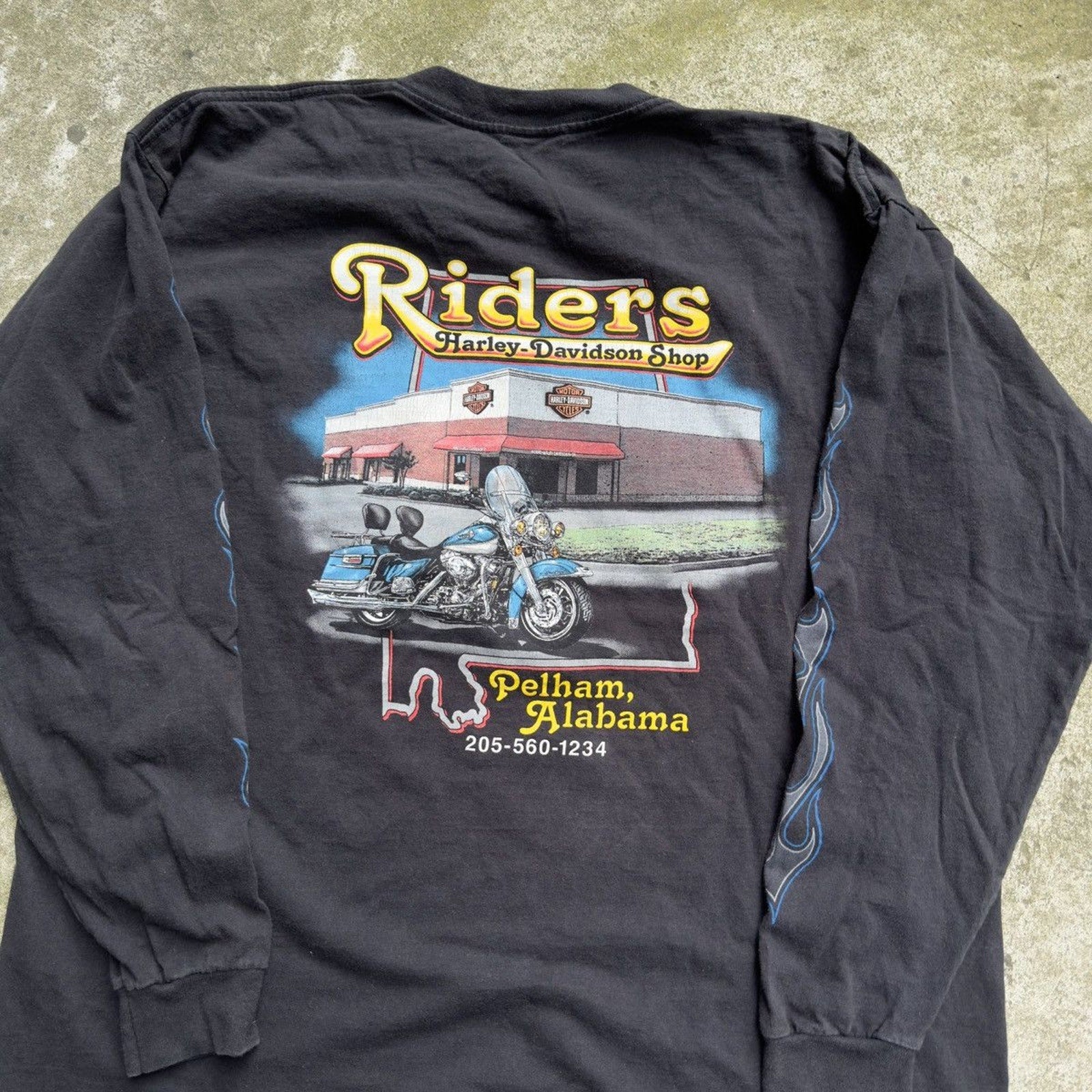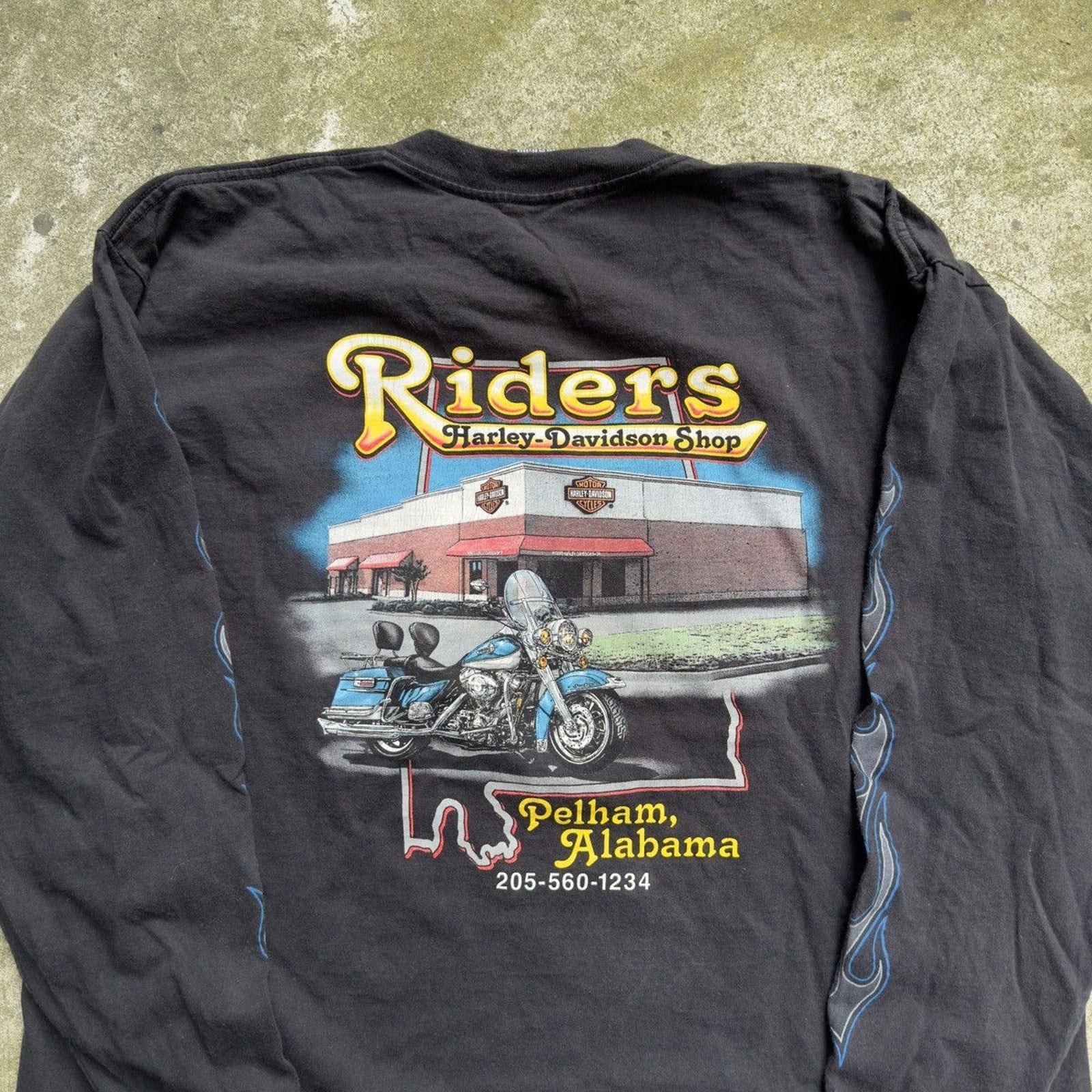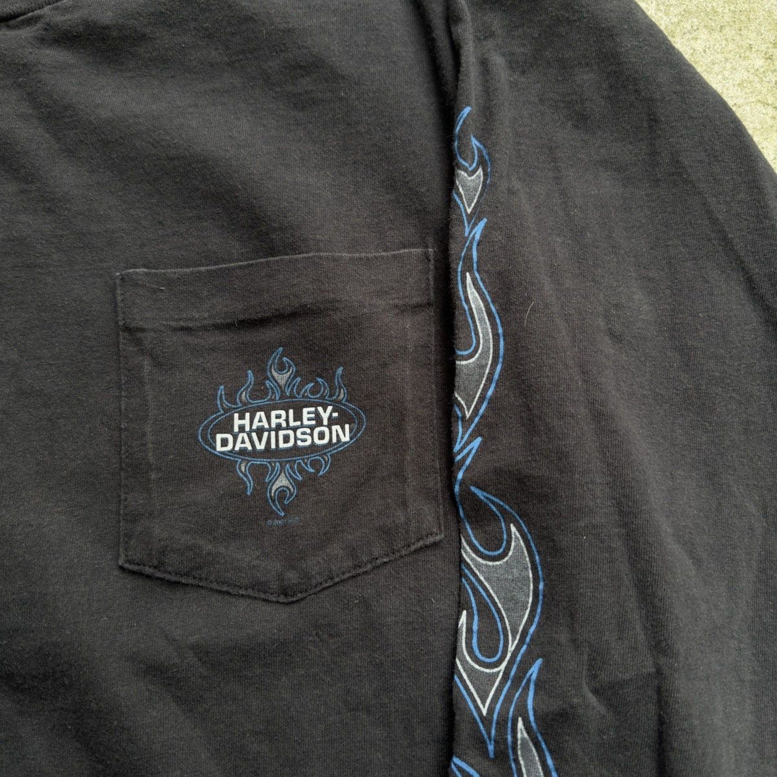 2000s Harley Davidson Faded Blue Flame Pocket Longsleeve