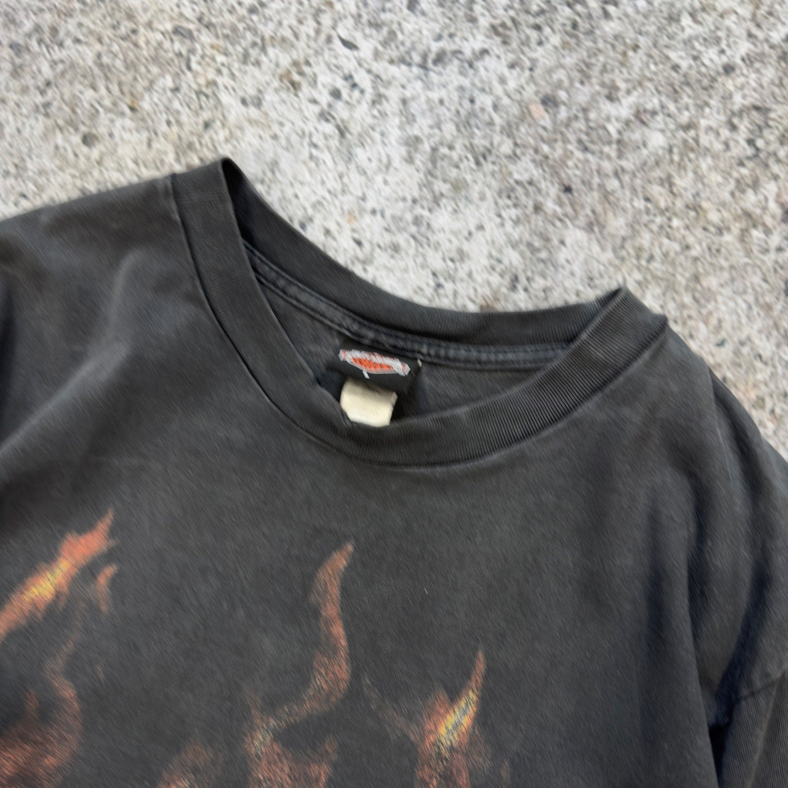 Please be conscious that all sales are final & orders cannot be changed or cancelled once they are placed. Refunds, returns, or exchanges of any sort are not currently accepted. Descriptive pictures and detailed measurements are added on each product to ensure best fit and show true condition. It is to be noted that majority of the items sold by GARMENT TRAFFICKER are second-hand clothing items that may show unique characteristics of wear and usage (paint, distressing, fading, deterioration, discoloration, dirt, stains, markings, etc.). These should not be looked at as imperfections yet should be accepted by the wearer.