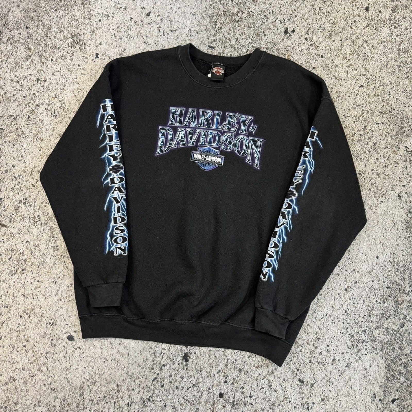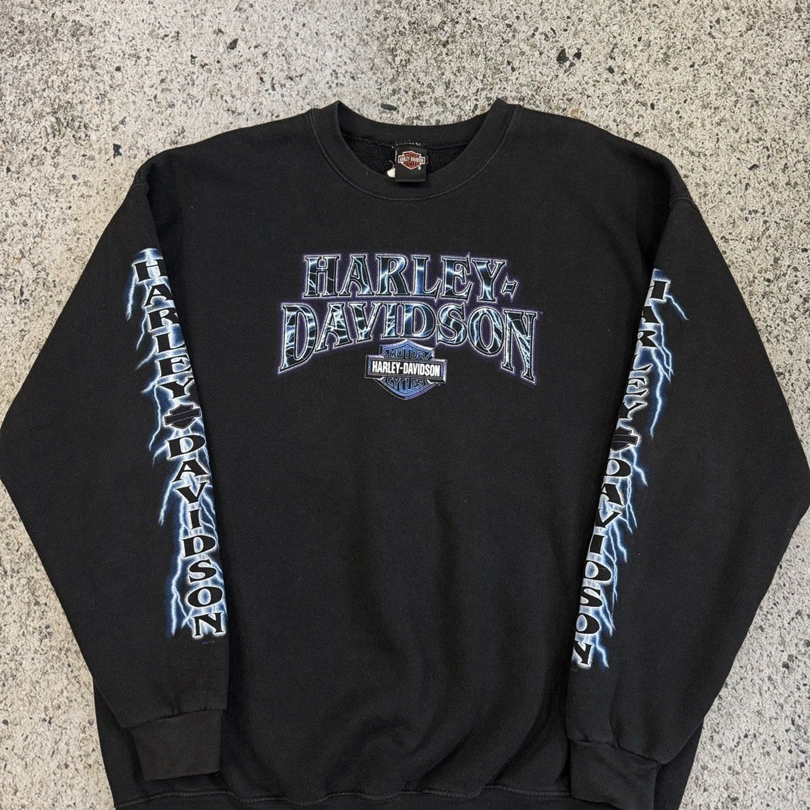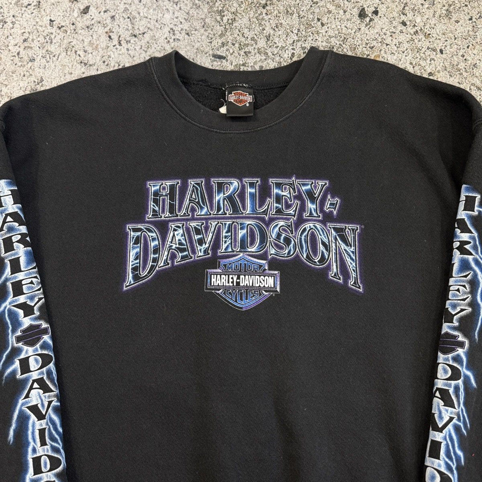 2000s Harley Davidson Faded Lightning Logo Sweatshirt