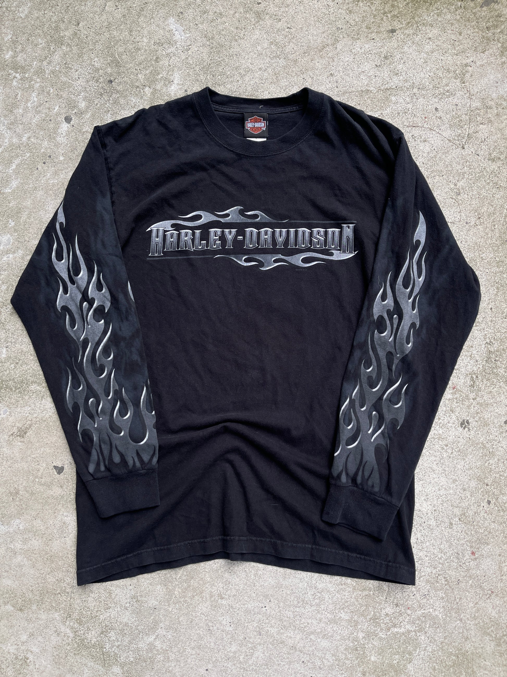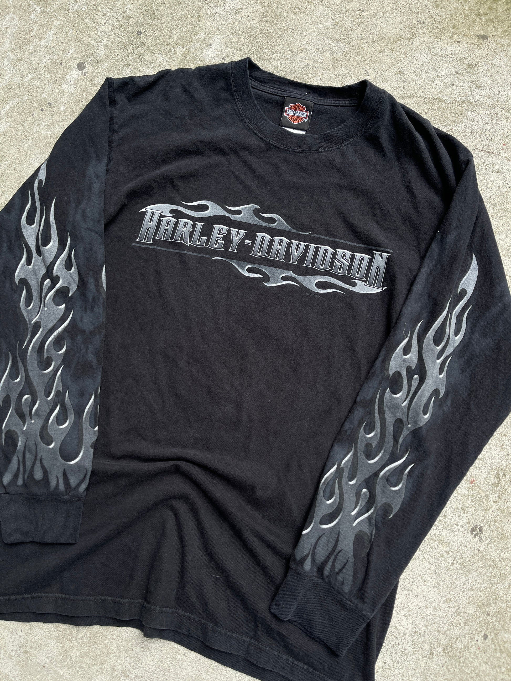 2000S HARLEY DAVIDSON SILVER FLAME LONGSLEEVE TEE