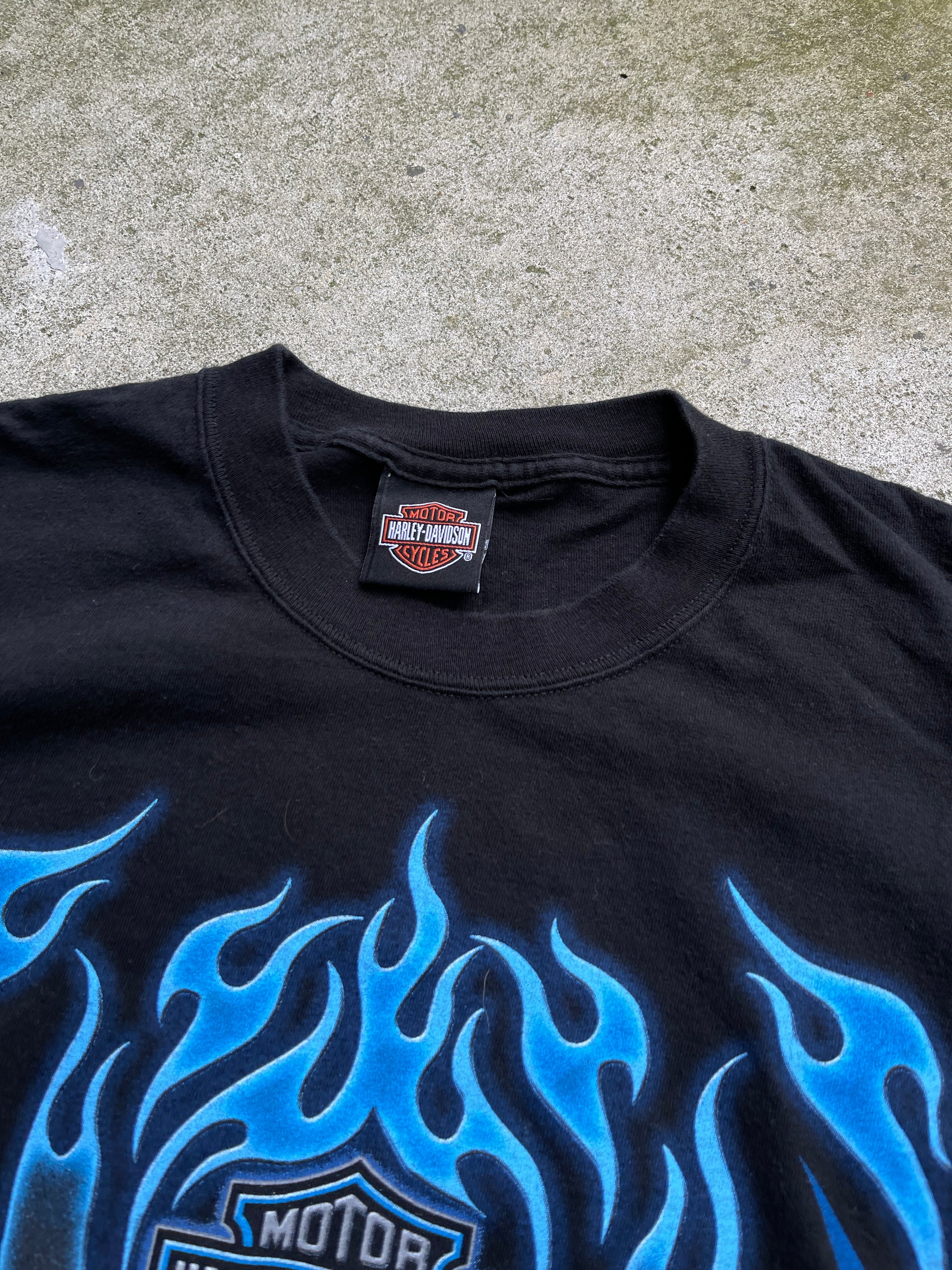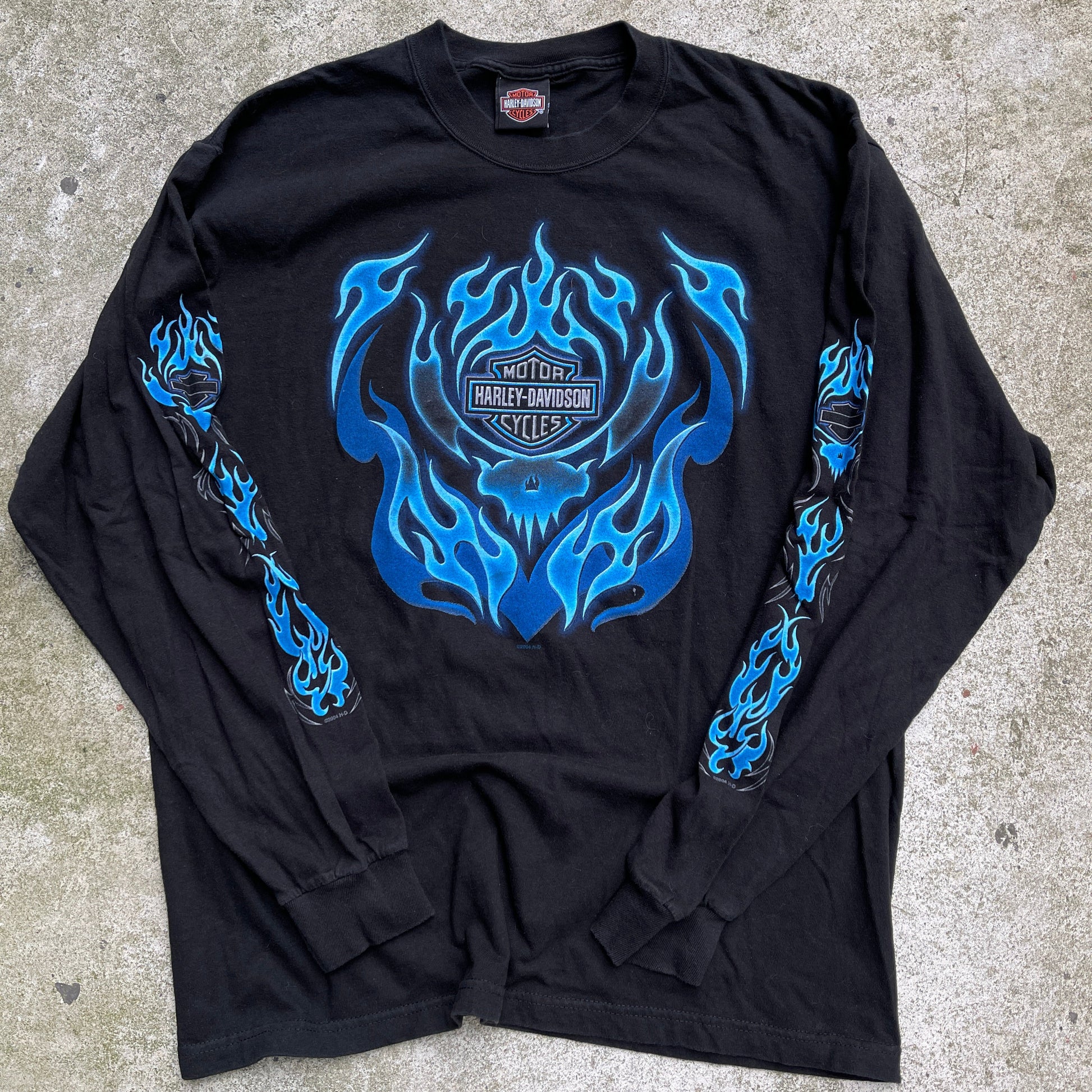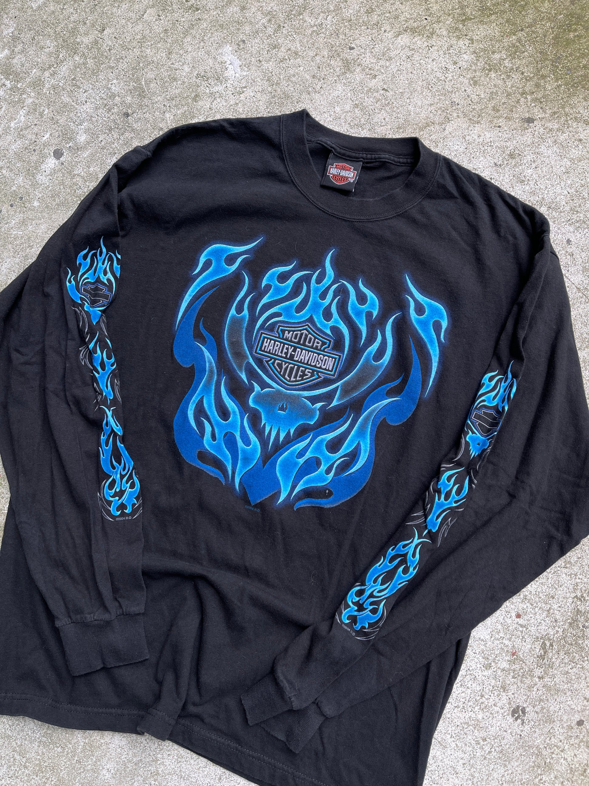 2000s Harley Davidson Blue Skull Flame Longsleeve