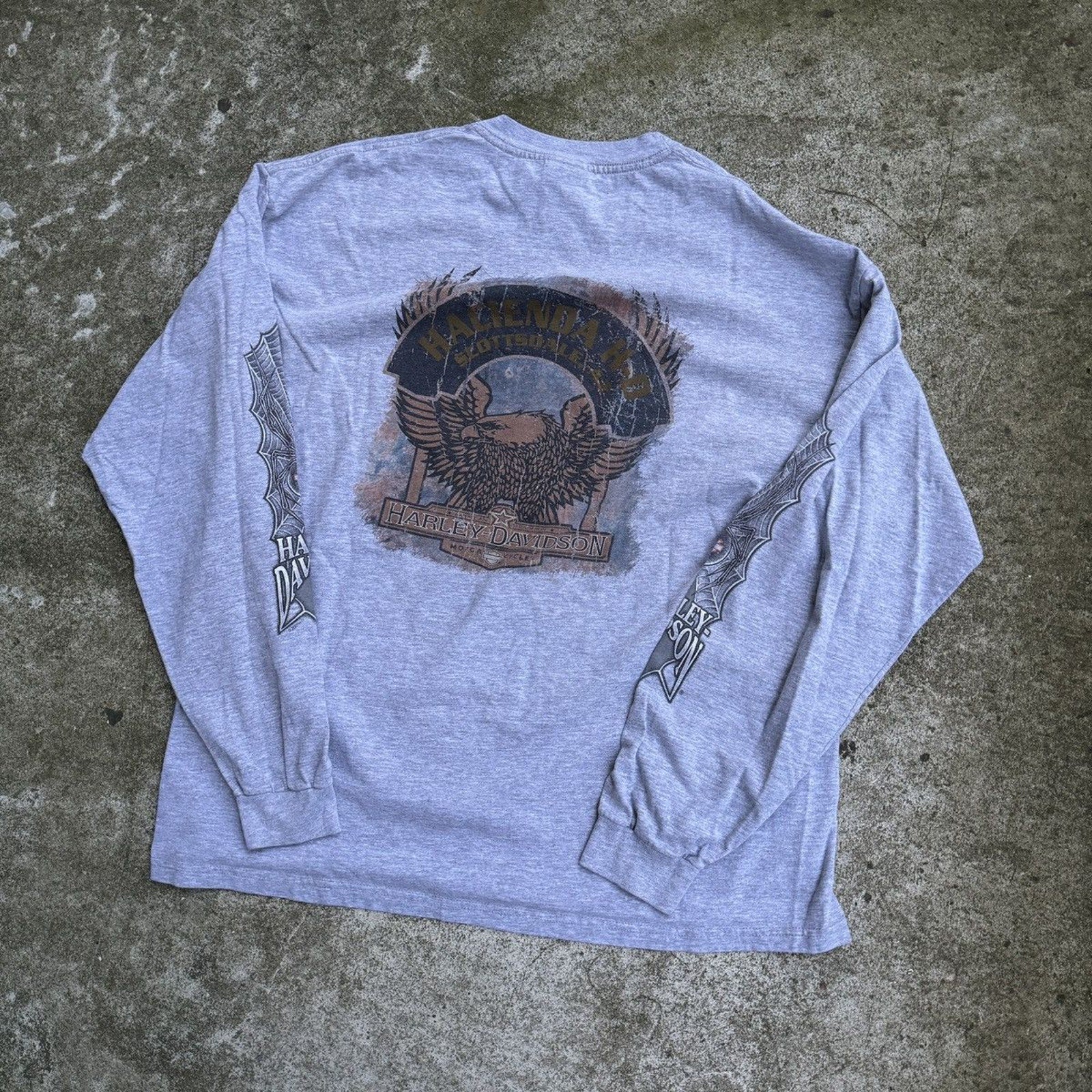 Our sizing is determined by the measurements taken by hand, rather than the tagged size on the garment. Many items, especially with vintage clothing, generally measures different than the tagged size on the article itself. A standard size large tee shirt from decades ago generally fits different than a standard size large in modern sizing, due to changes in manufacturing standards, different practices by brand, shrinkage, aging, varying fabrics & materials, etc.