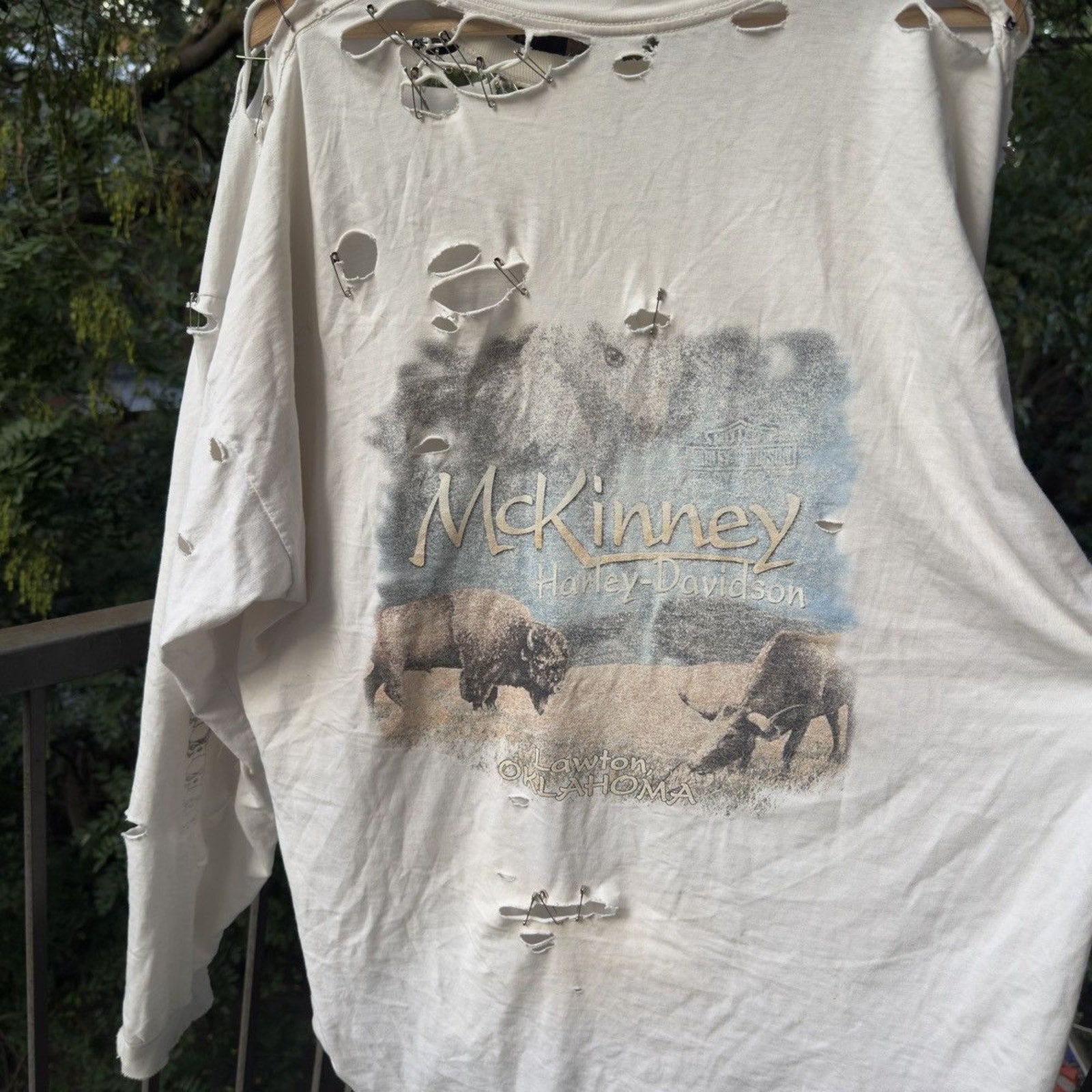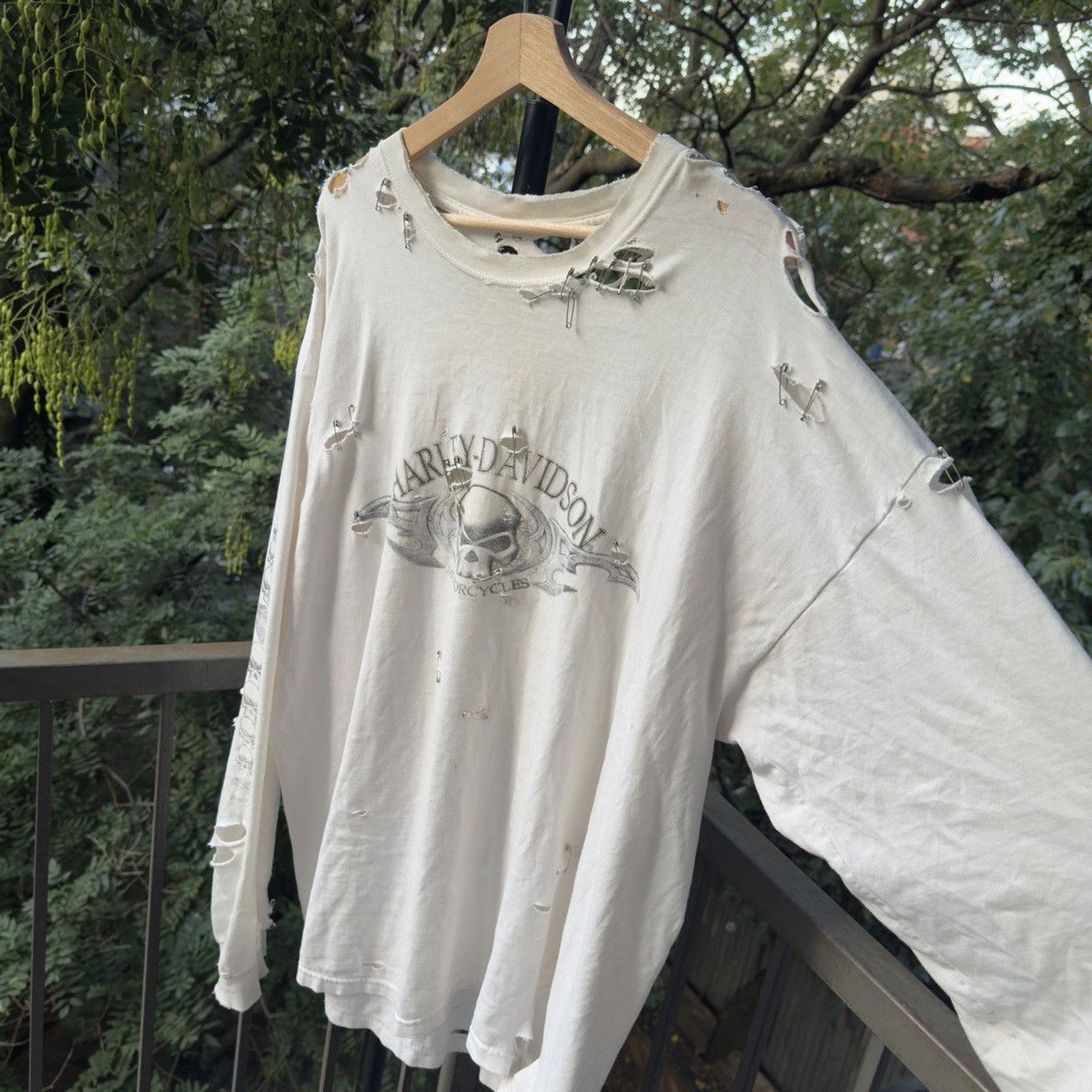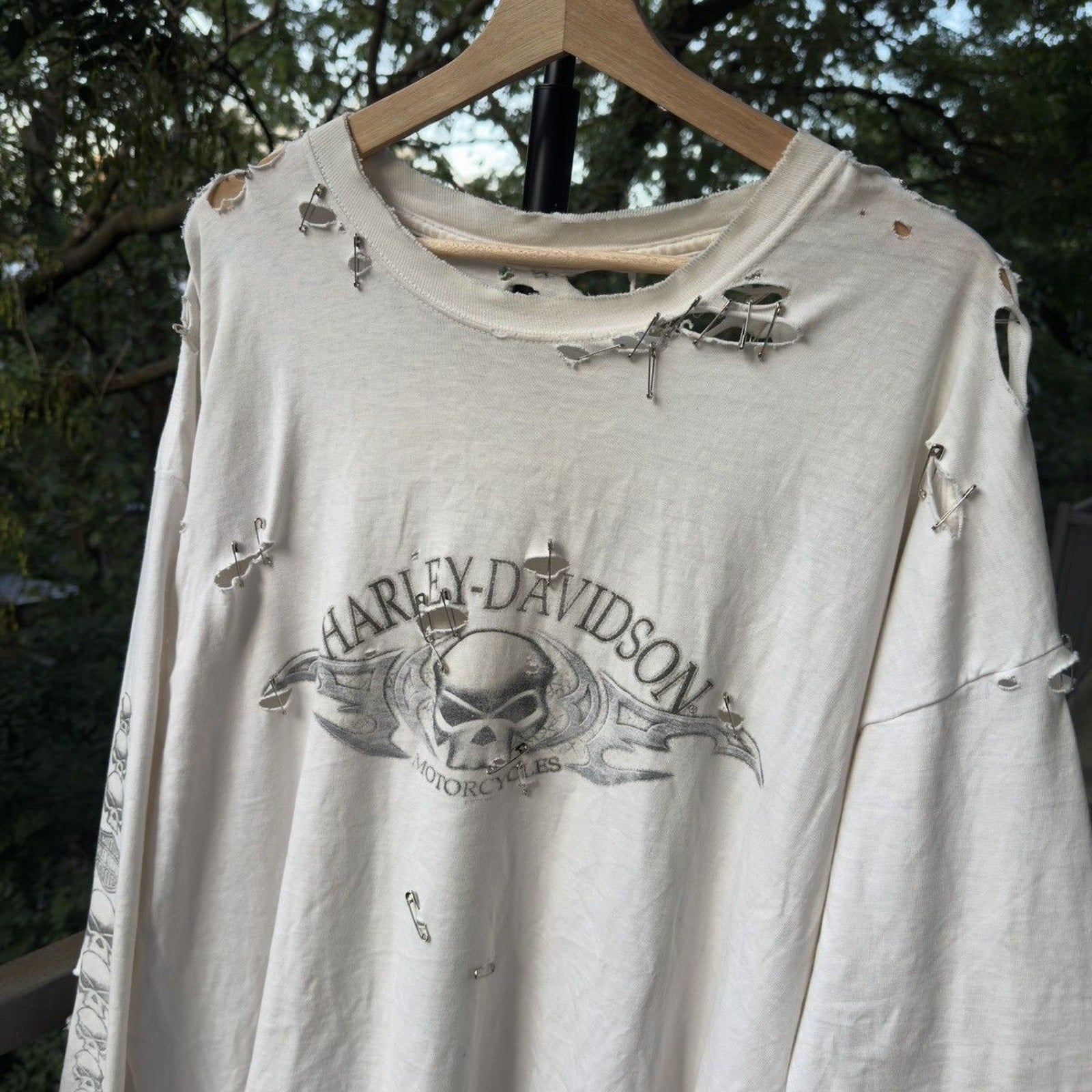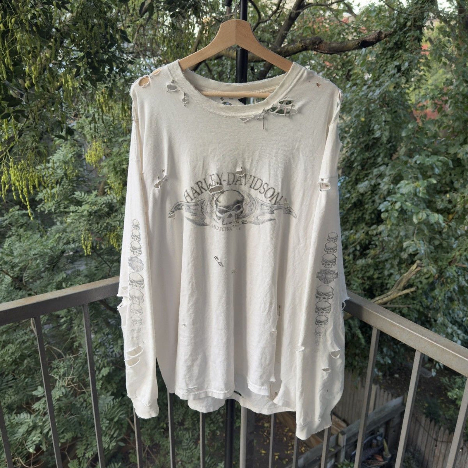 2000s Harley Davidson Thrashed Skull Flame Longsleeve Tee