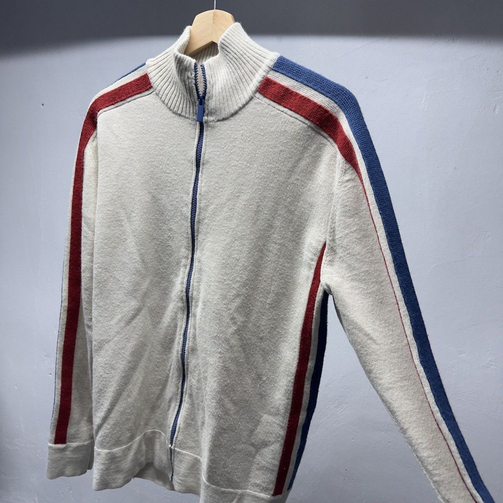 2000s J Crew Acrylic Wool Striped Zip Up Sweater