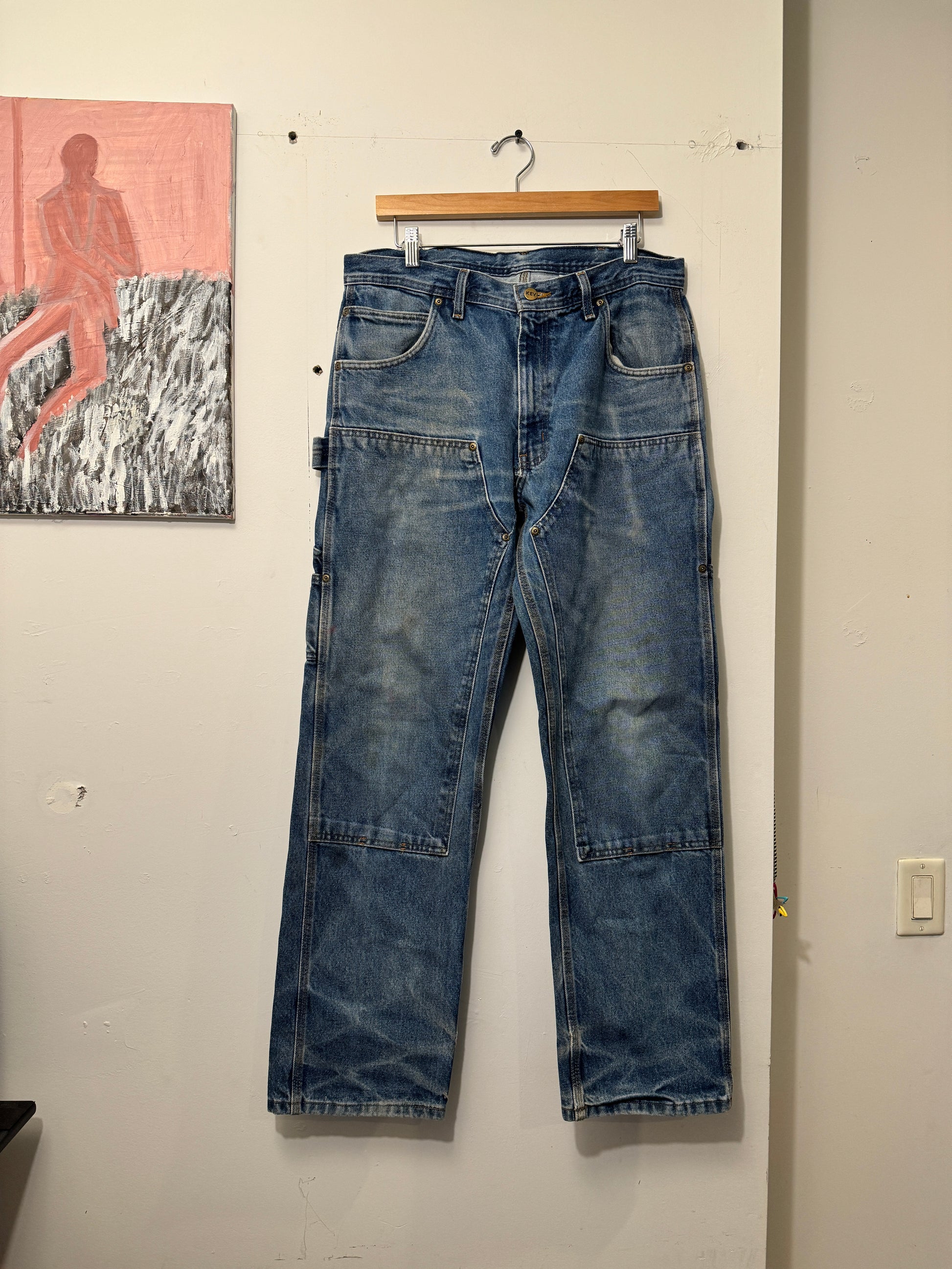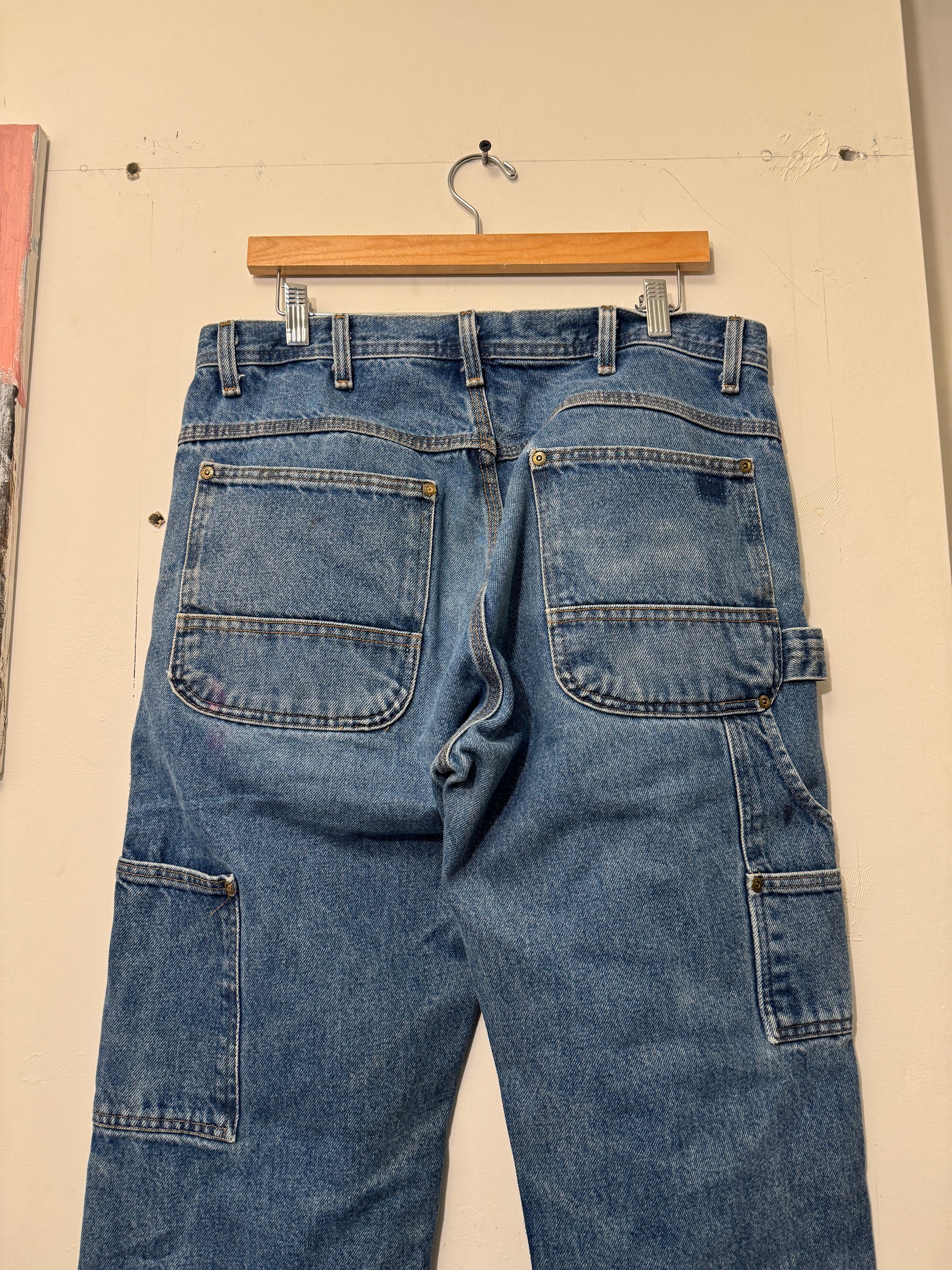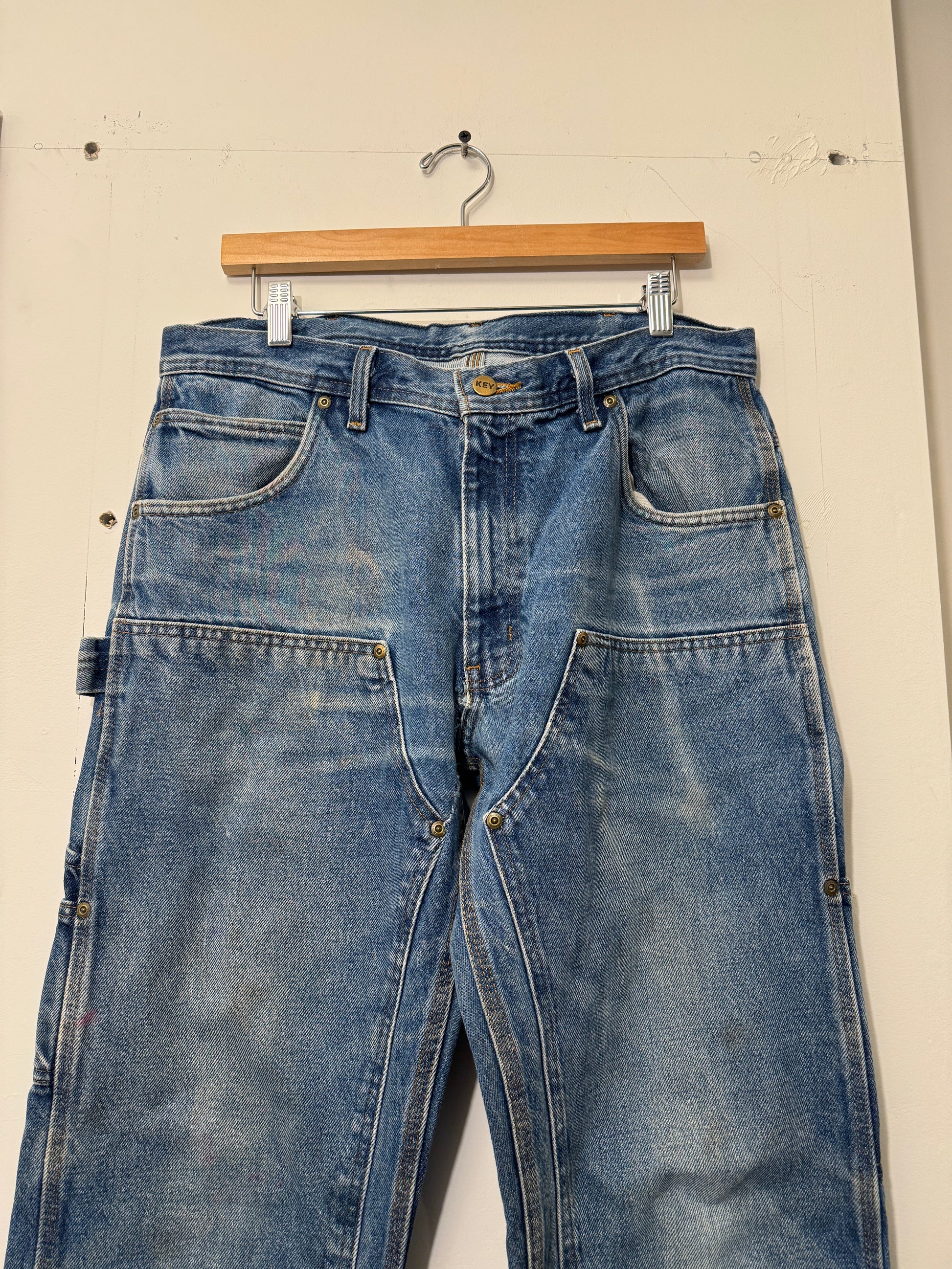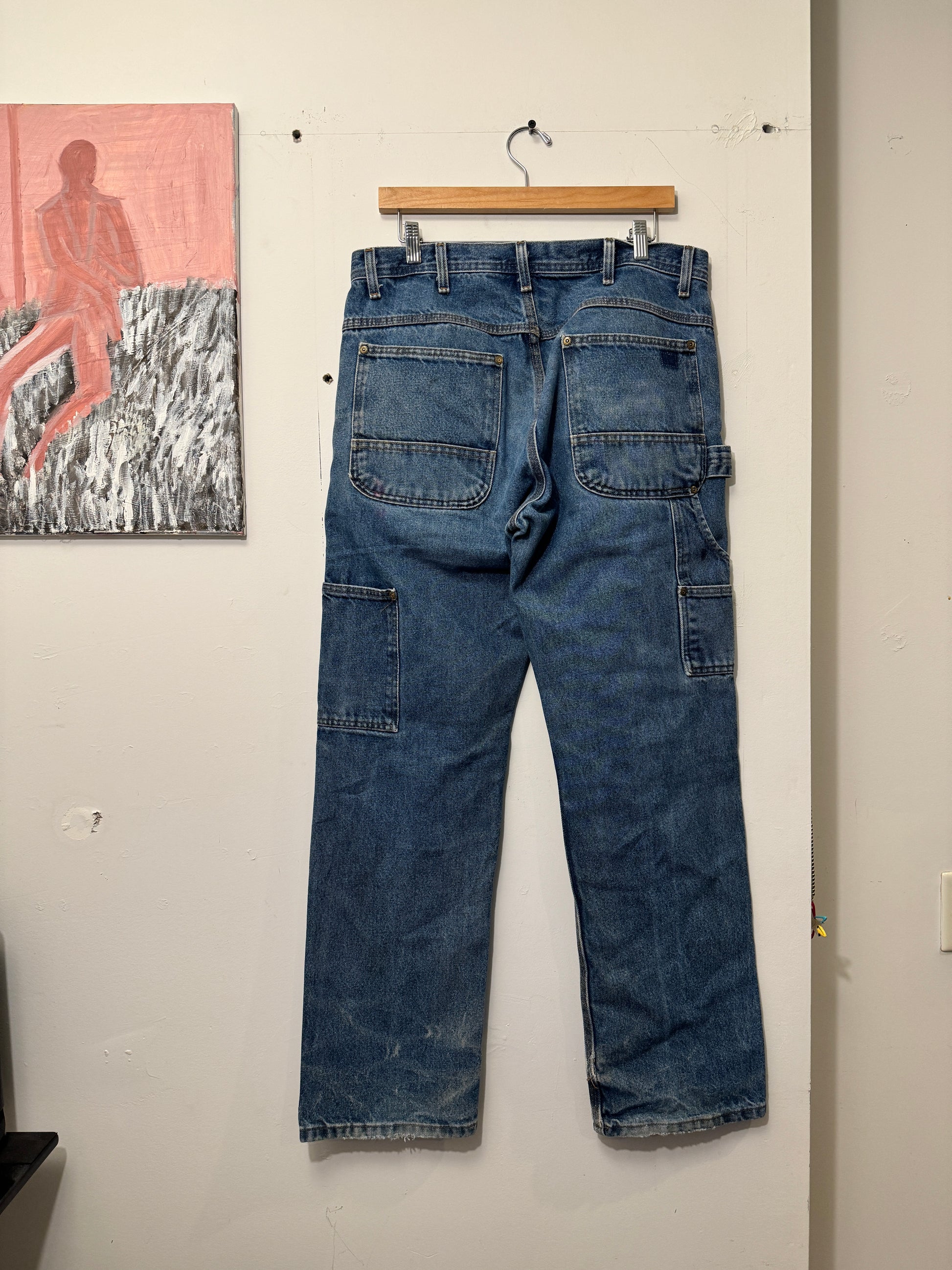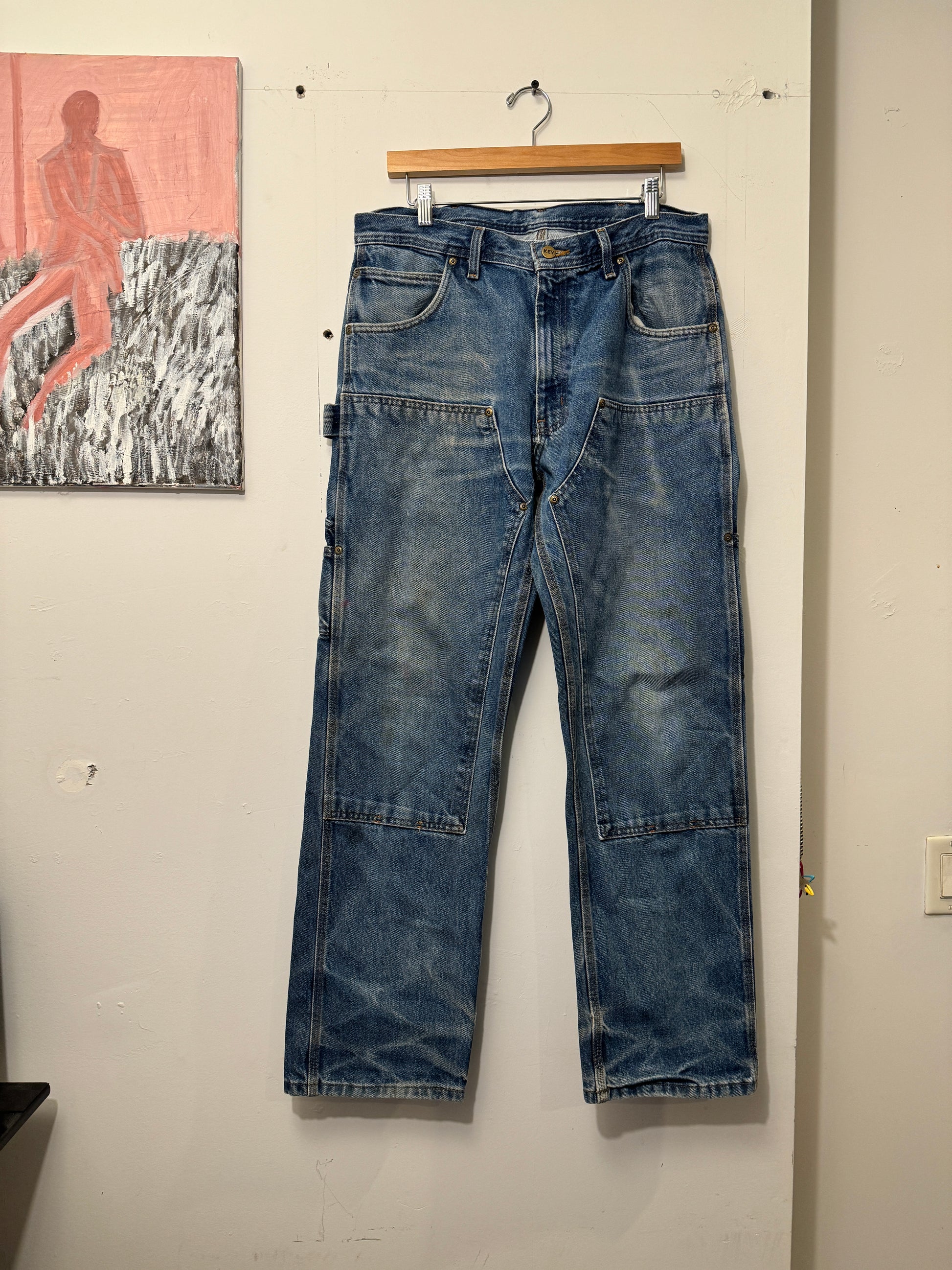 2000S KEY THRASHED DENIM DOUBLE KNEE CARPENTER WORK JEANS