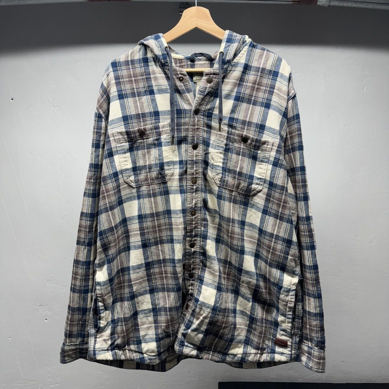 2000s LL Bean Hooded Plaid Flannel Shirt Jacket