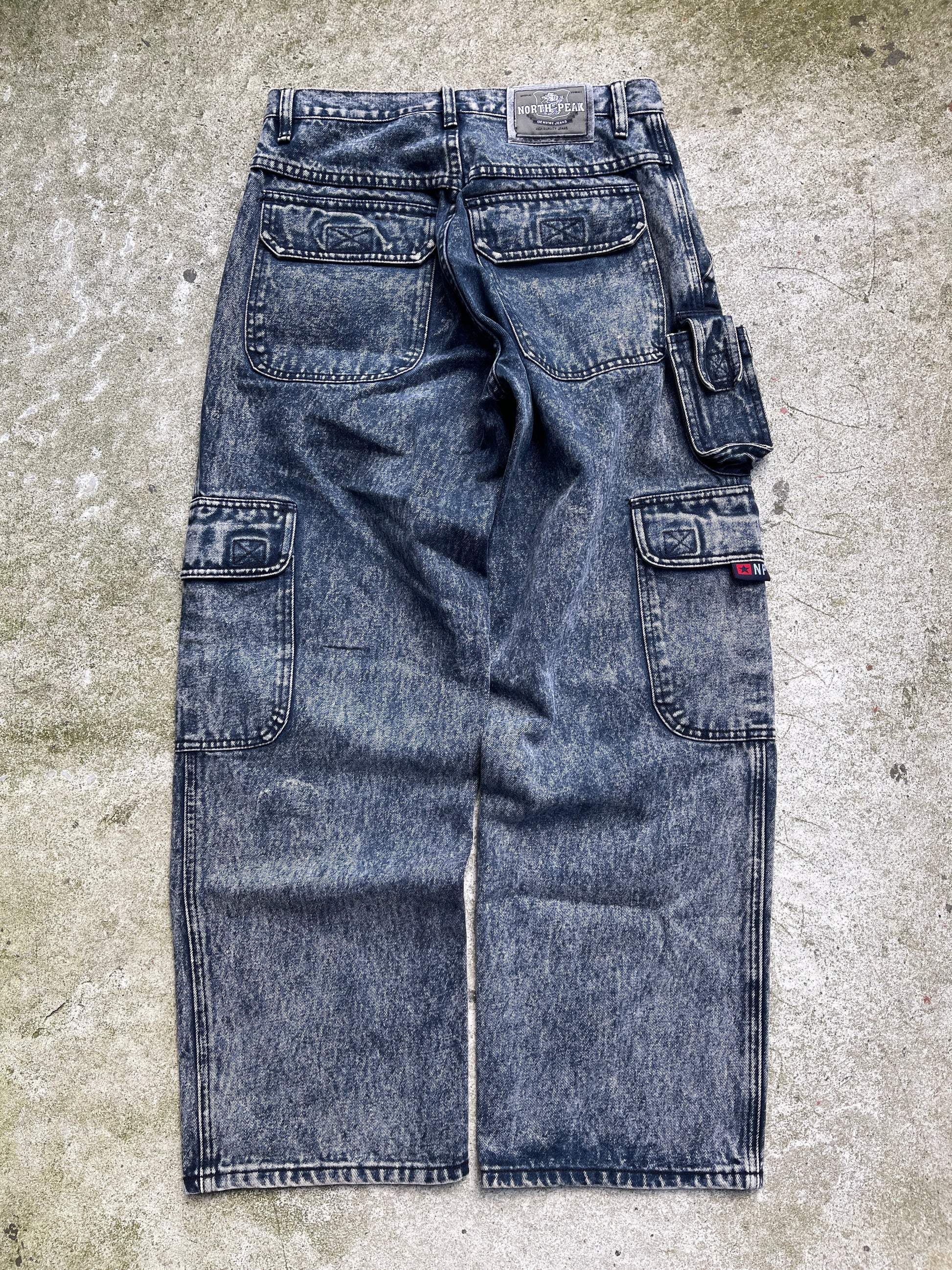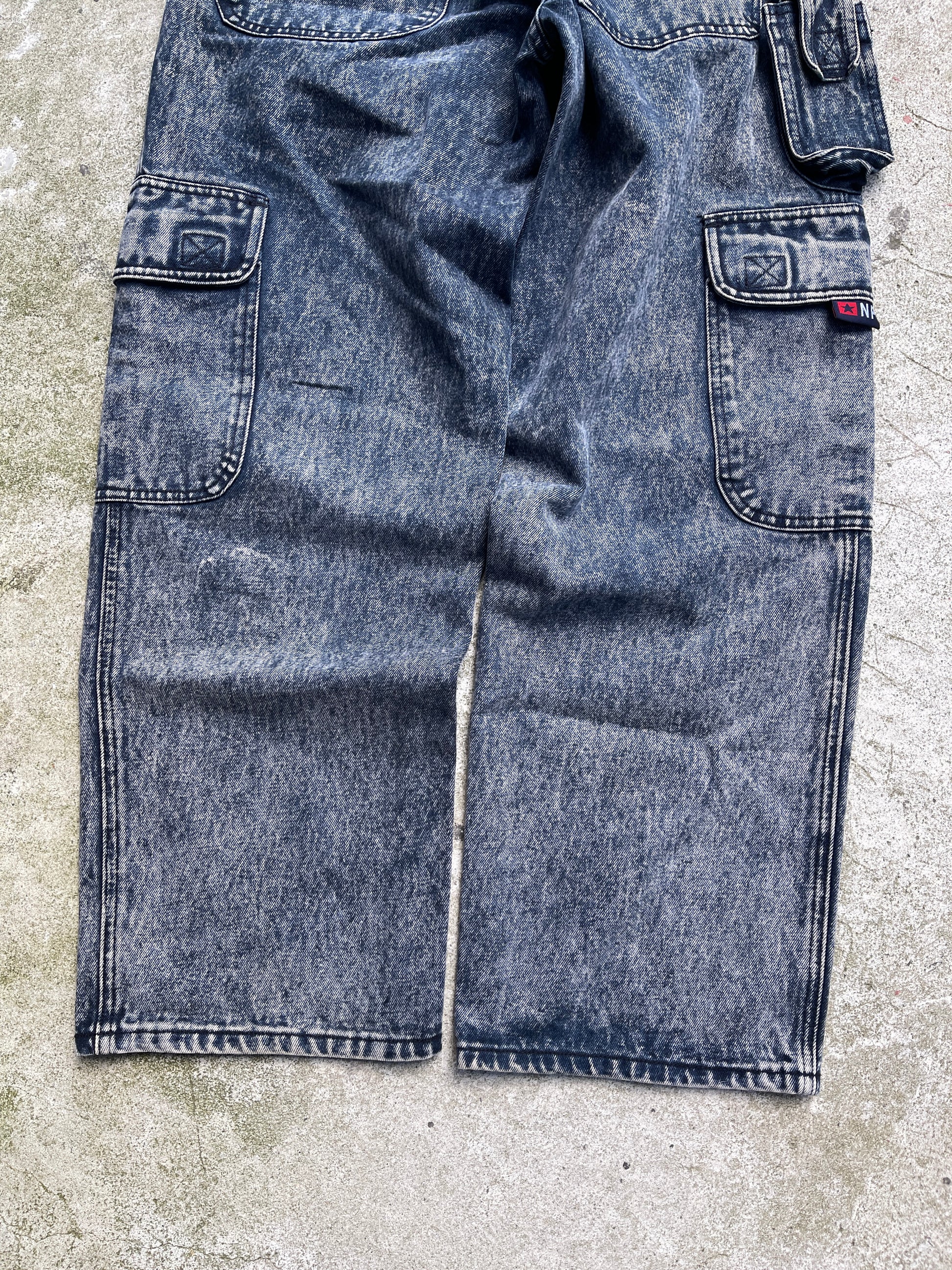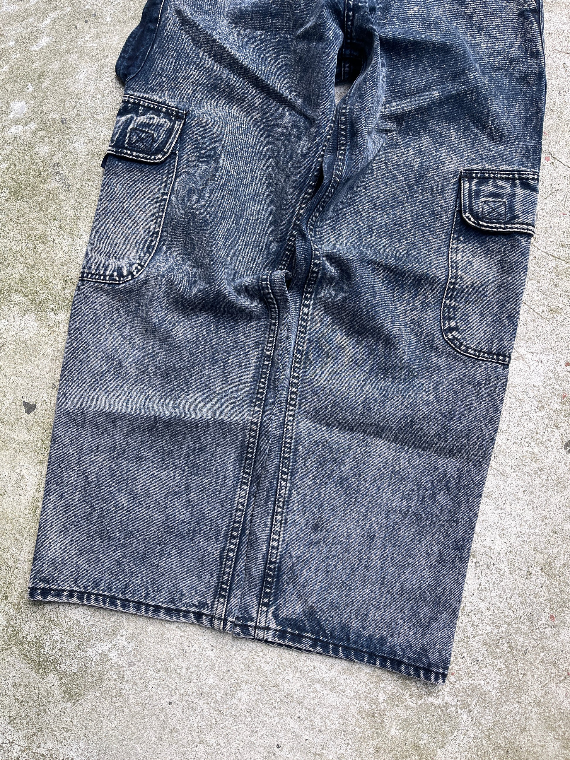 2000s MULTI CARGO POCKET STONE WASHED WIDE LEG DENIM JEANS
