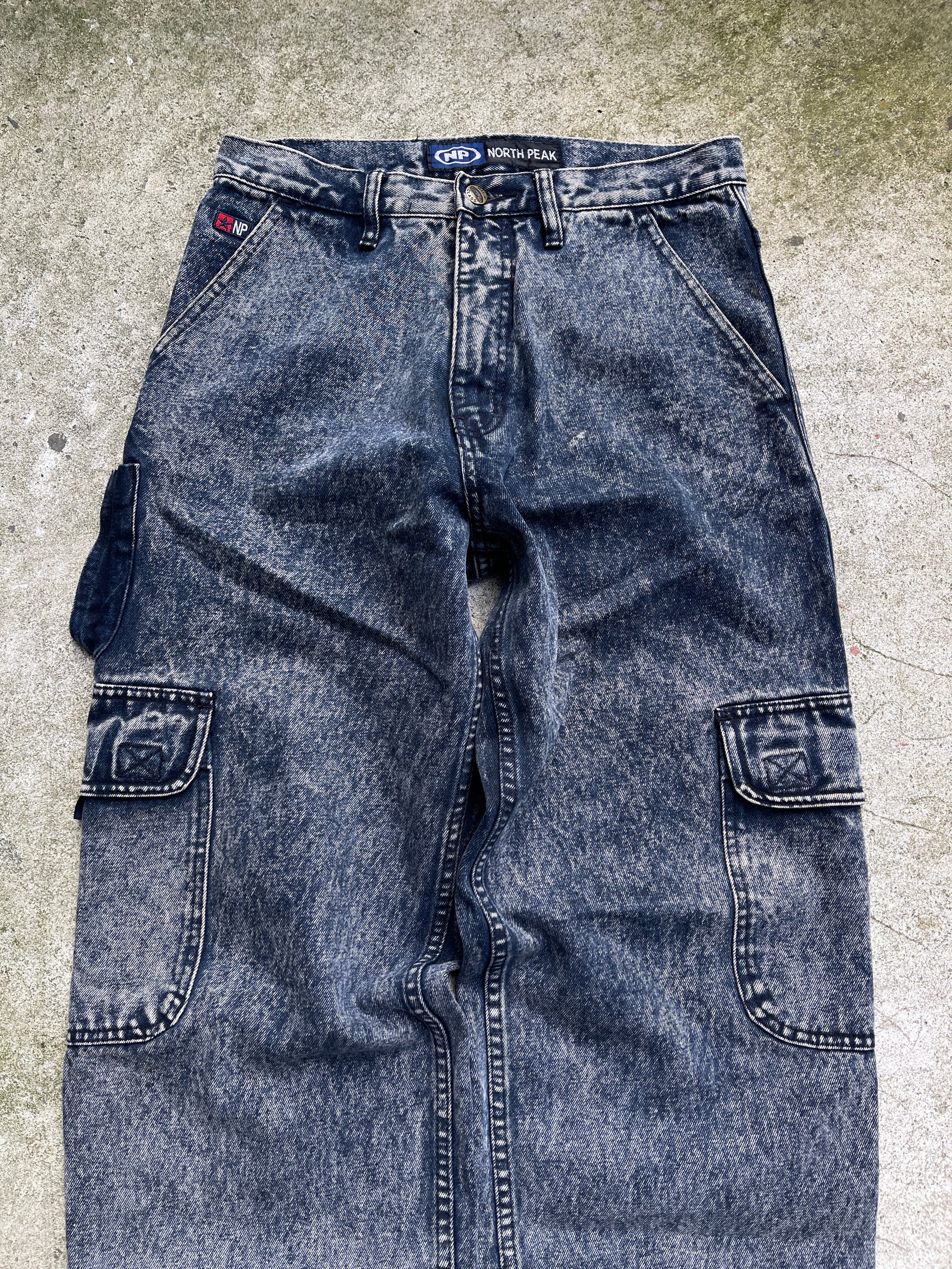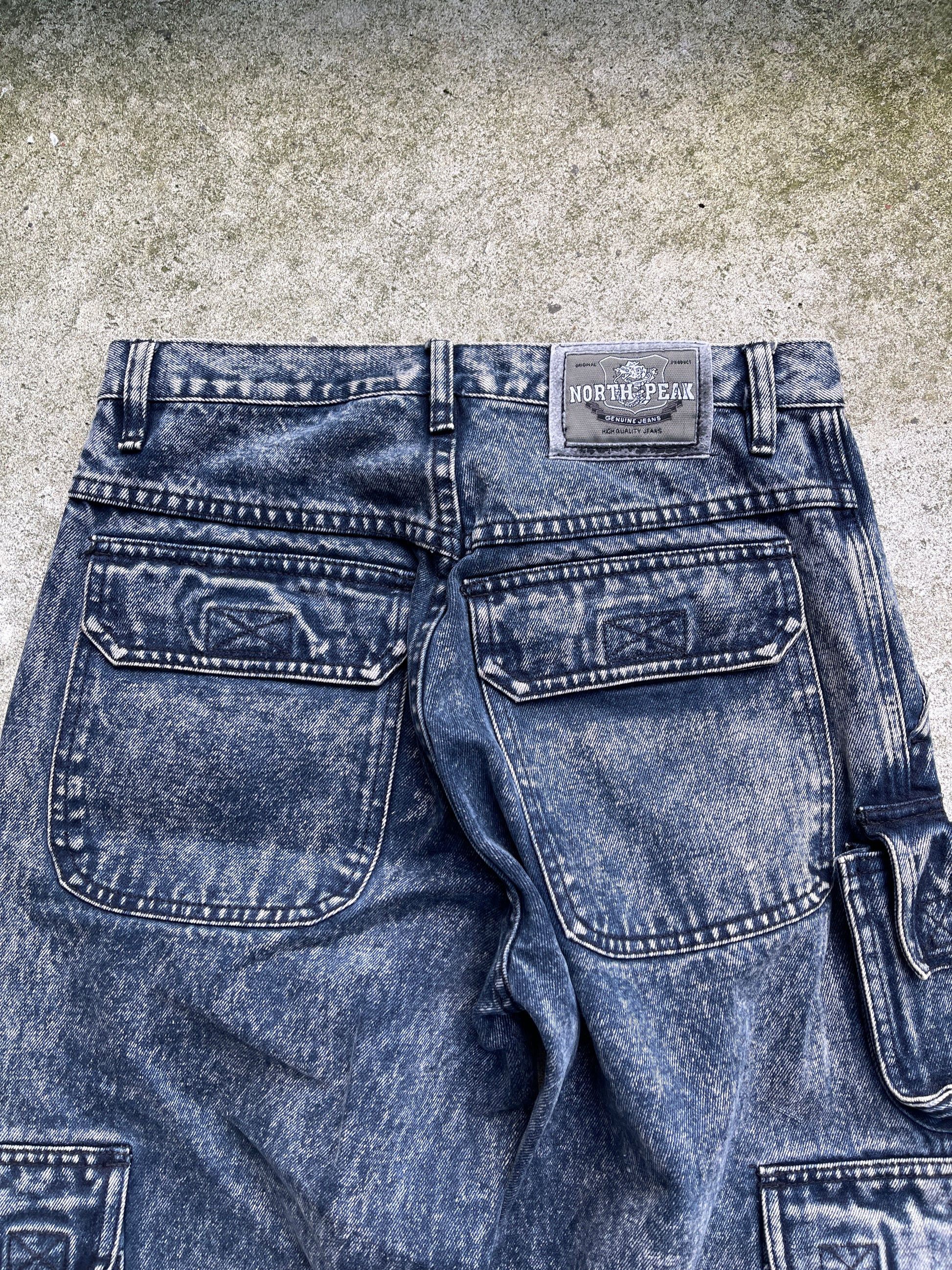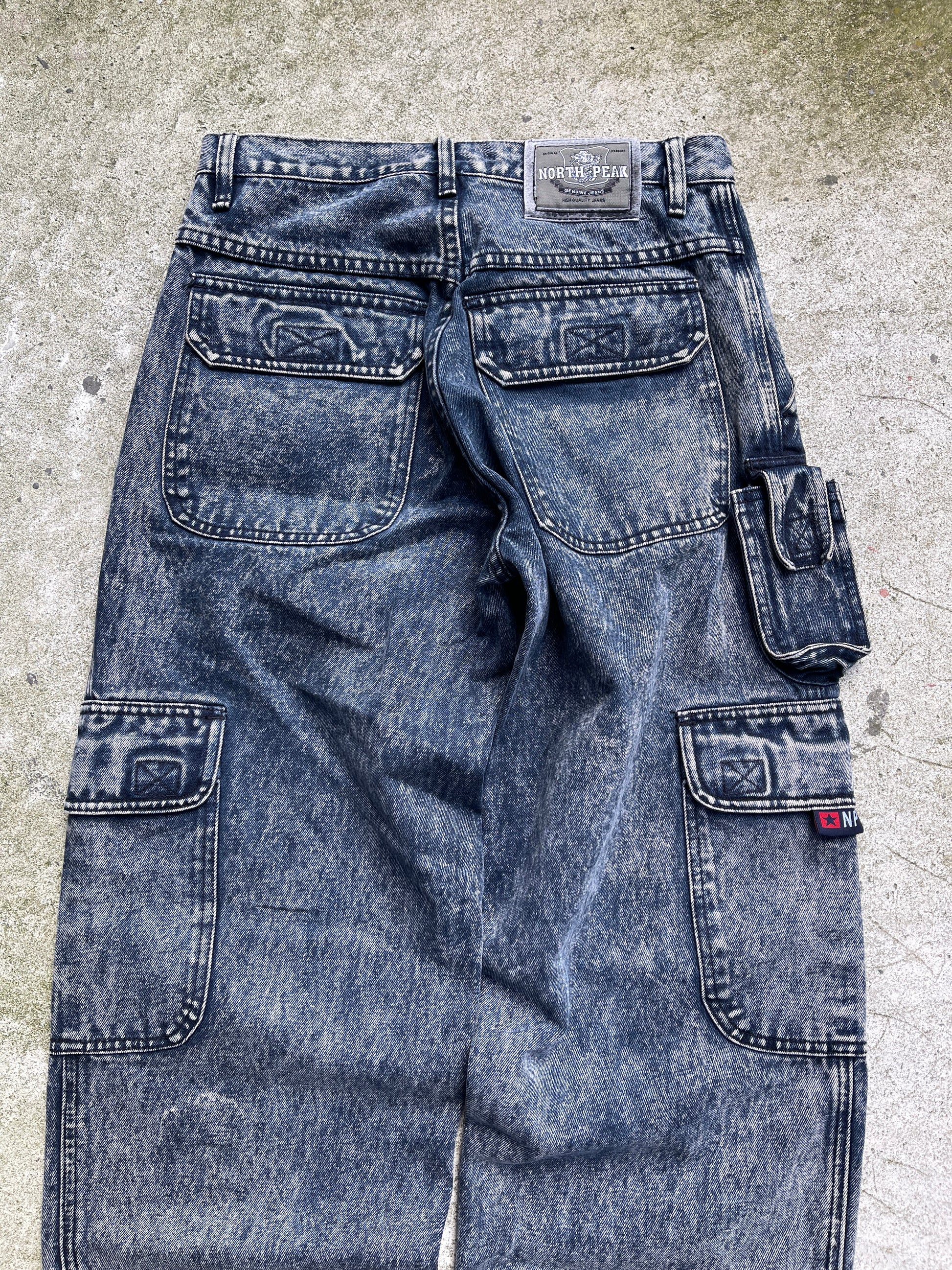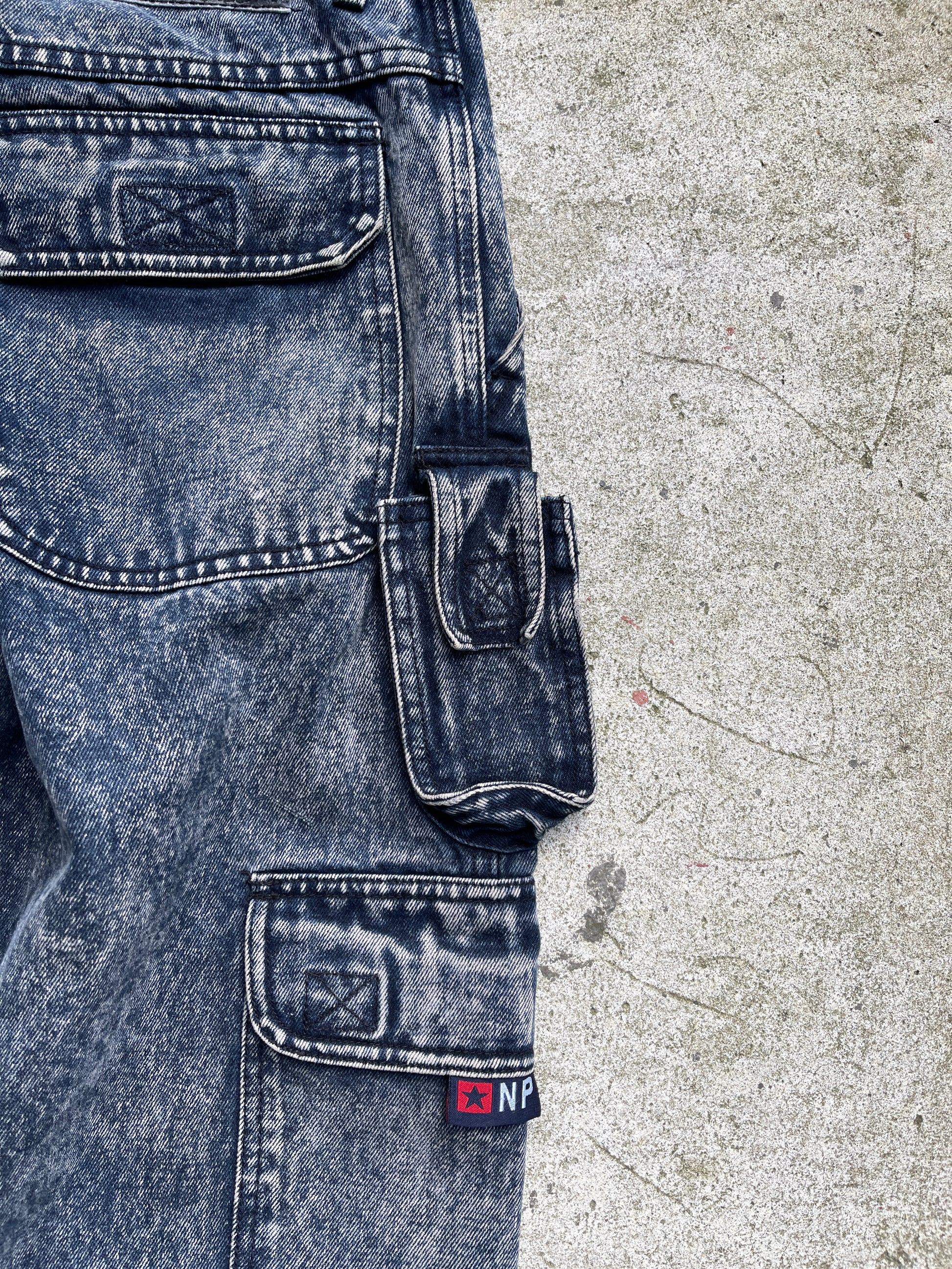 2000s MULTI CARGO POCKET STONE WASHED WIDE LEG DENIM JEANS
