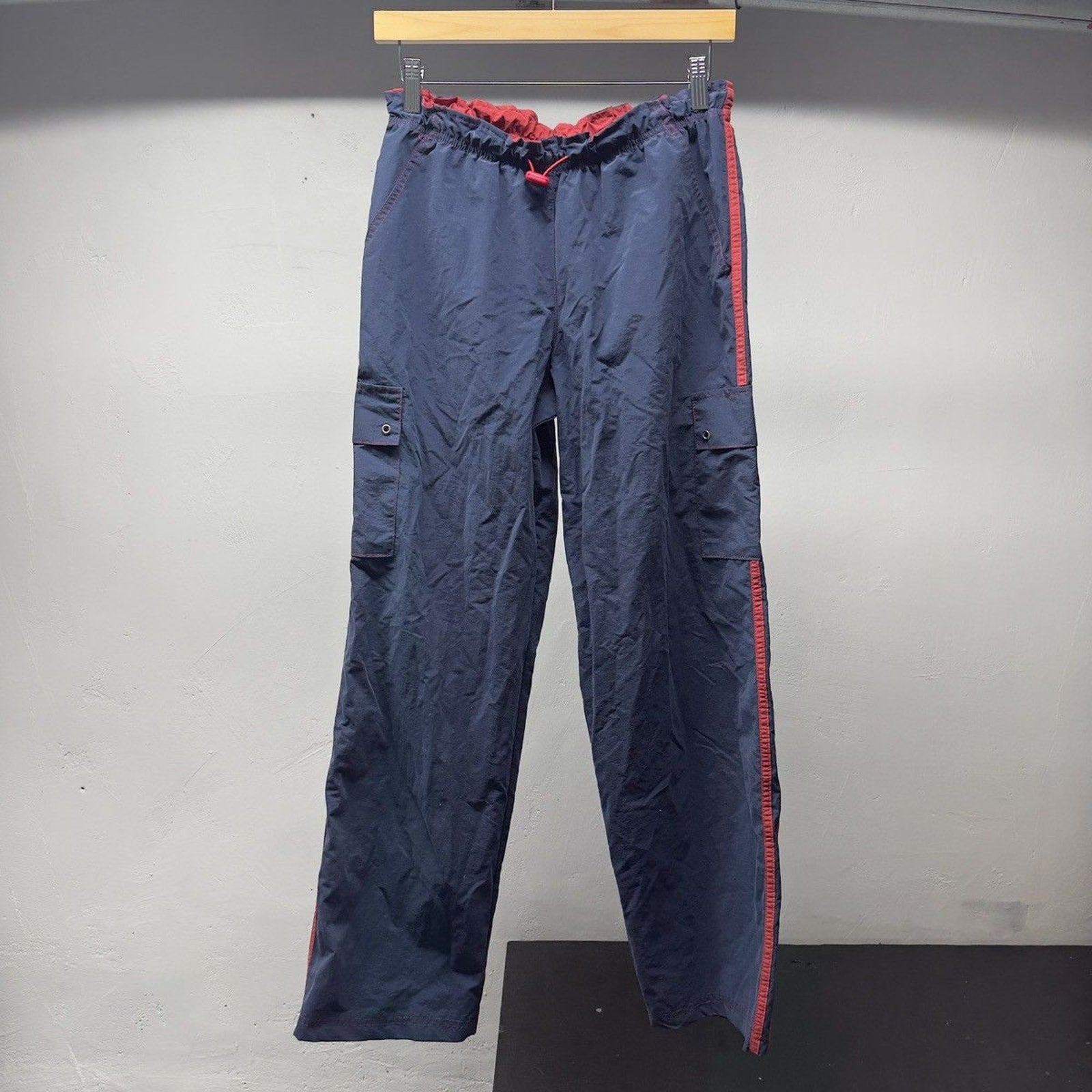 2000s Navy Blue Red Nylon Cargo Track Pants