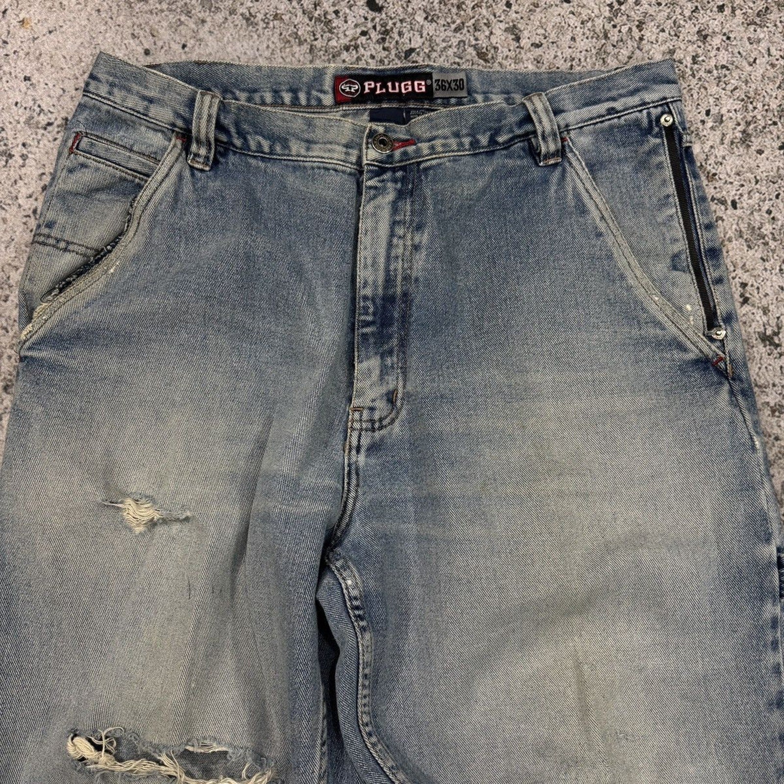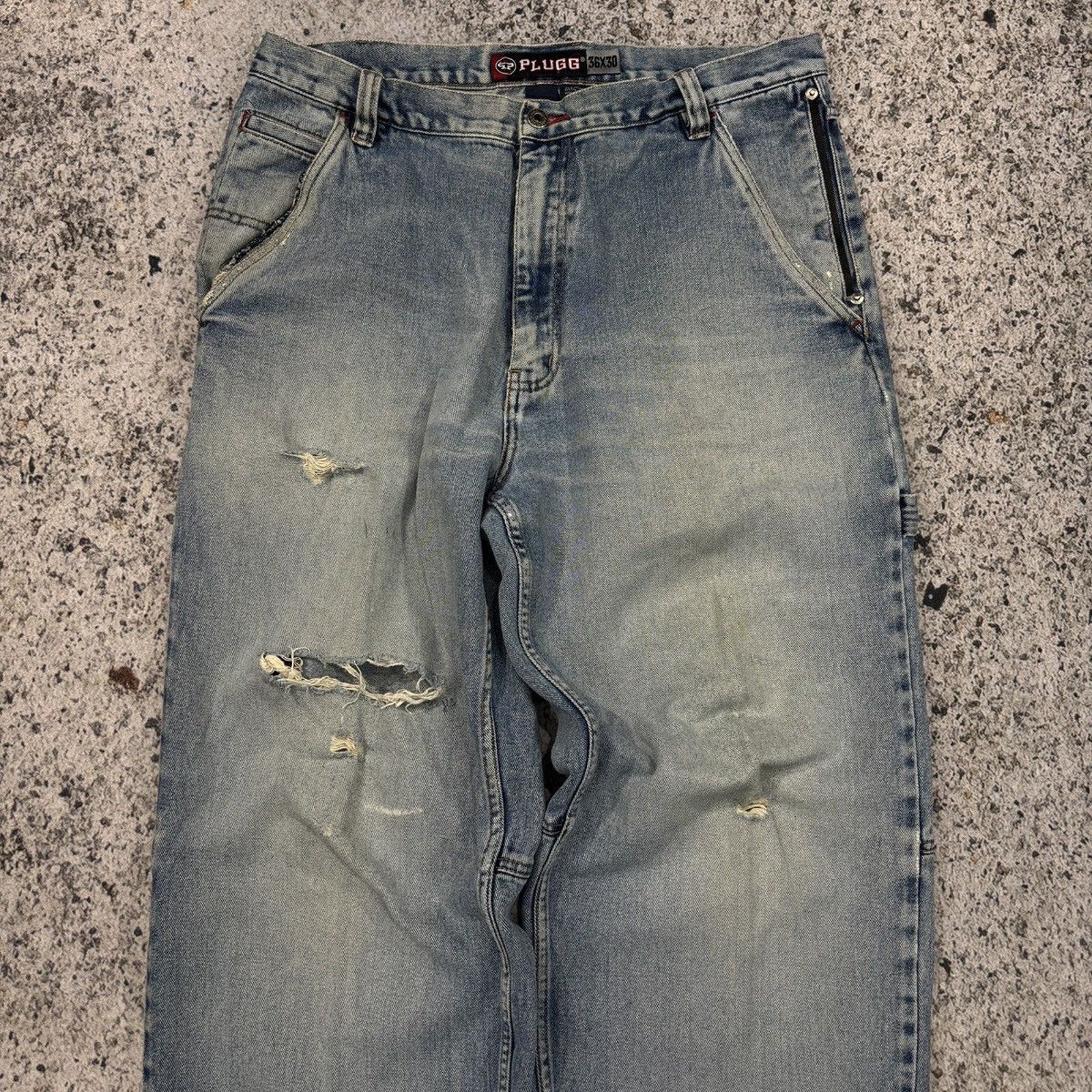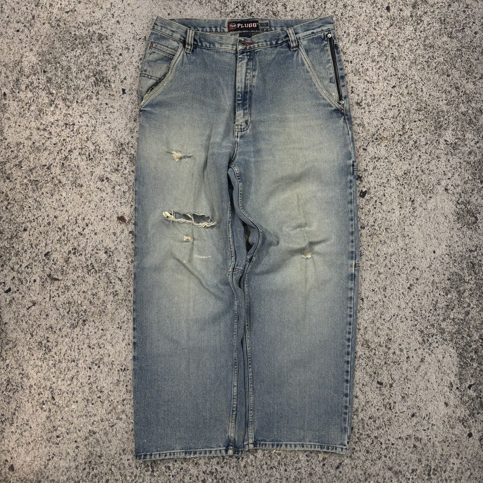 1990s Plugg Thrashed Faded Baggy Wide Leg Denim Skater Jeans