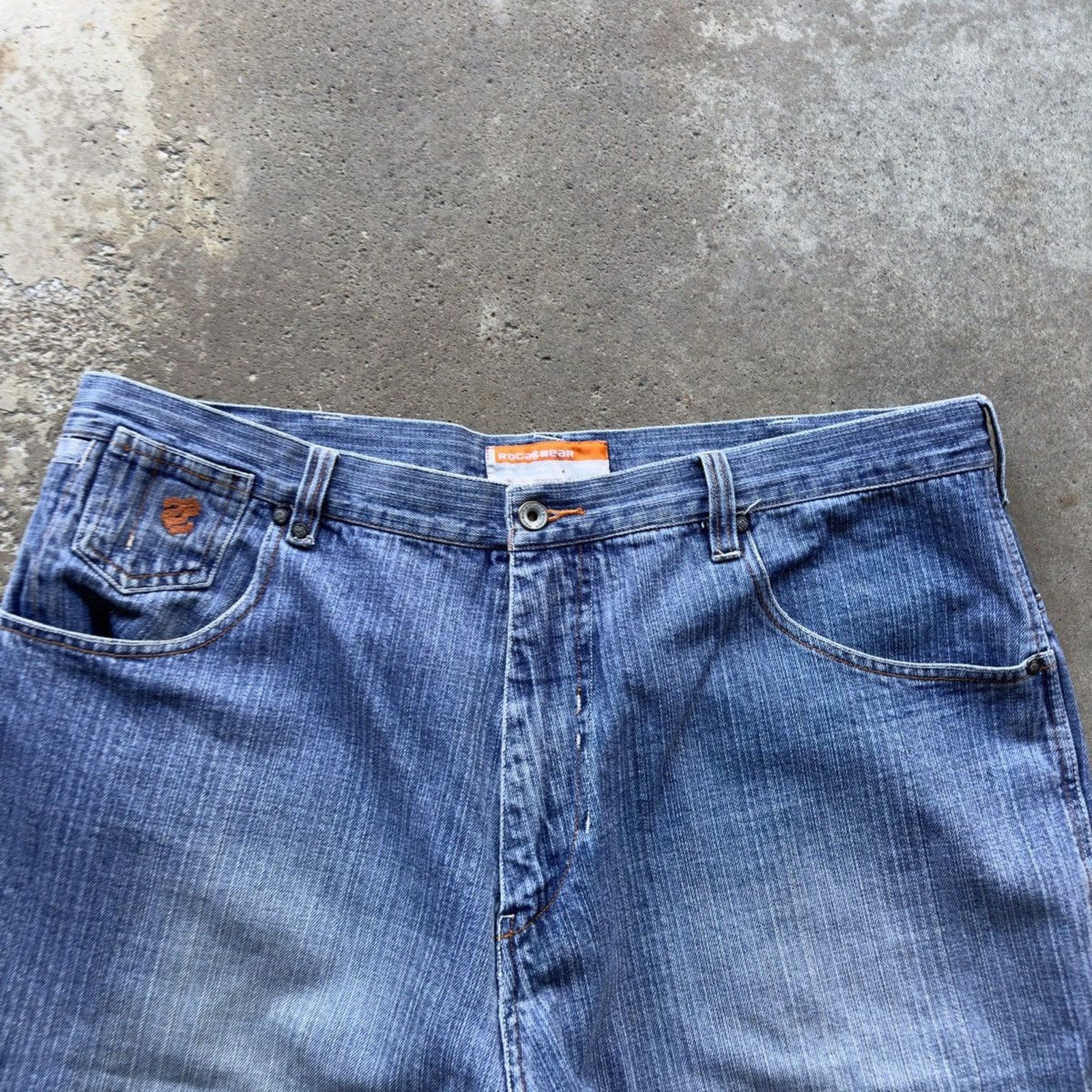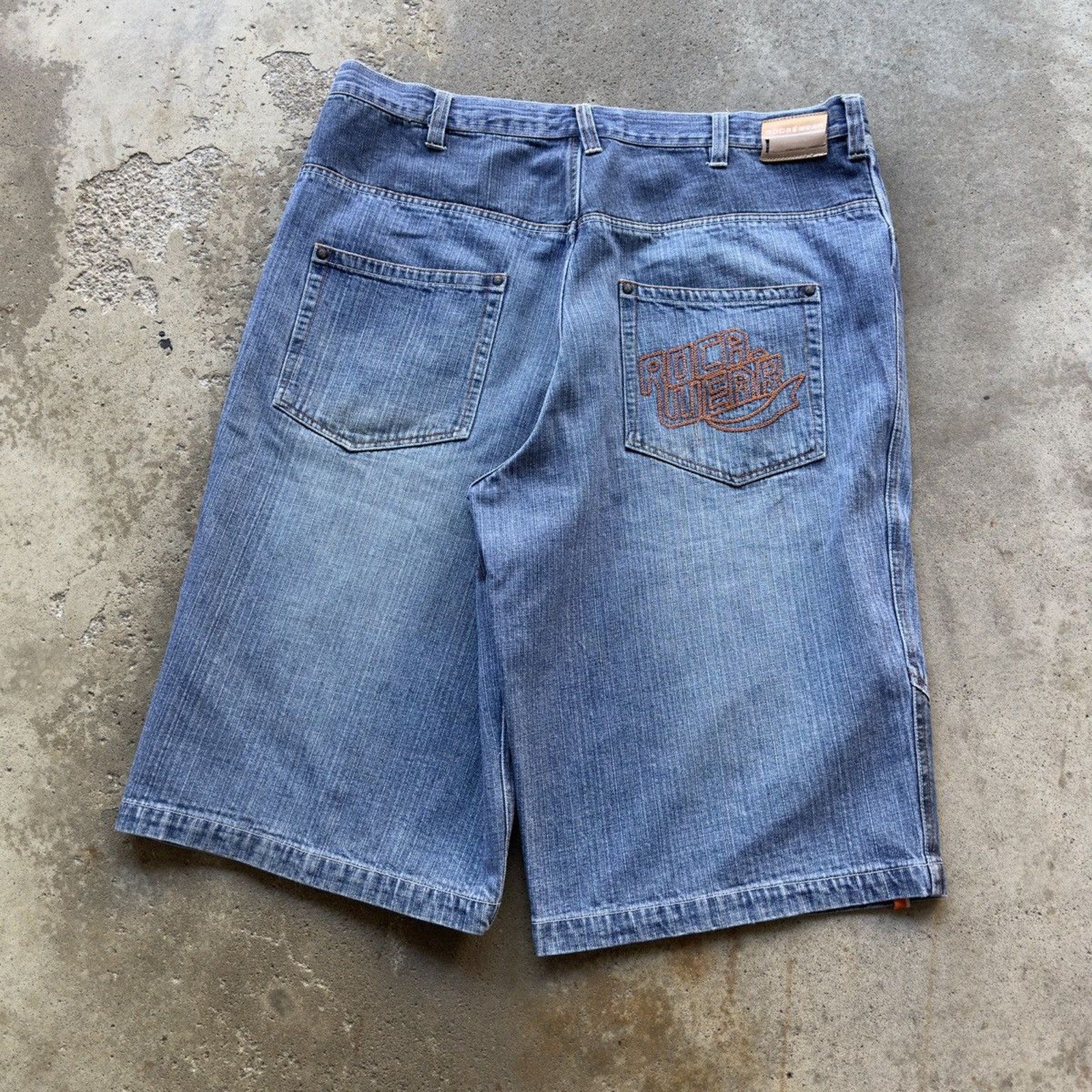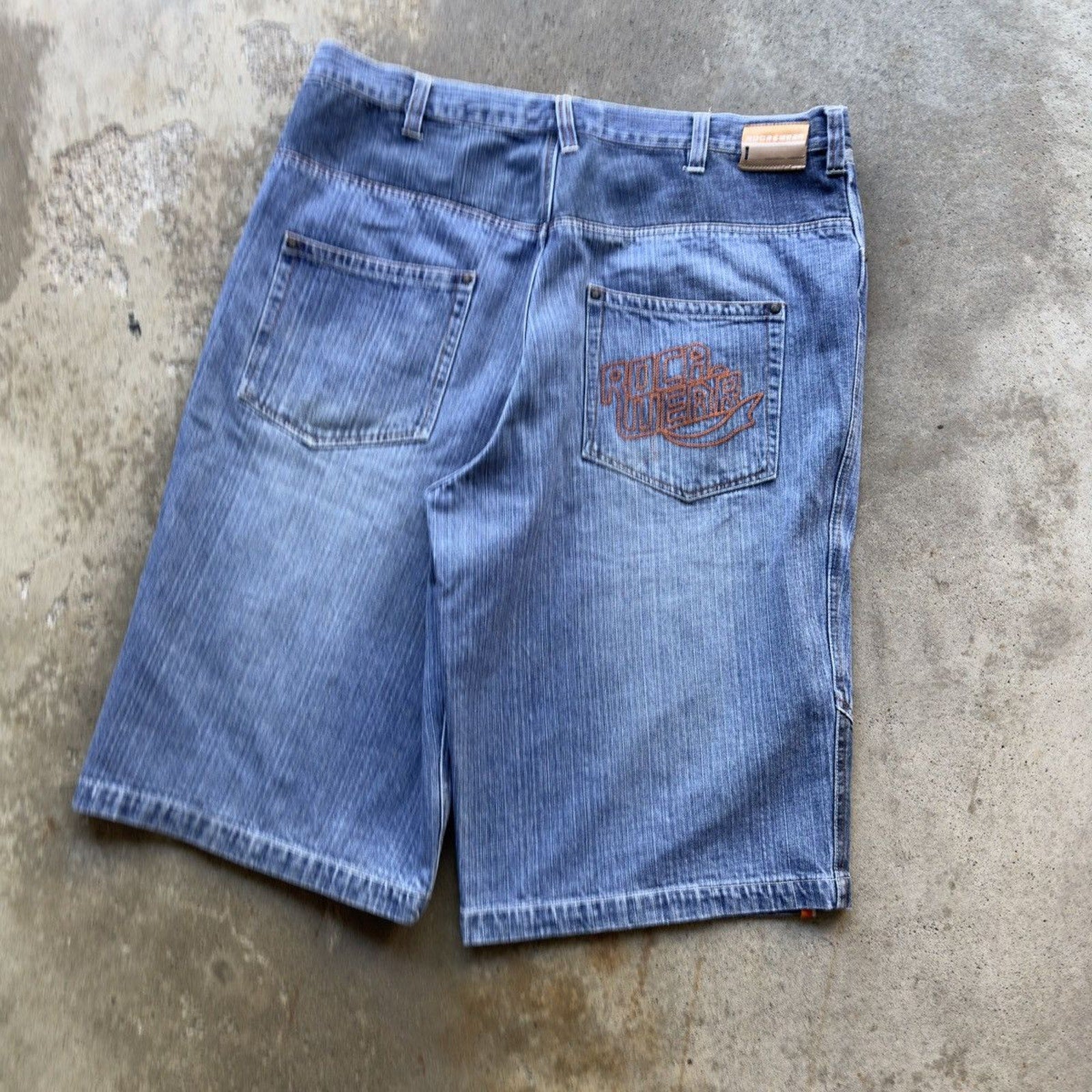2000s ROCAWEAR BAGGY EMBROIDERED DENIM JEAN SHORTS JORTS