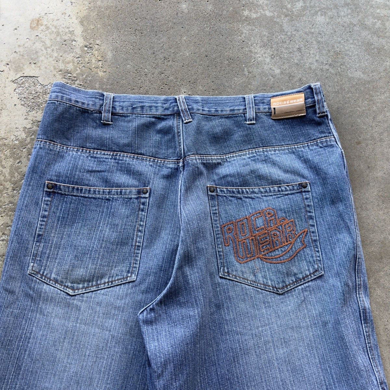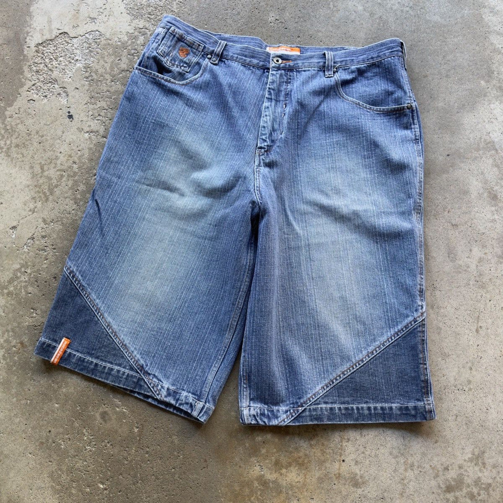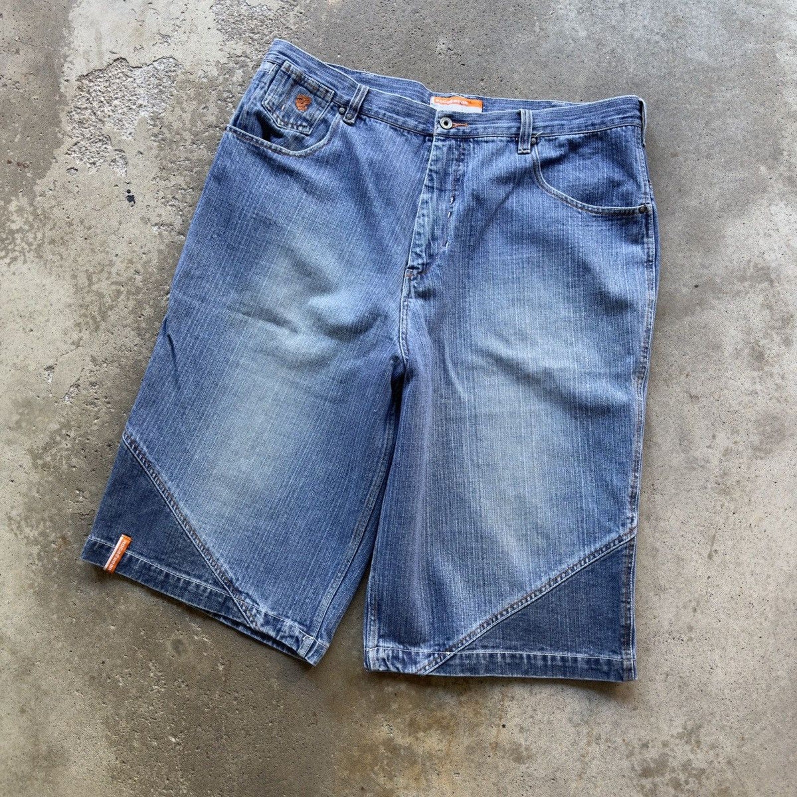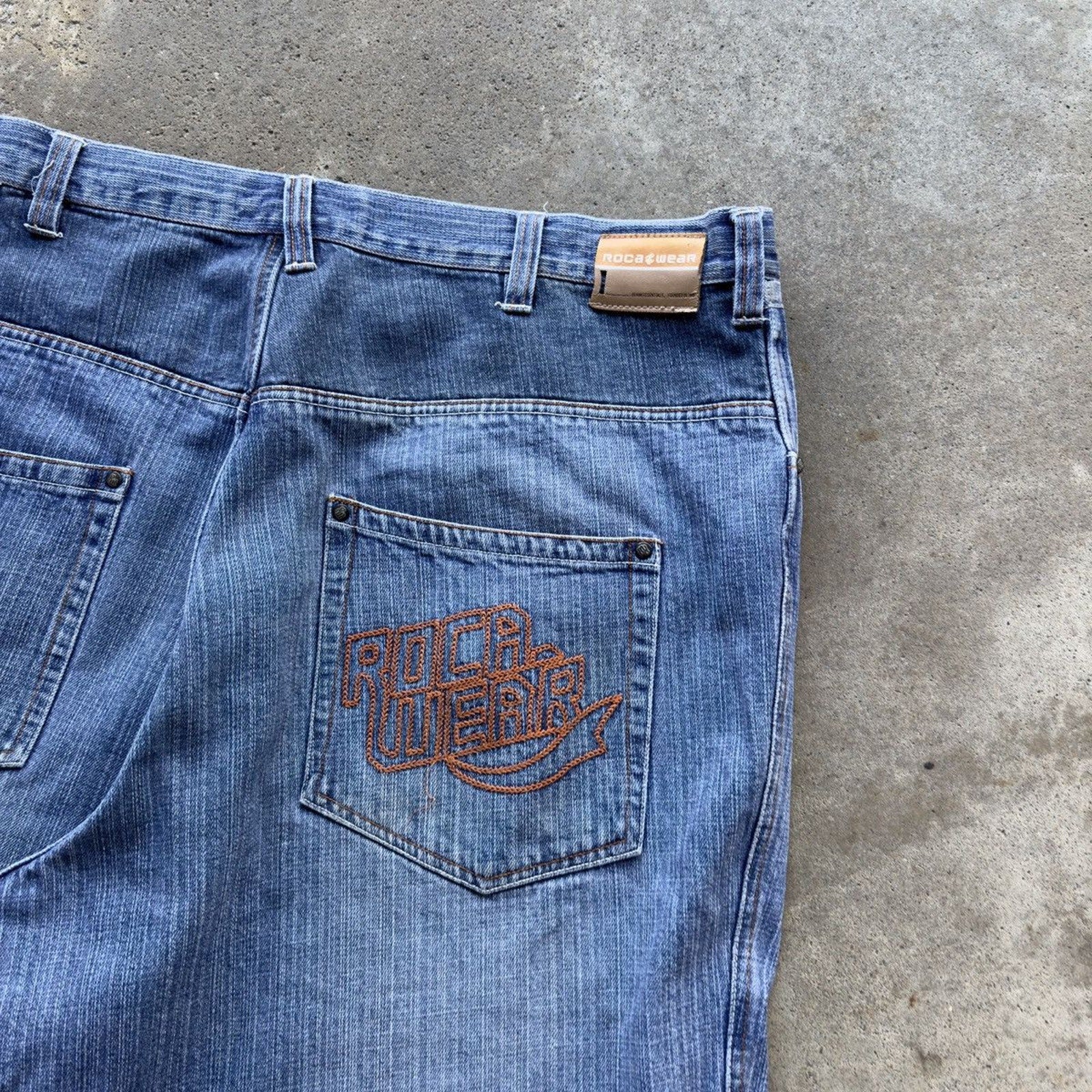 2000s ROCAWEAR BAGGY EMBROIDERED DENIM JEAN SHORTS JORTS