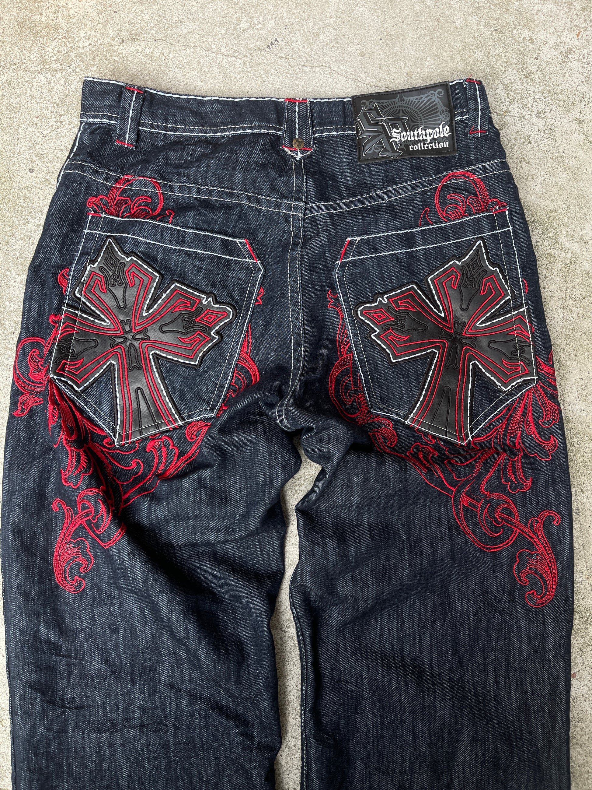 2000S SOUTHPOLE CROSS EMBROIDERED DENIM JEANS