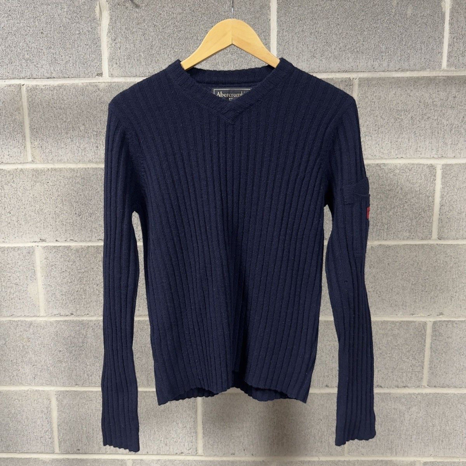 2000s Women's Abercrombie & Fitch Lambswool Navy Blue Sweater
