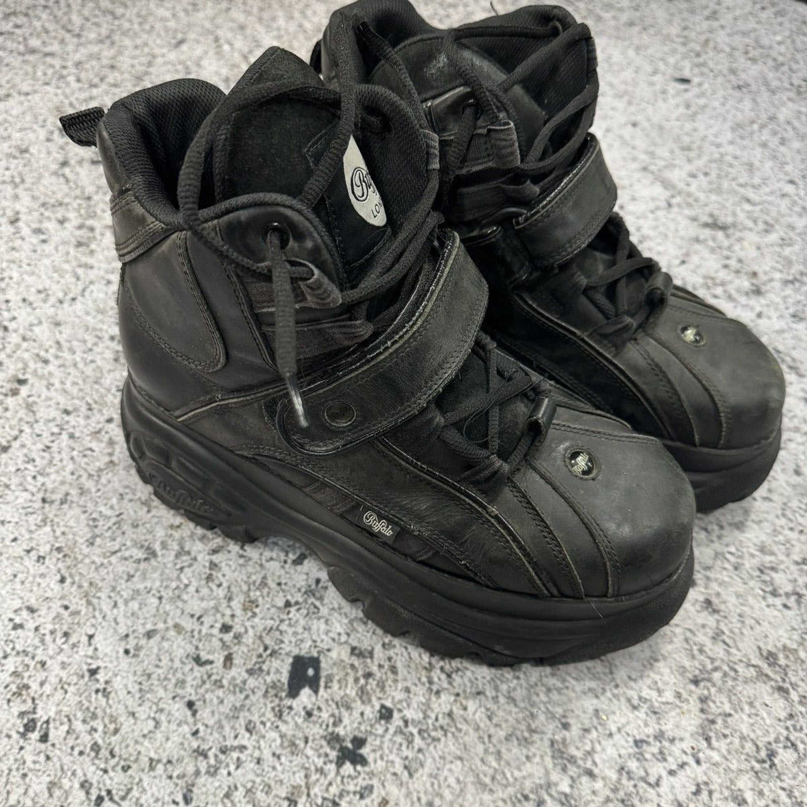 2000s Y2K BUFFALO LONDON COW LEATHER PLATFORM BOOTS