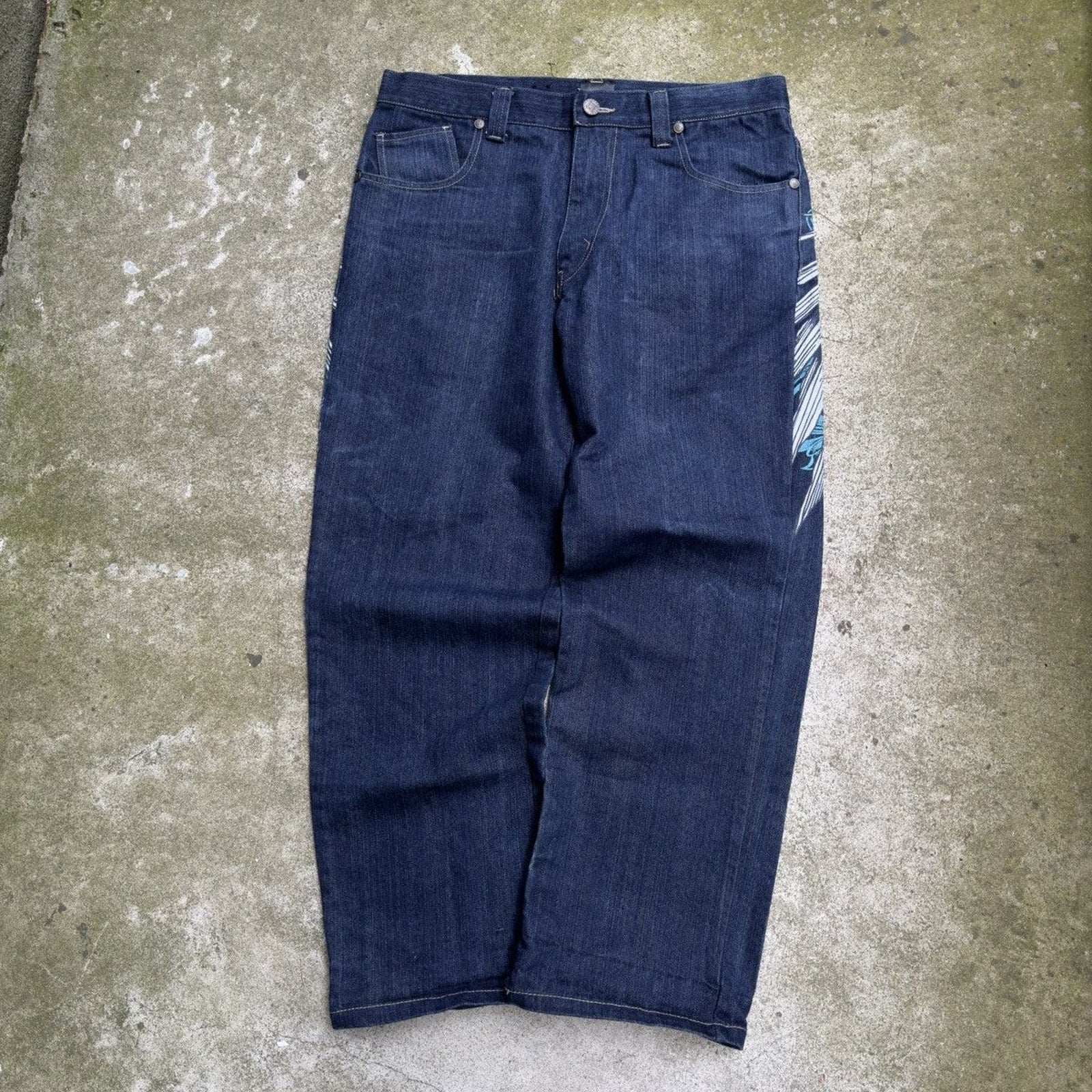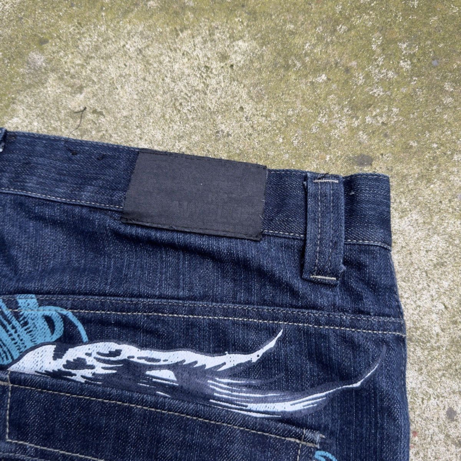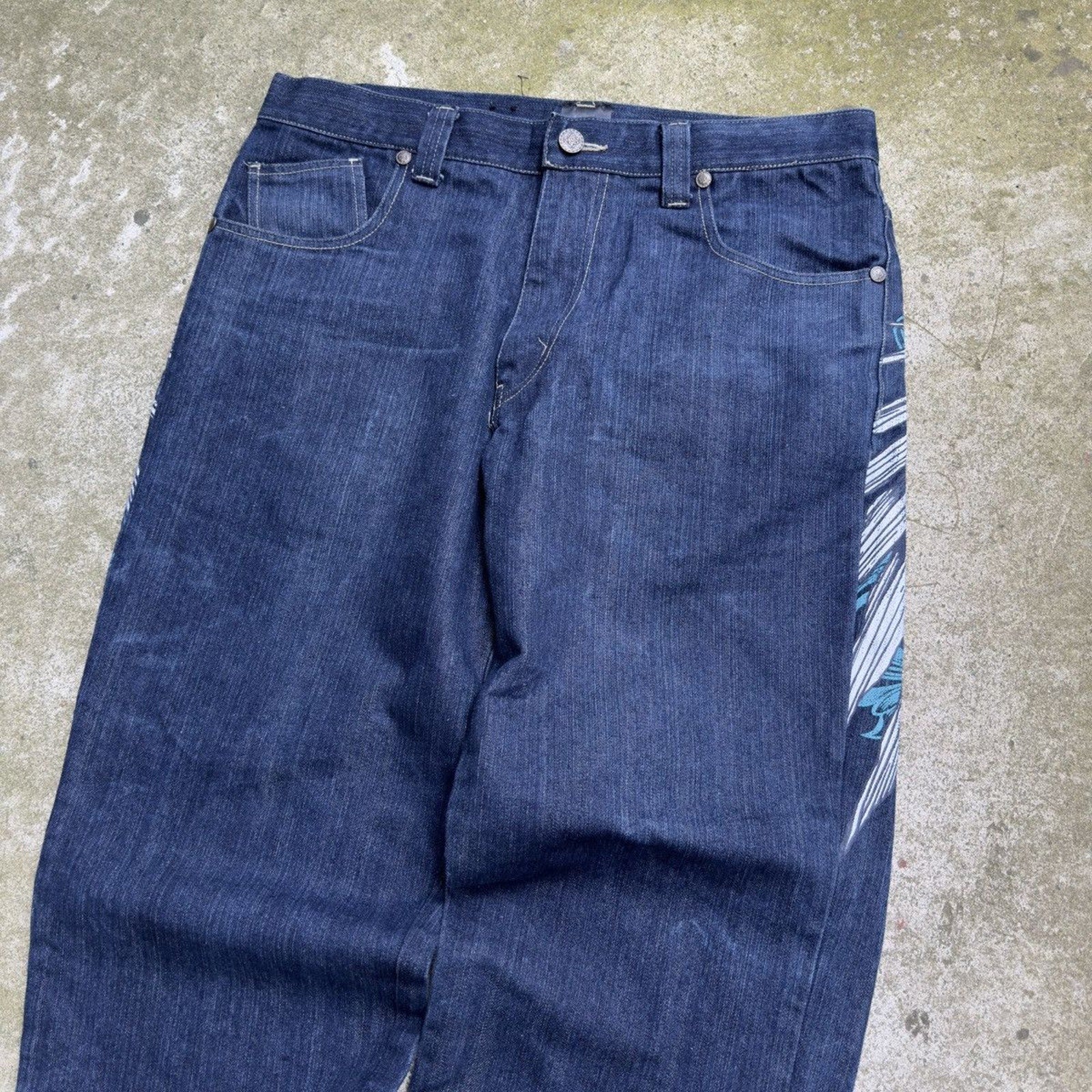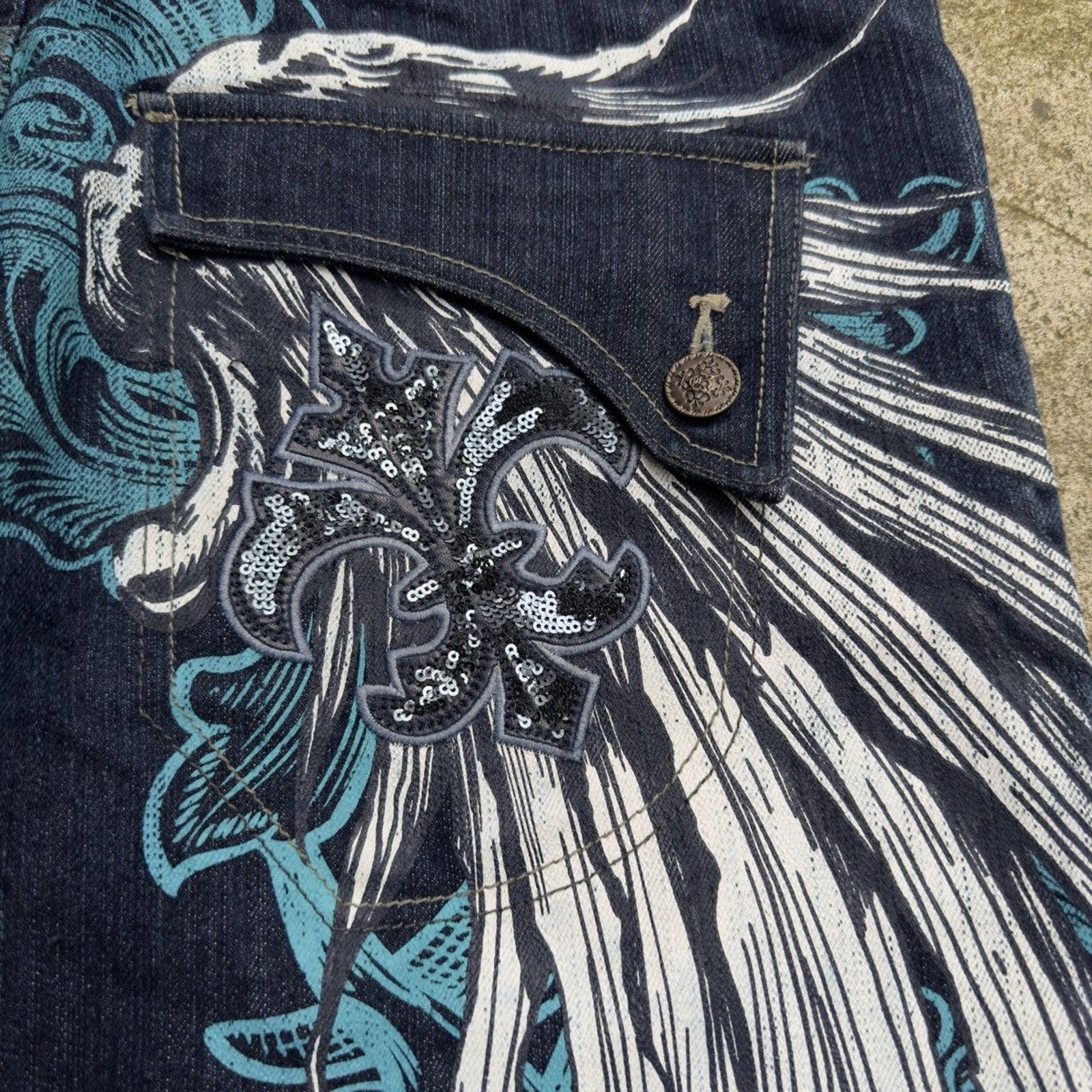 2000S Y2K RAW BLUE BAGGY CYBER WING DENIM SEQUIN JEANS