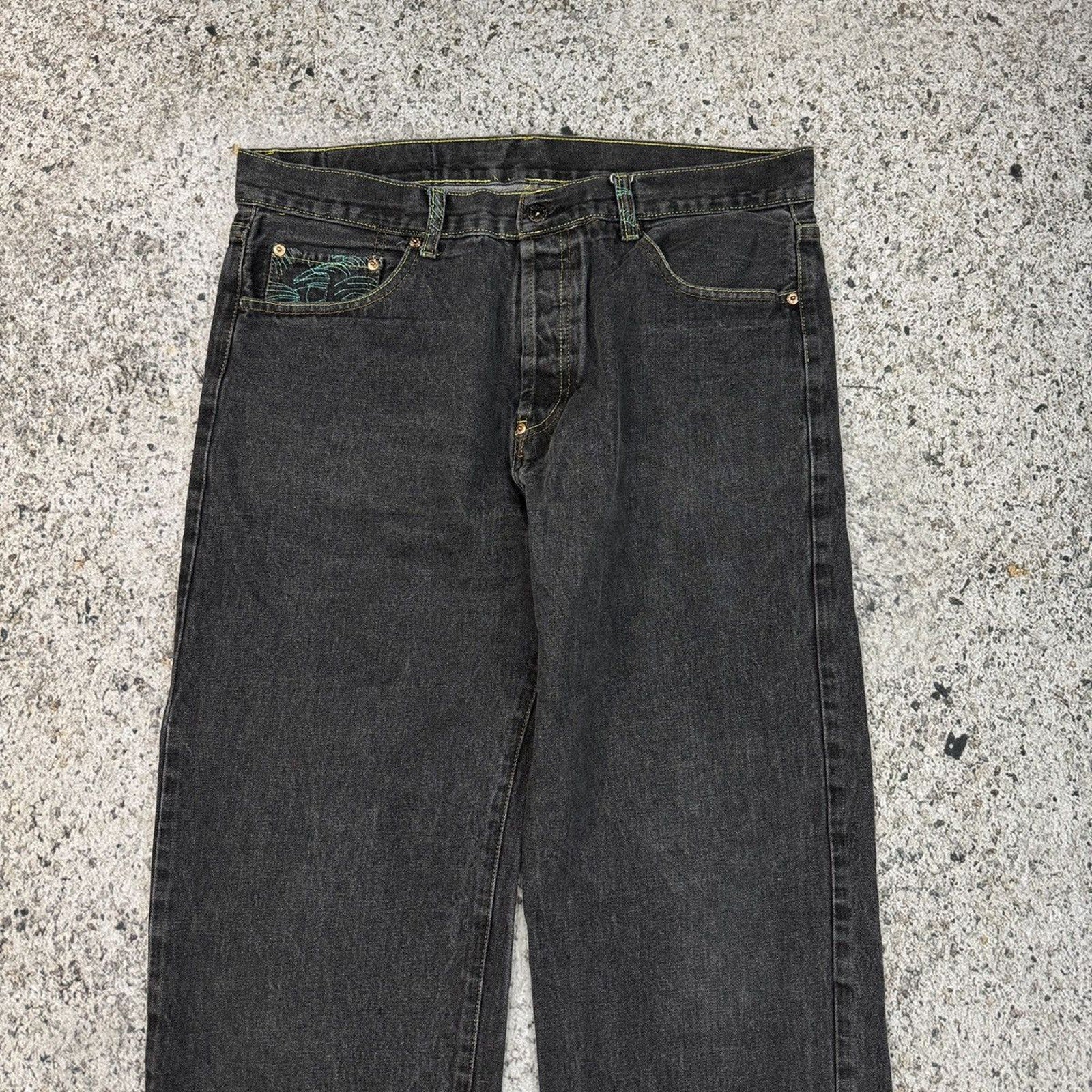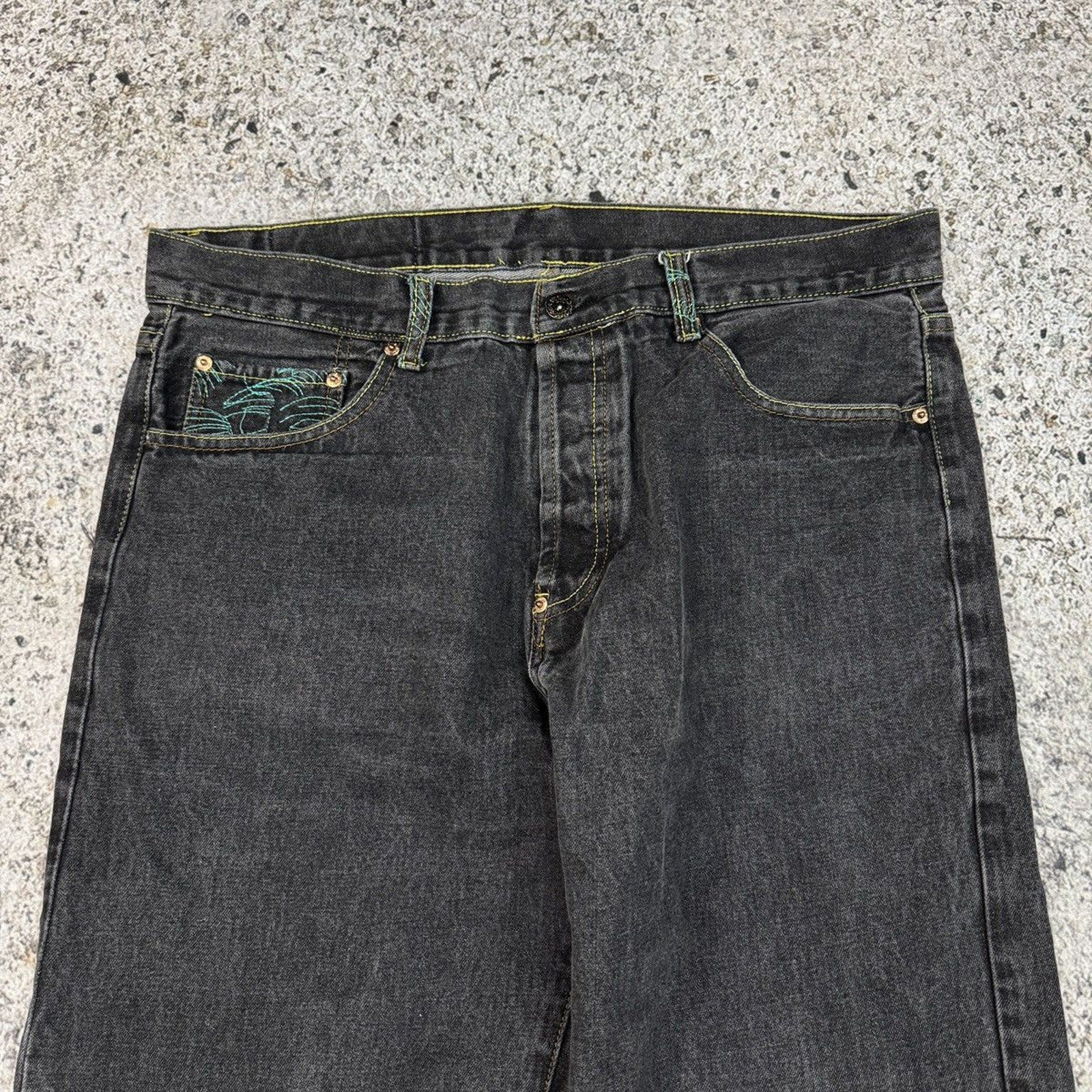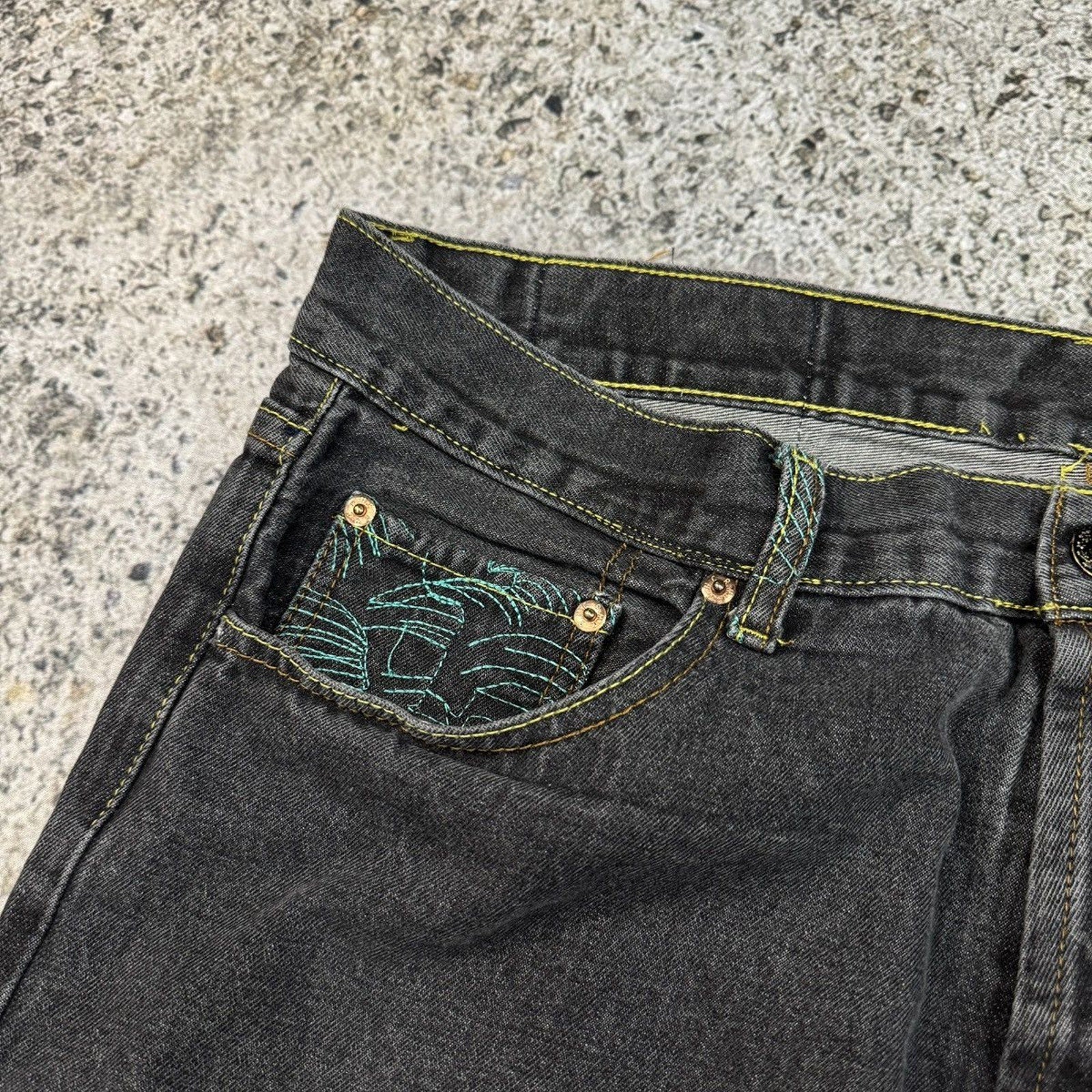 2000s Y2K Skater Embroidered Koi Fish Samurai Denim Jeans