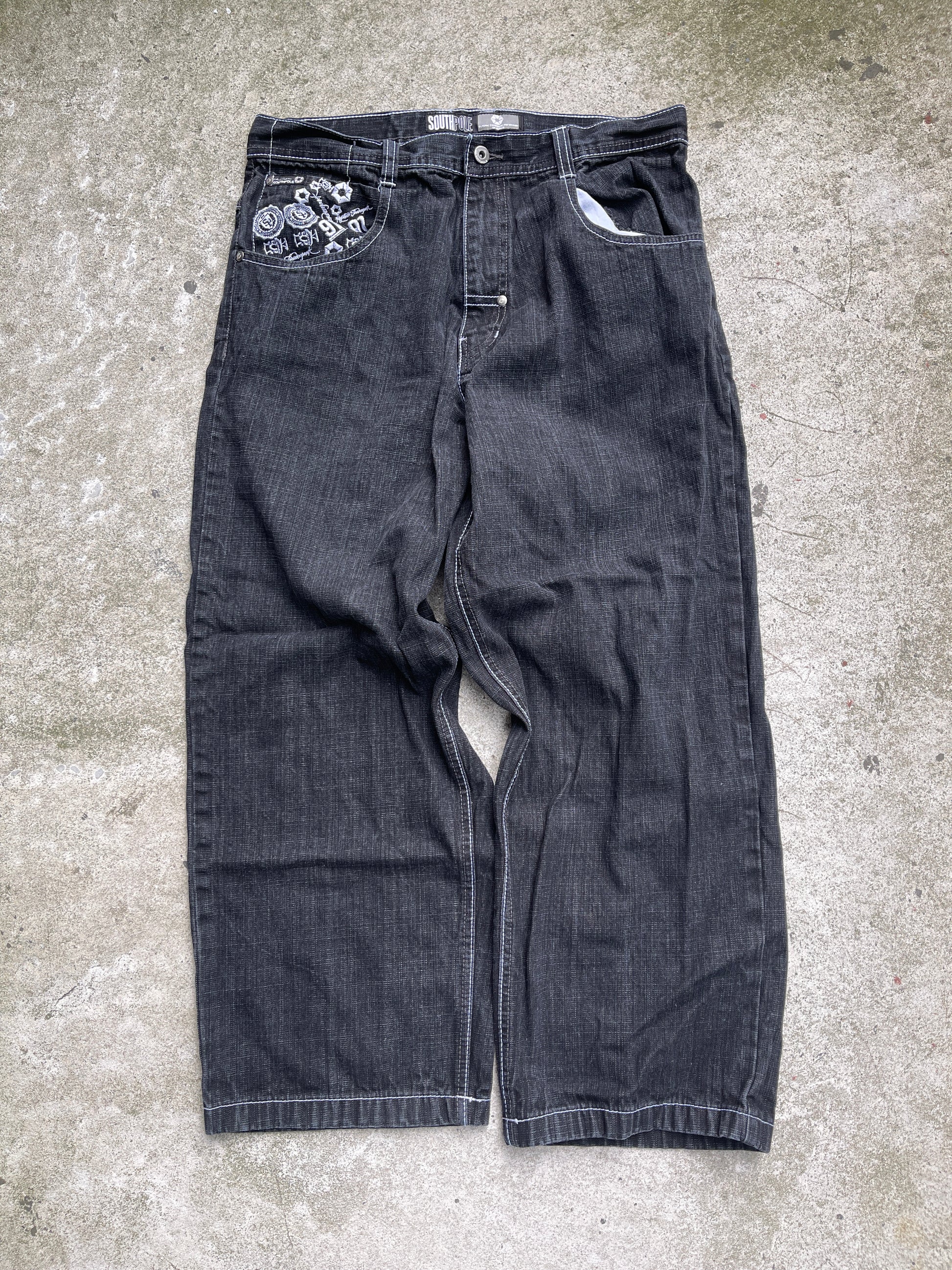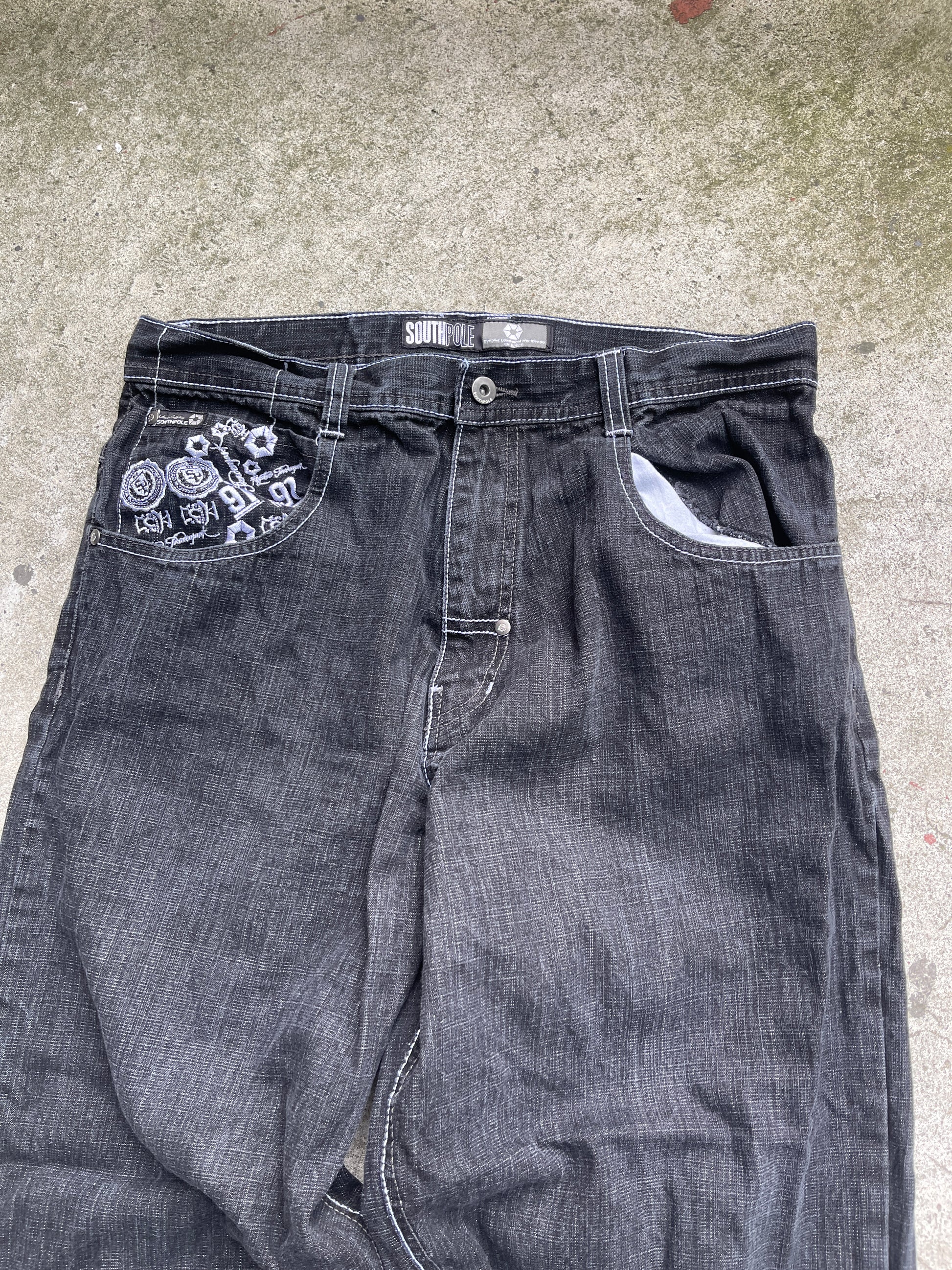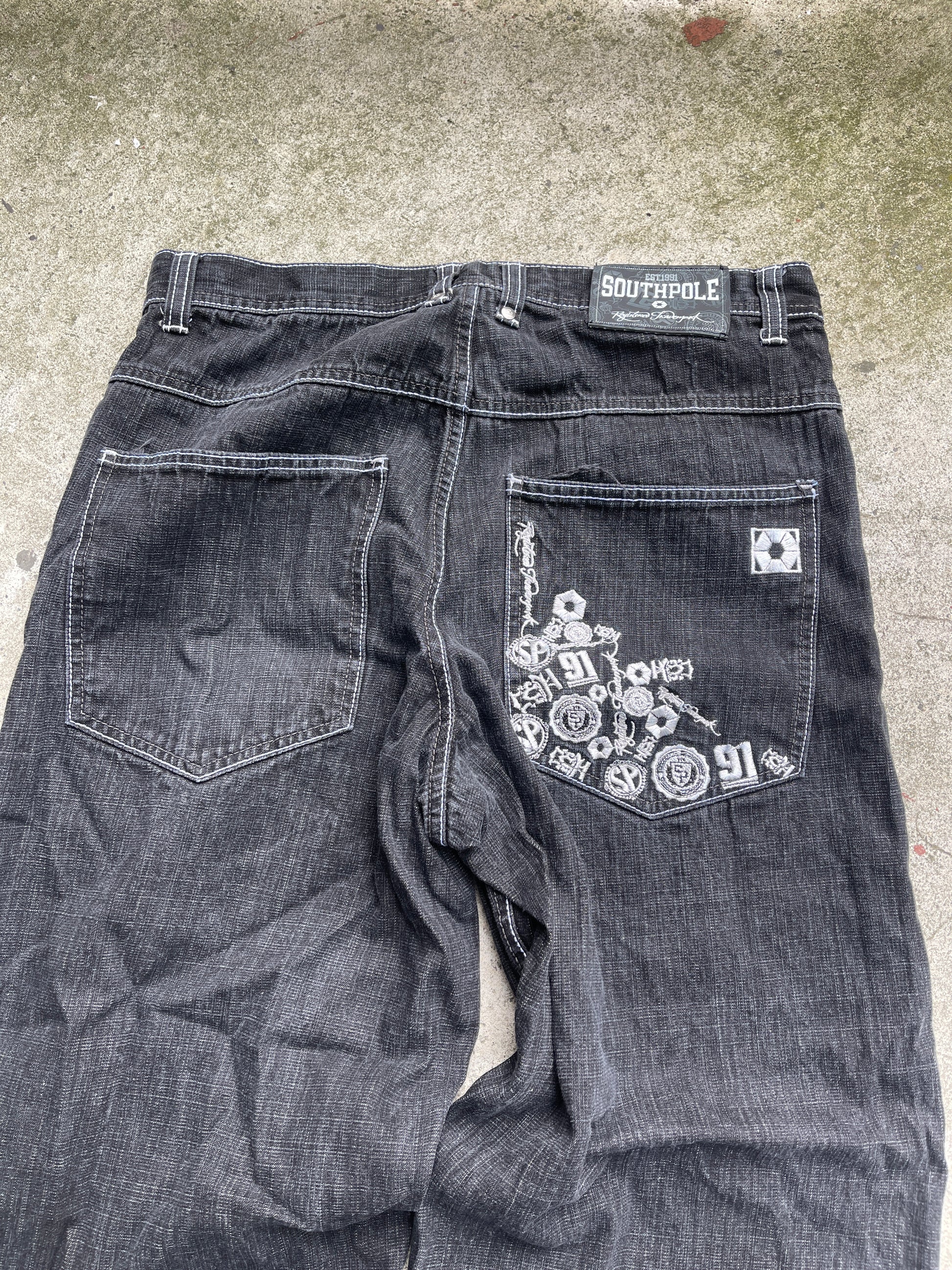 2000s Y2K SOUTHPOLE EMBROIDERED BAGGY DENIM SKATER JEANS