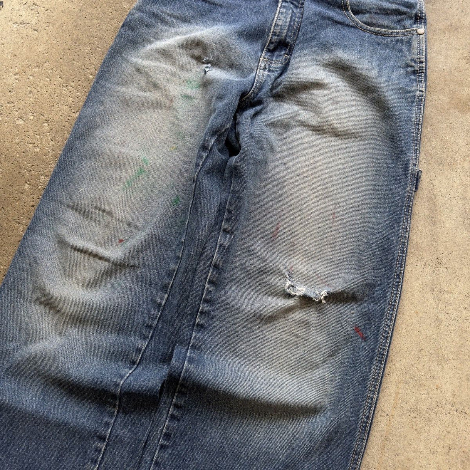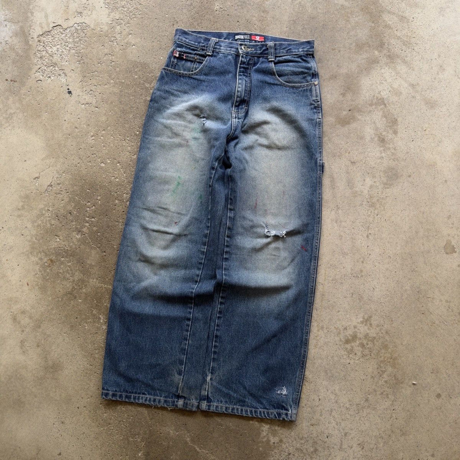 2000S Y2K SOUTHPOLE THRASHED FADED DENIM SKATER JEANS