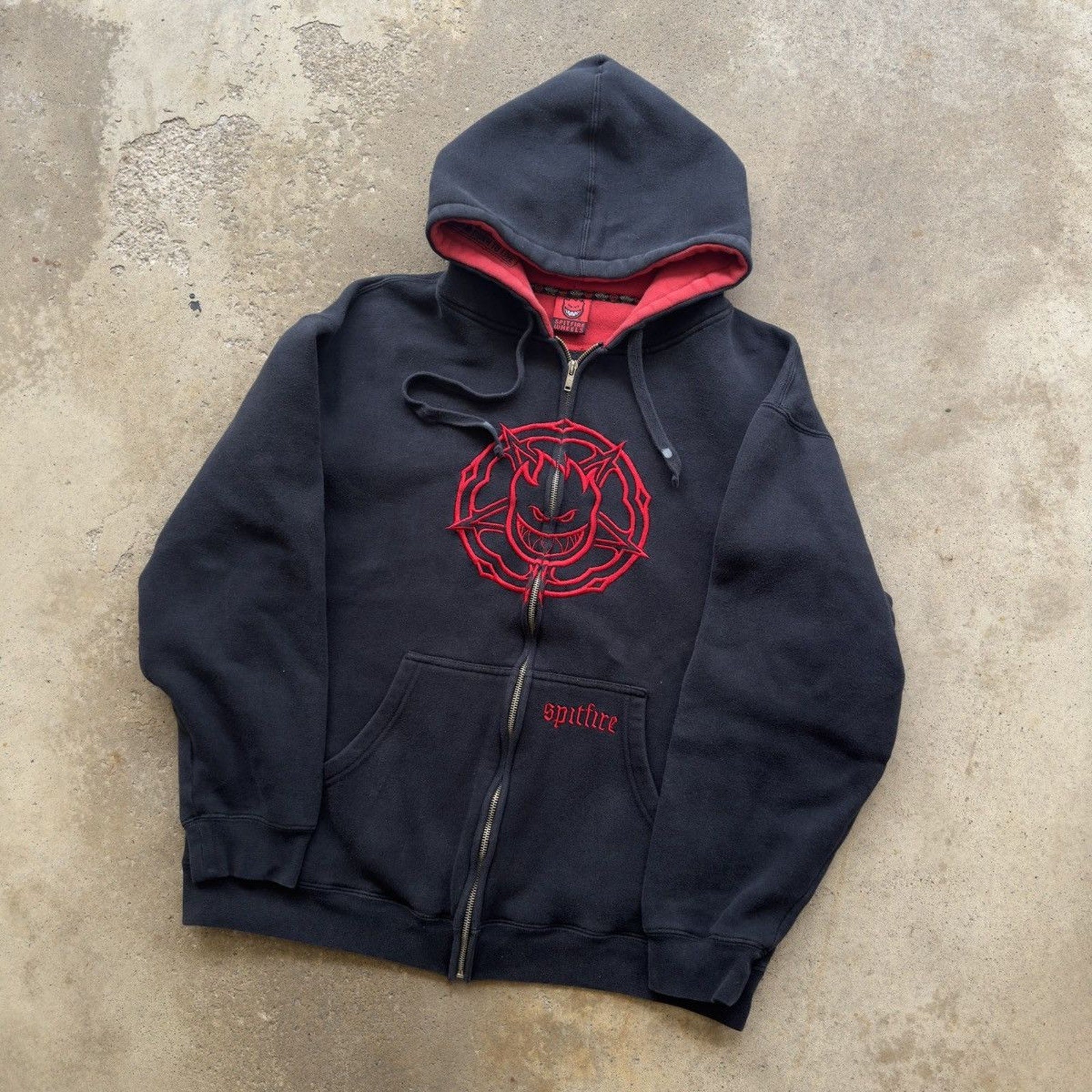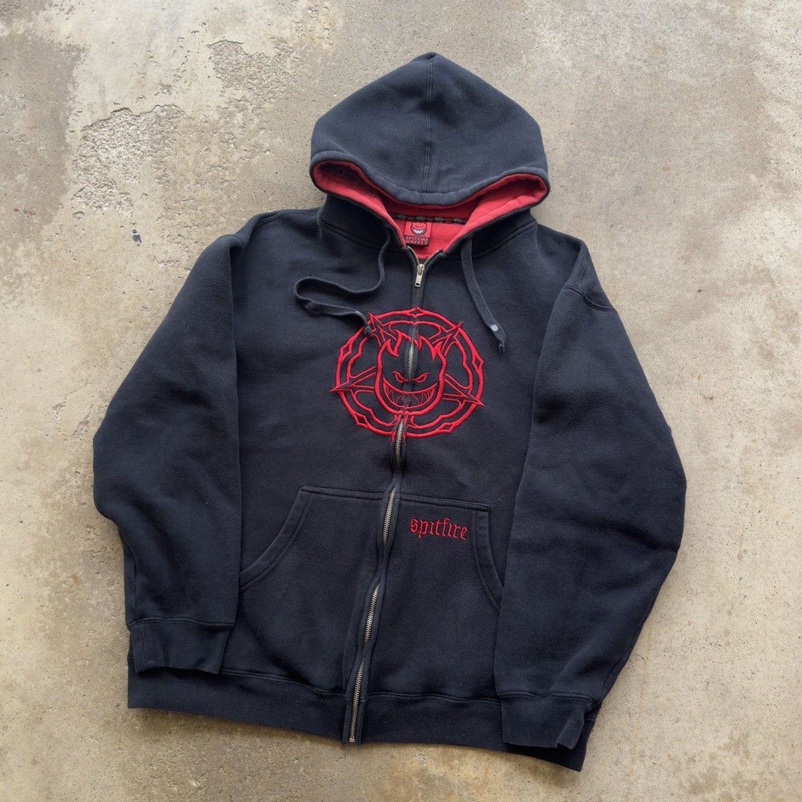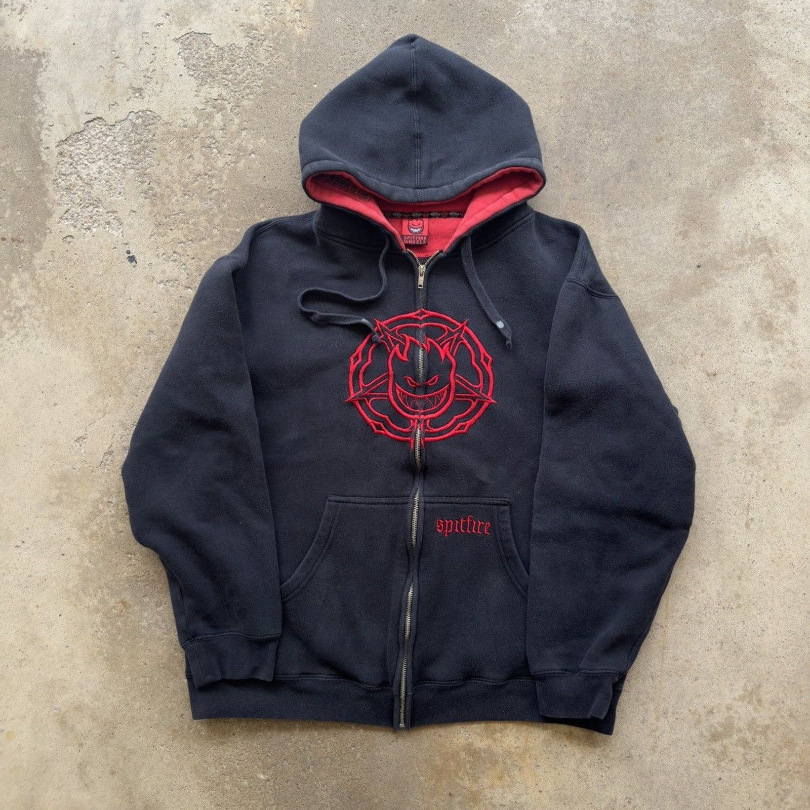 2000S Y2K SPITFIRE WHEELS SKATER ZIP UP HOODIE BLACK RED L