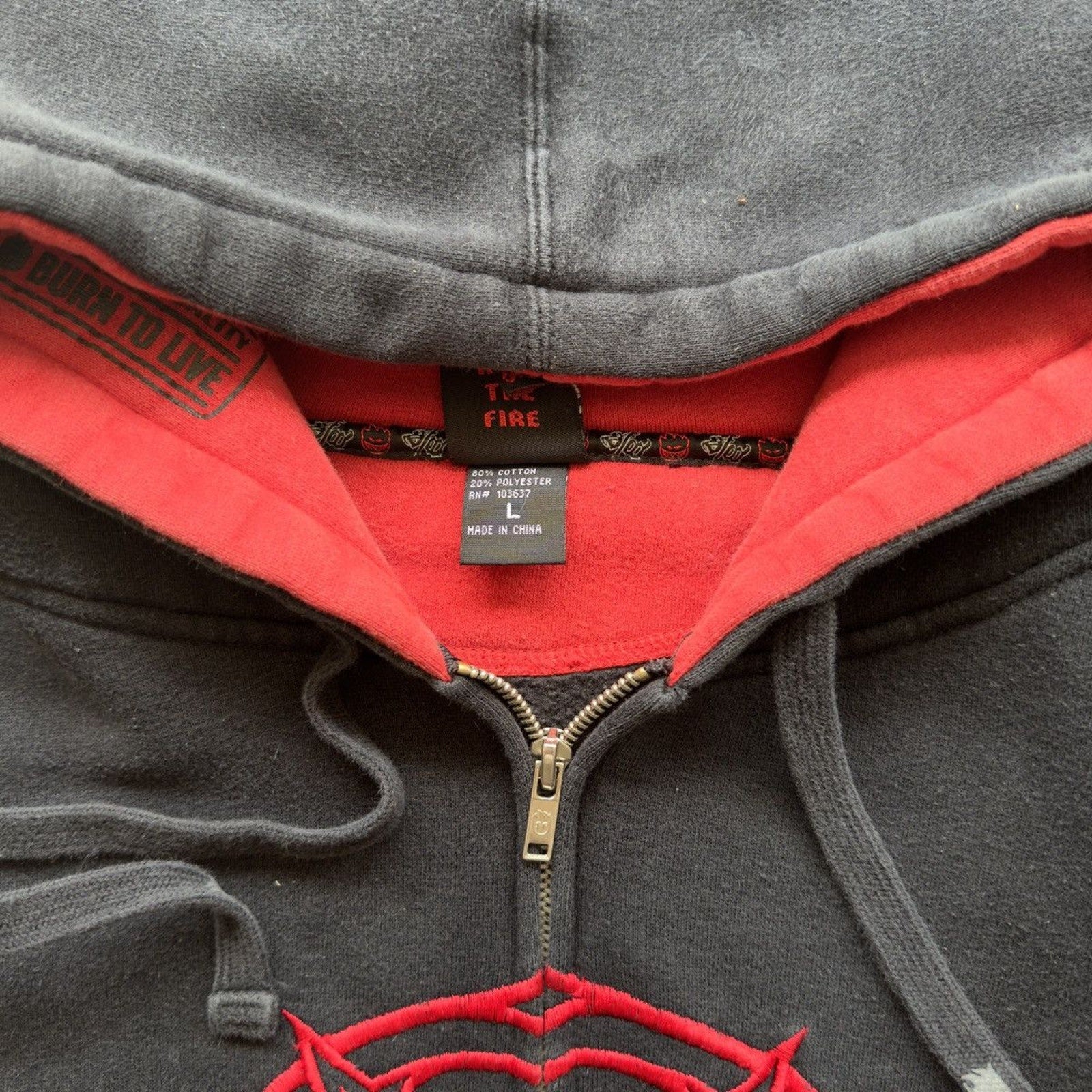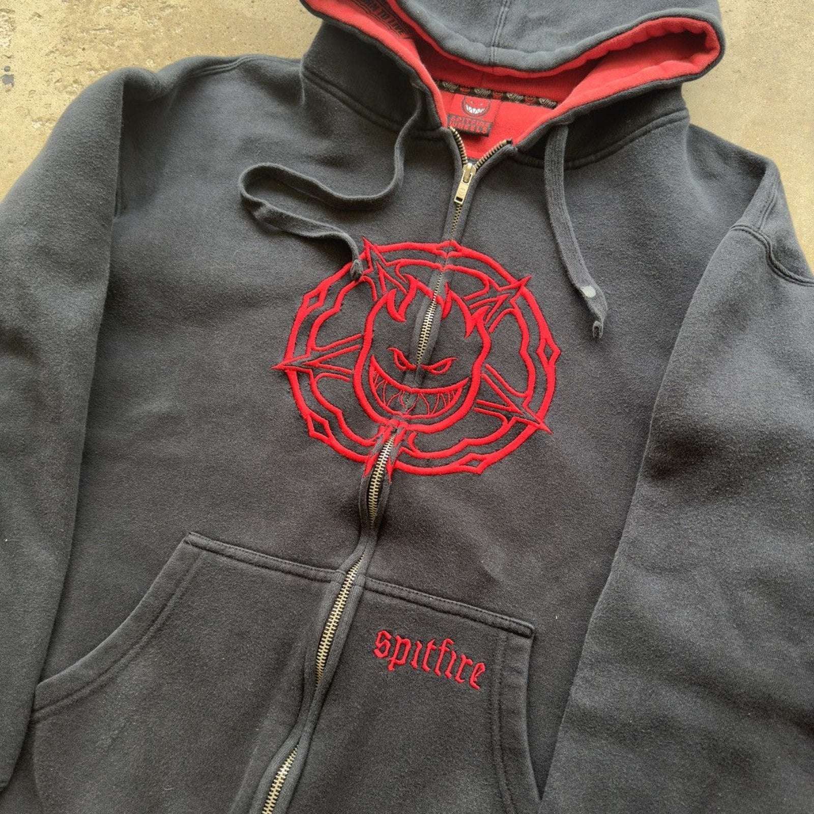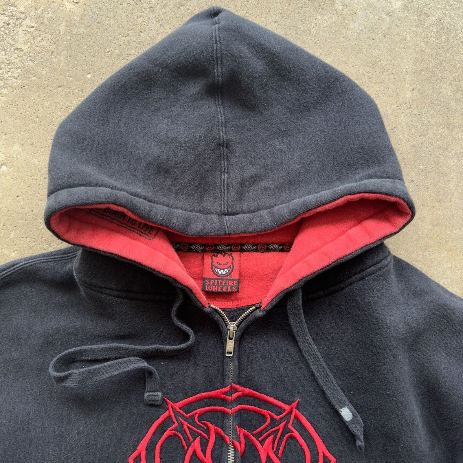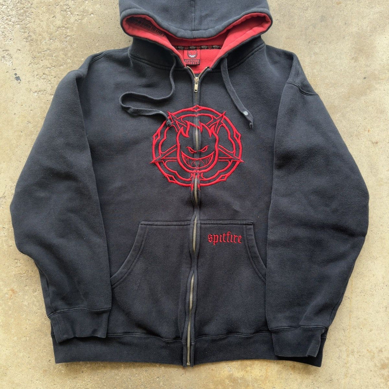 2000S Y2K SPITFIRE WHEELS SKATER ZIP UP HOODIE BLACK RED L