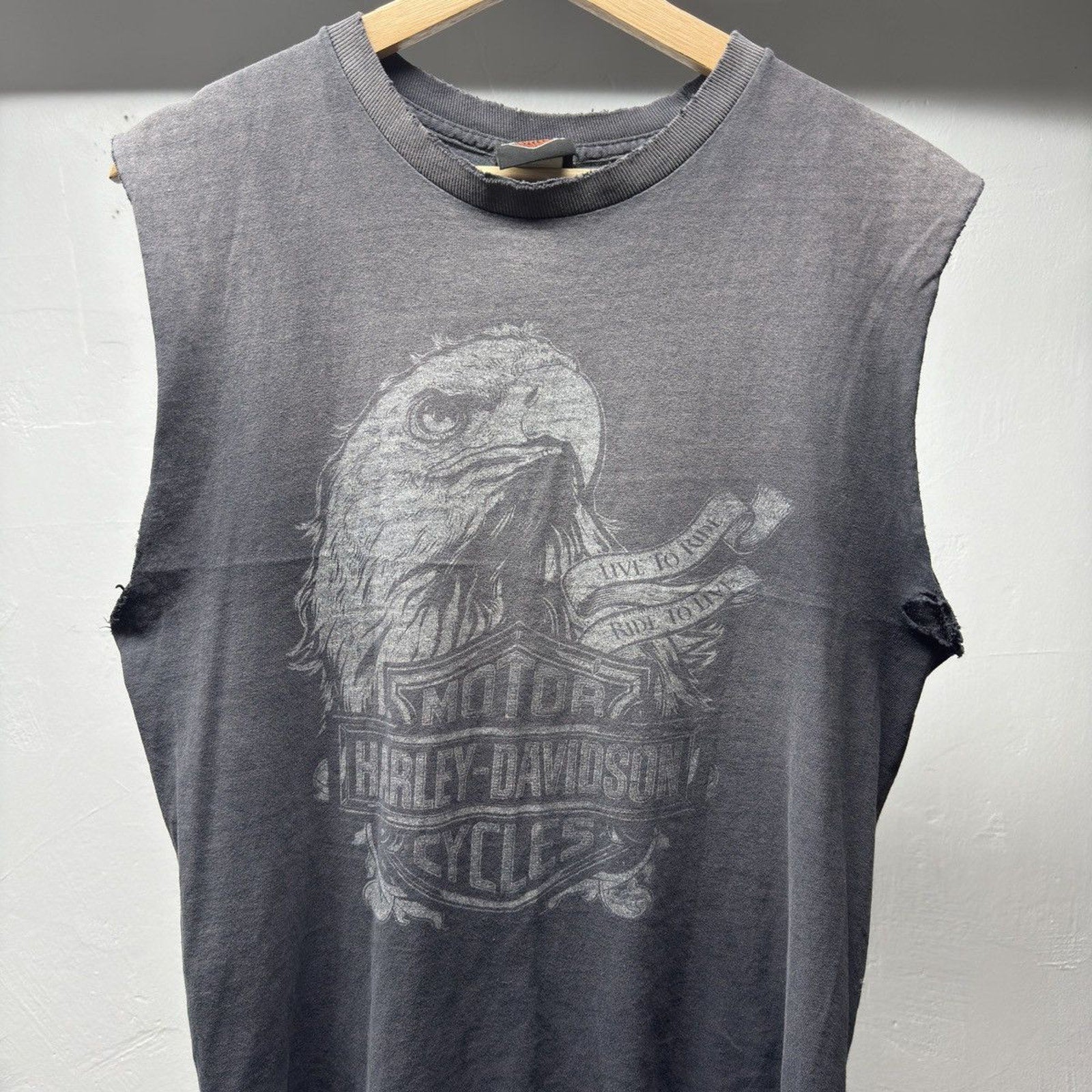 2010s Harley Davidson Thrashed Faded Distressed Cut Off Tee
