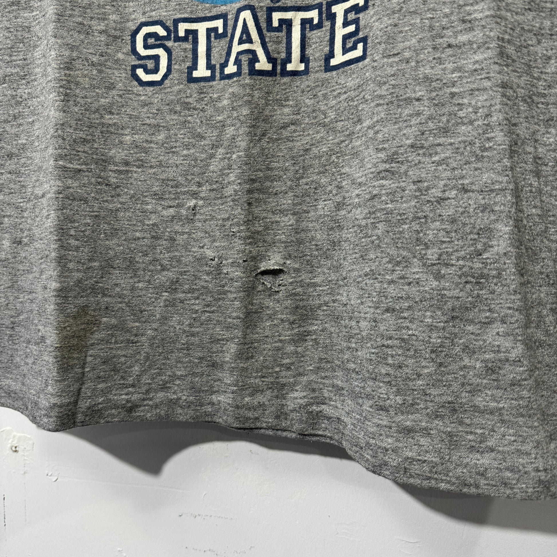 Our sizing is determined by the measurements taken by hand, rather than the tagged size on the garment. Many items, especially with vintage clothing, generally measures different than the tagged size on the article itself. A standard size large tee shirt from decades ago generally fits different than a standard size large in modern sizing, due to changes in manufacturing standards, different practices by brand, shrinkage, aging, varying fabrics & materials, etc.